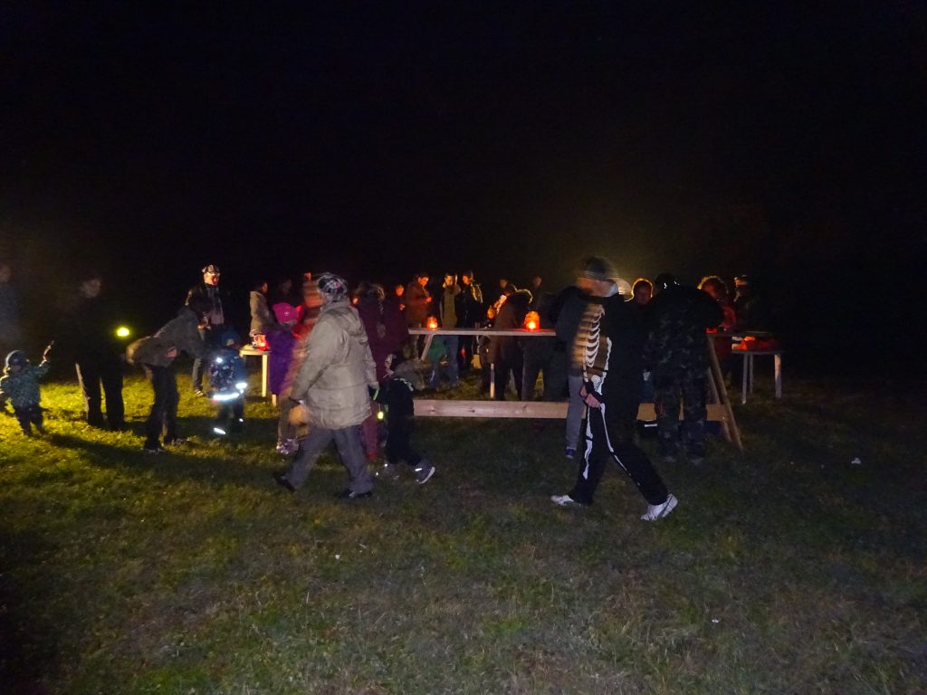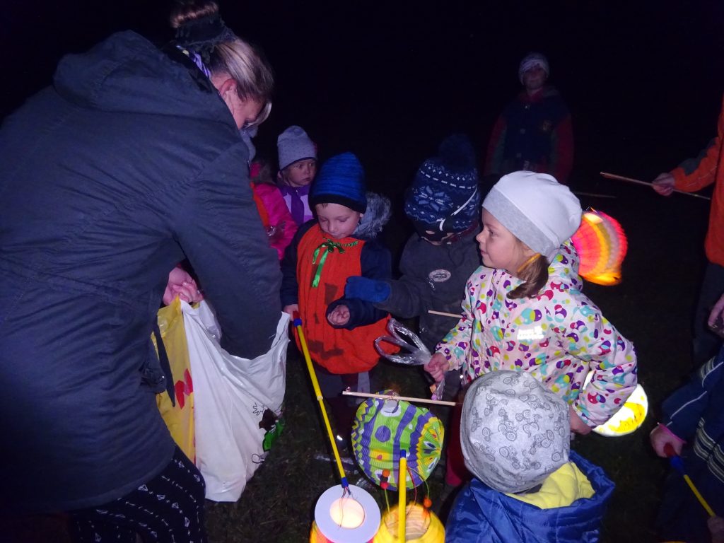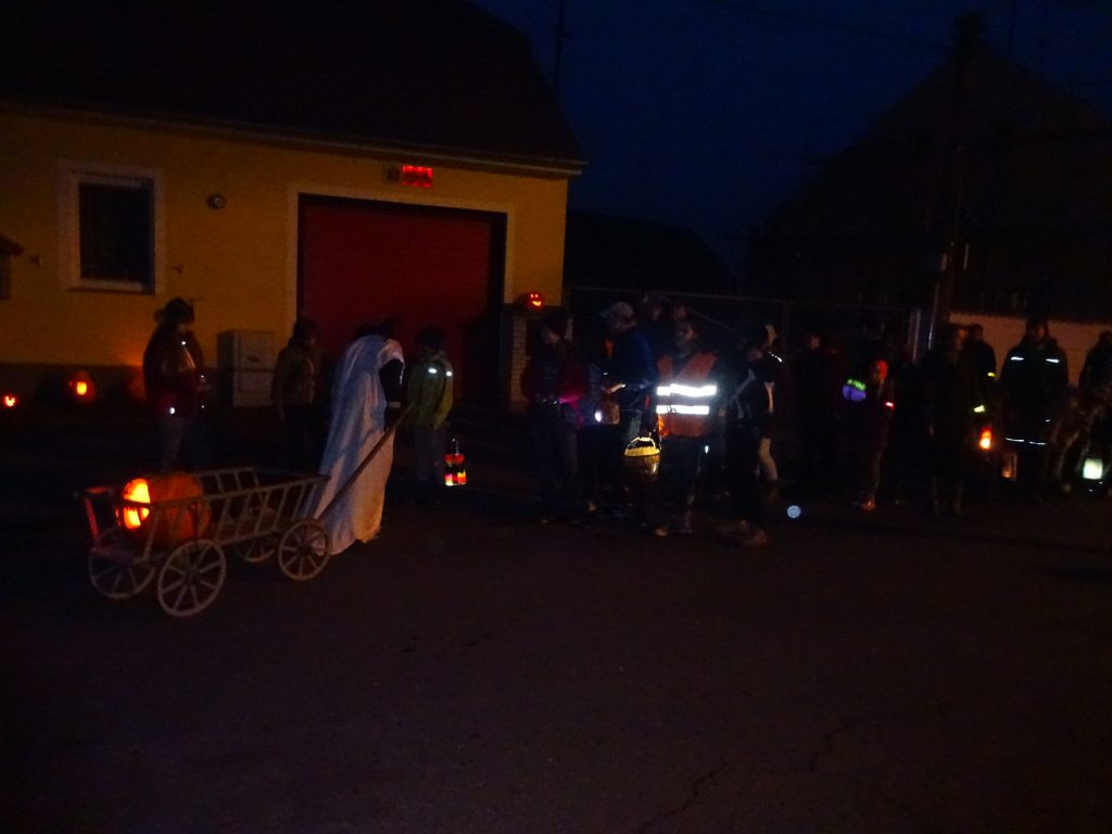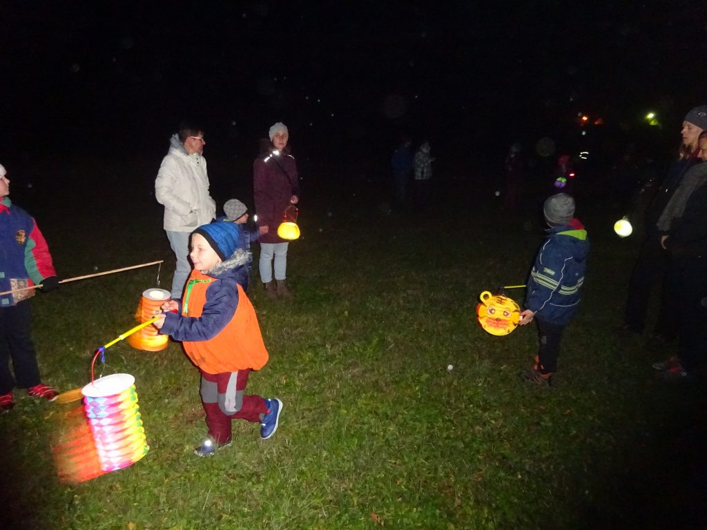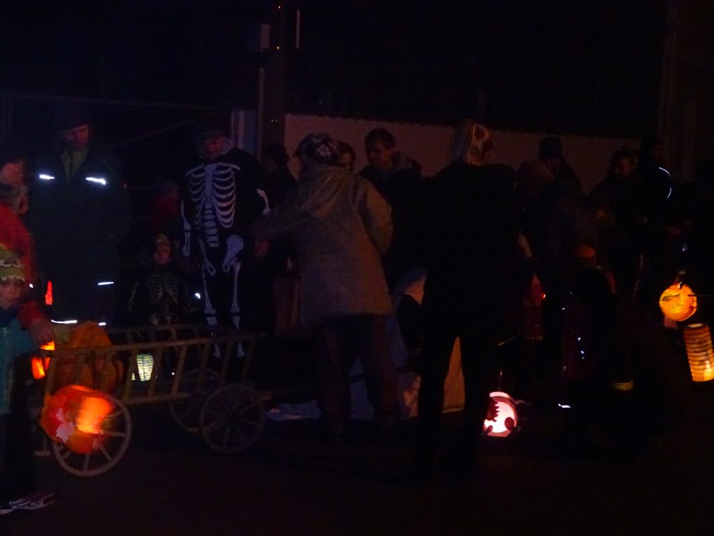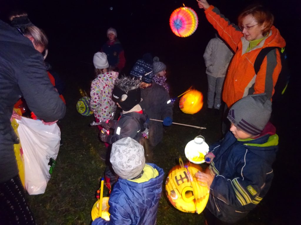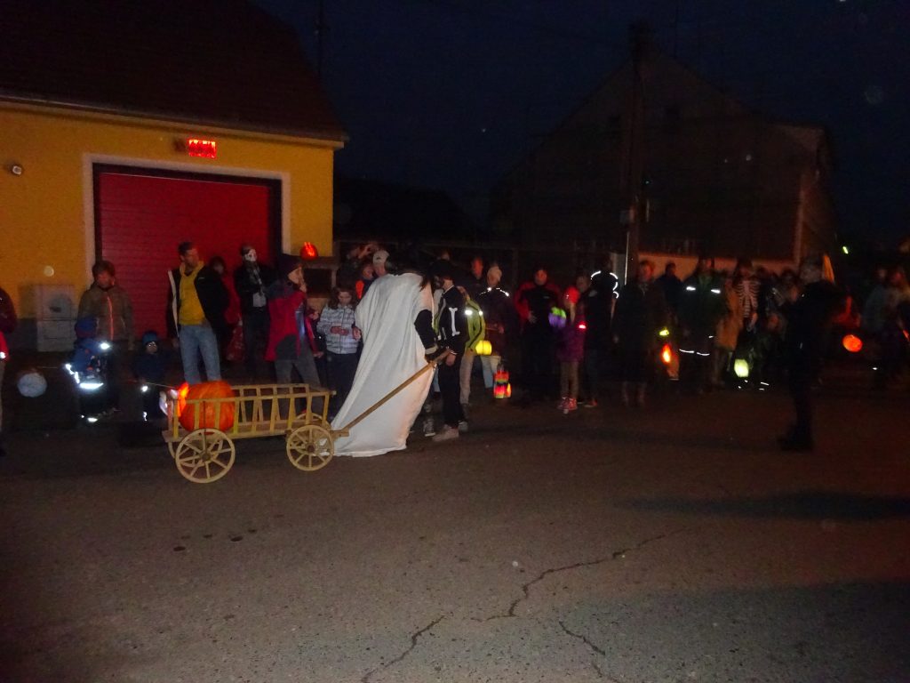 A Hallowenn pokračoval… Děti ve svých kostýmech zaplnily poslední říjnový týden školku a s chutí soutěžily, vyráběly a dloubaly dýně. V sobotu 3. listopadu vyzdobily rozsvícené dýně naši vesnici a lampionový průvod se vydal vesnicí na louku za bytovku. Průvod doprovázelo několik duchů a strašidel, výzdoba u obydlí nebrala konce a fantazie místních obyvatel. Na louce hasiči připravili ohniště a stezku pro odvážné děti. Nechybělo ani pouštění lampionků štěstí a opékání špekáčků. Opět se zúčastnila široká veřejnost a lampionový průvod se vydařil.