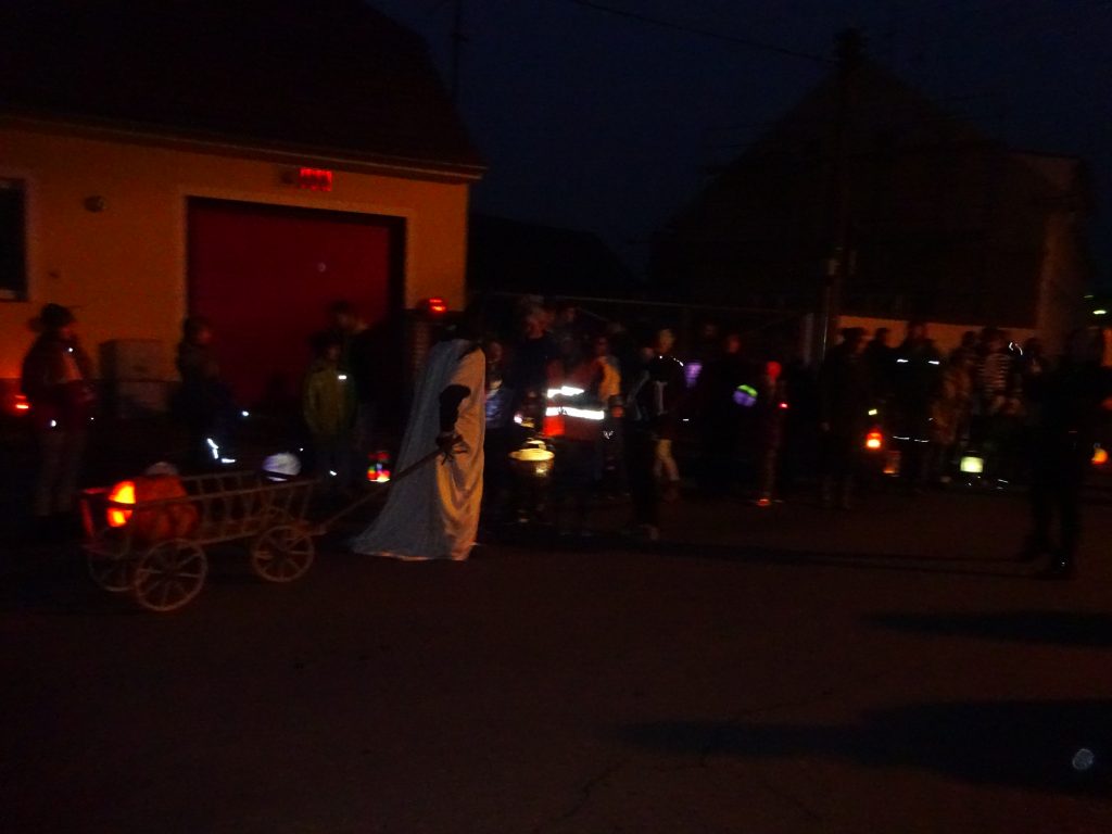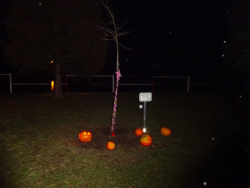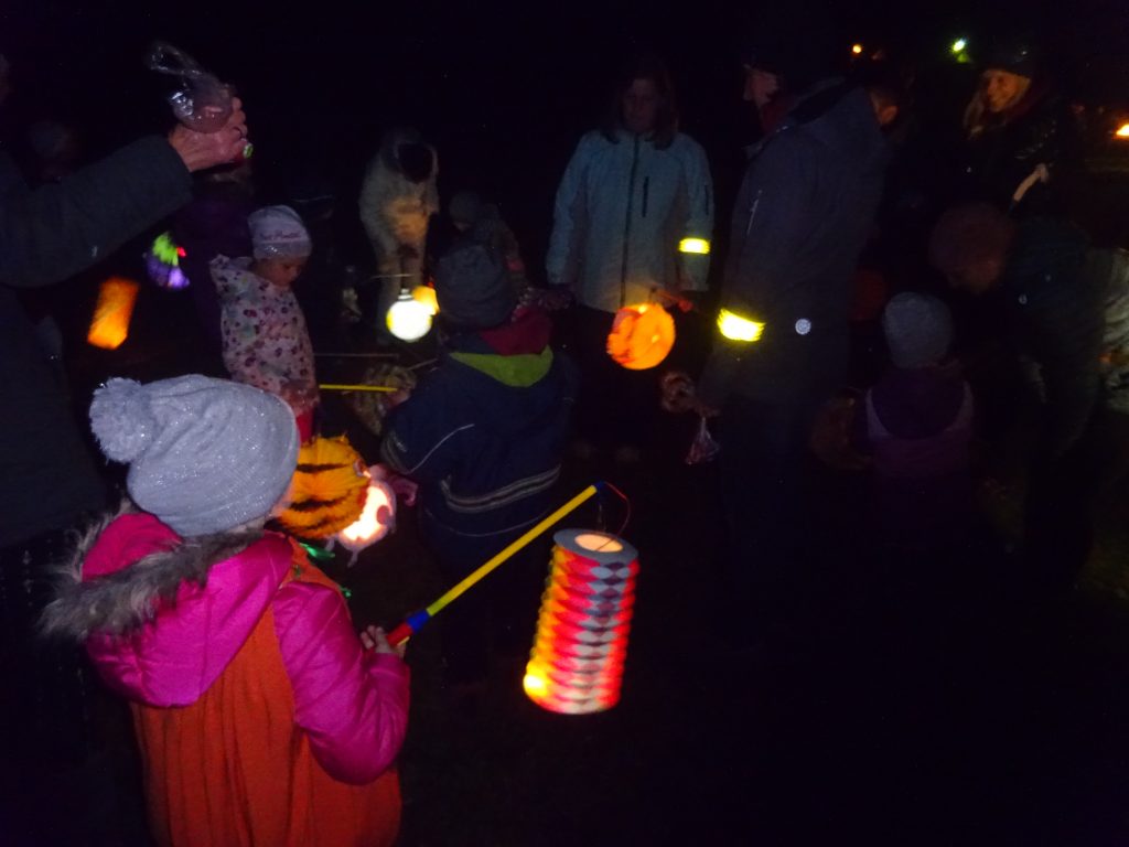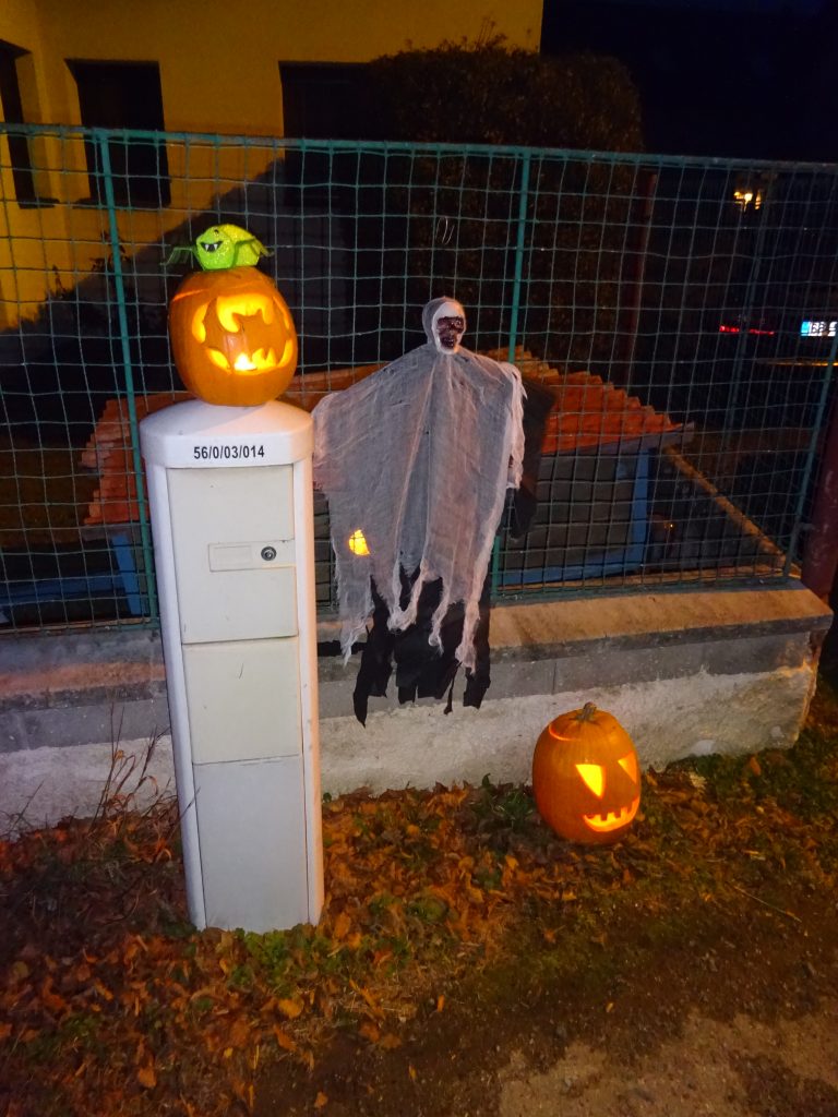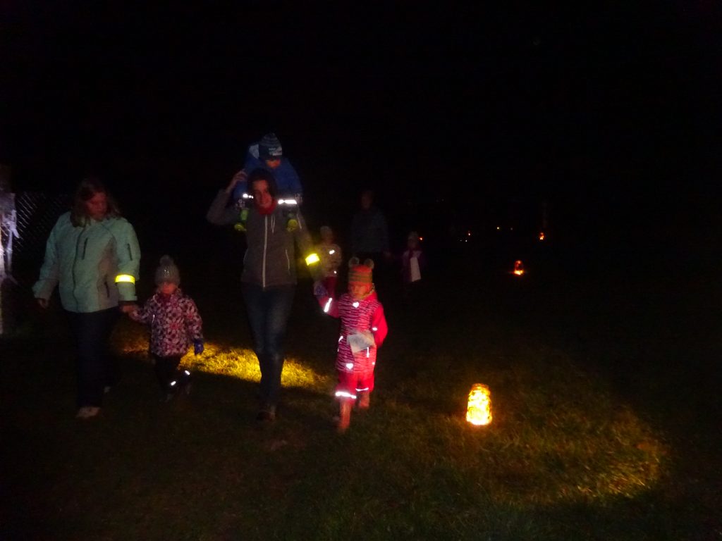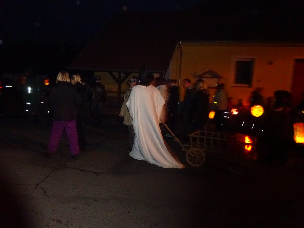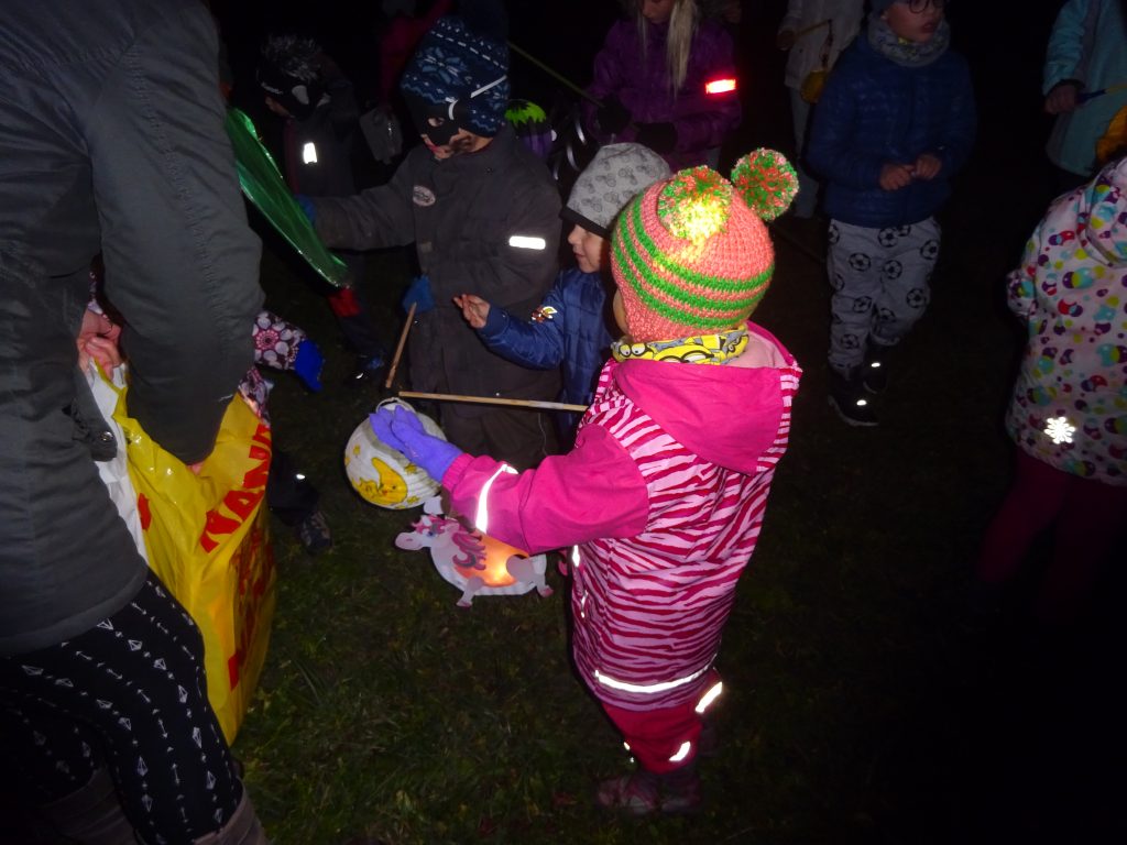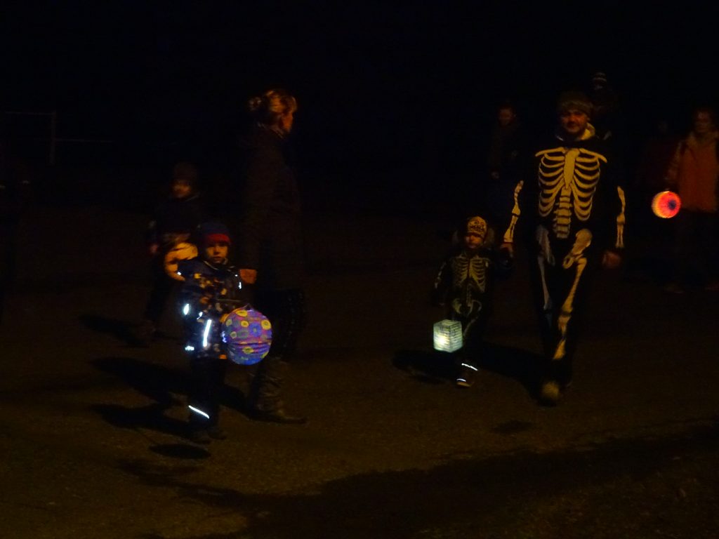 A Hallowenn pokračoval… Děti ve svých kostýmech zaplnily poslední říjnový týden školku a s chutí soutěžily, vyráběly a dloubaly dýně. V sobotu 3. listopadu vyzdobily rozsvícené dýně naši vesnici a lampionový průvod se vydal vesnicí na louku za bytovku. Průvod doprovázelo několik duchů a strašidel, výzdoba u obydlí nebrala konce a fantazie místních obyvatel. Na louce hasiči připravili ohniště a stezku pro odvážné děti. Nechybělo ani pouštění lampionků štěstí a opékání špekáčků. Opět se zúčastnila široká veřejnost a lampionový průvod se vydařil.