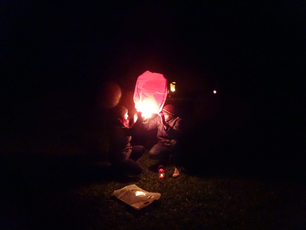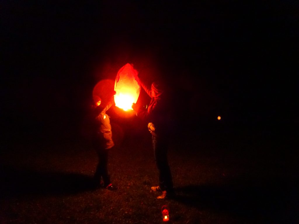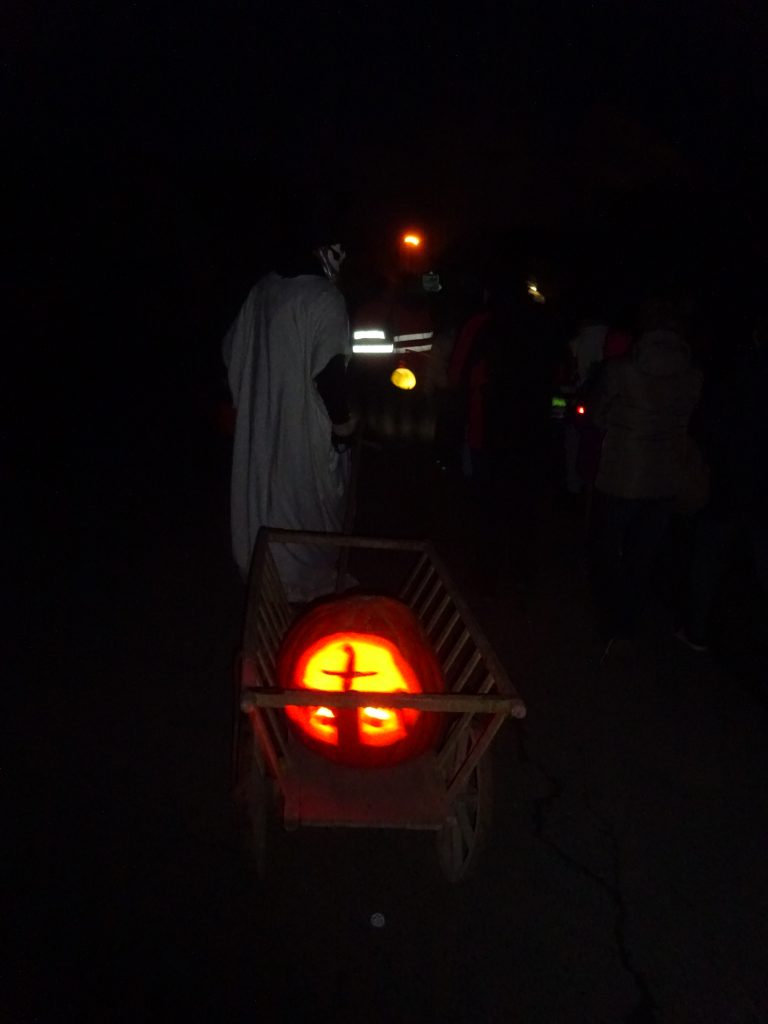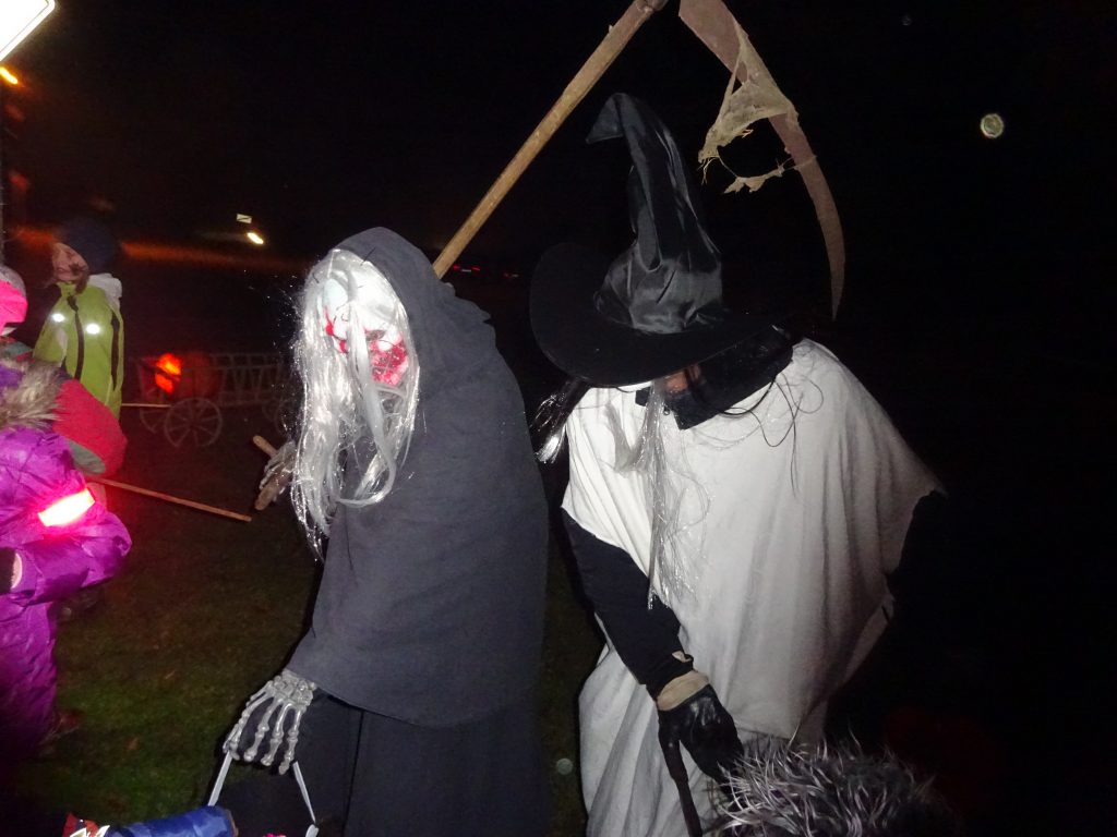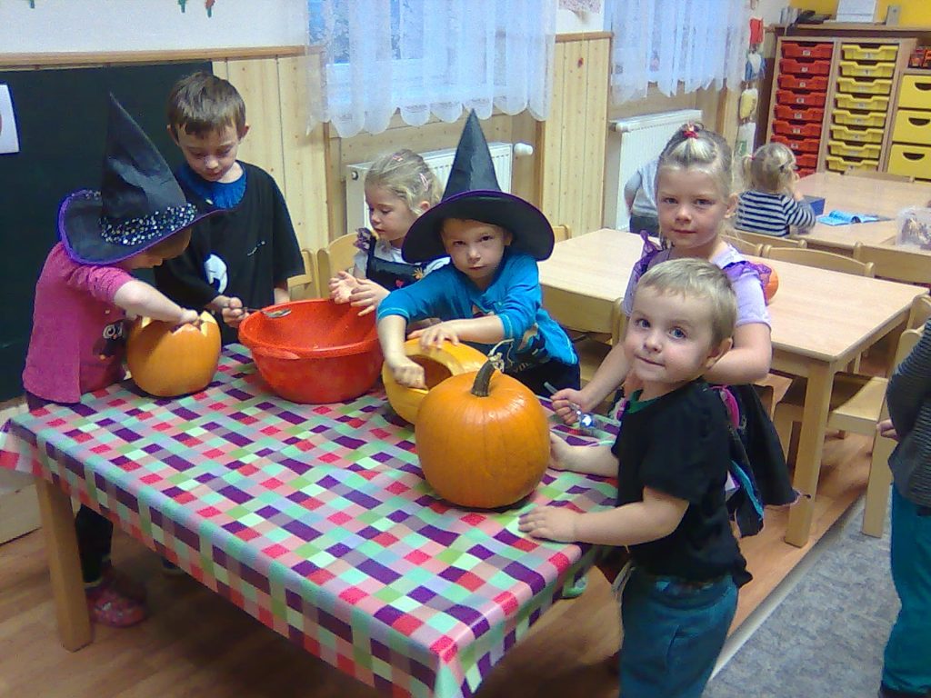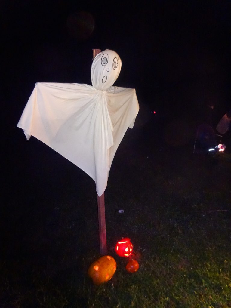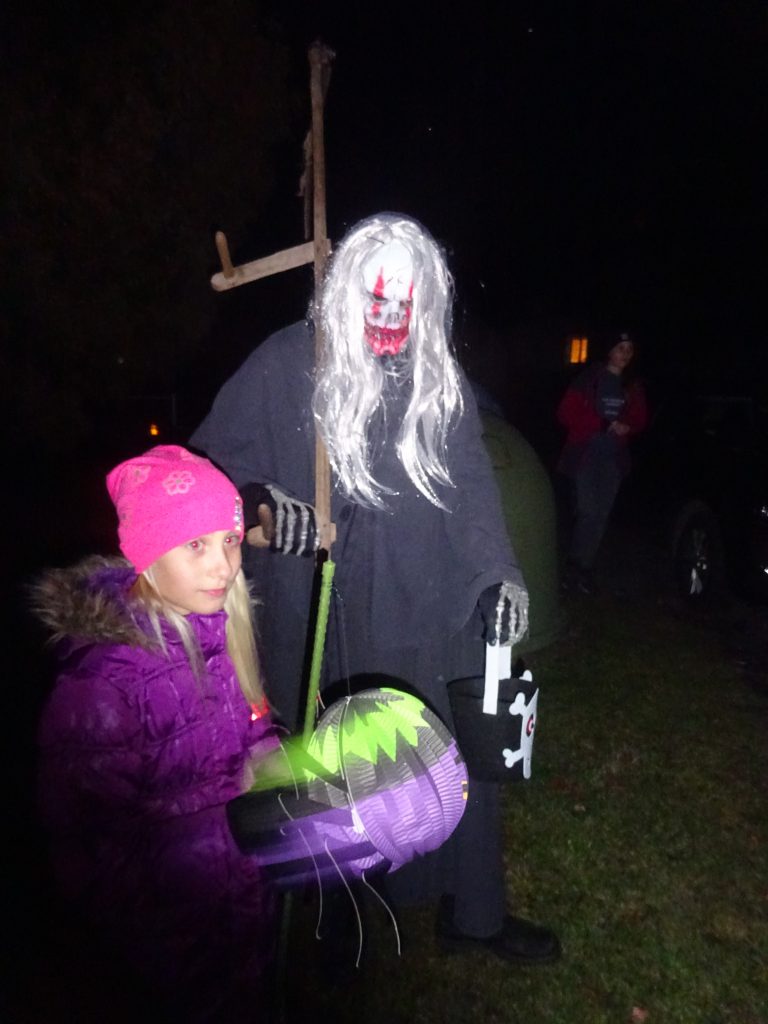 A Hallowenn pokračoval… Děti ve svých kostýmech zaplnily poslední říjnový týden školku a s chutí soutěžily, vyráběly a dloubaly dýně. V sobotu 3. listopadu vyzdobily rozsvícené dýně naši vesnici a lampionový průvod se vydal vesnicí na louku za bytovku. Průvod doprovázelo několik duchů a strašidel, výzdoba u obydlí nebrala konce a fantazie místních obyvatel. Na louce hasiči připravili ohniště a stezku pro odvážné děti. Nechybělo ani pouštění lampionků štěstí a opékání špekáčků. Opět se zúčastnila široká veřejnost a lampionový průvod se vydařil.