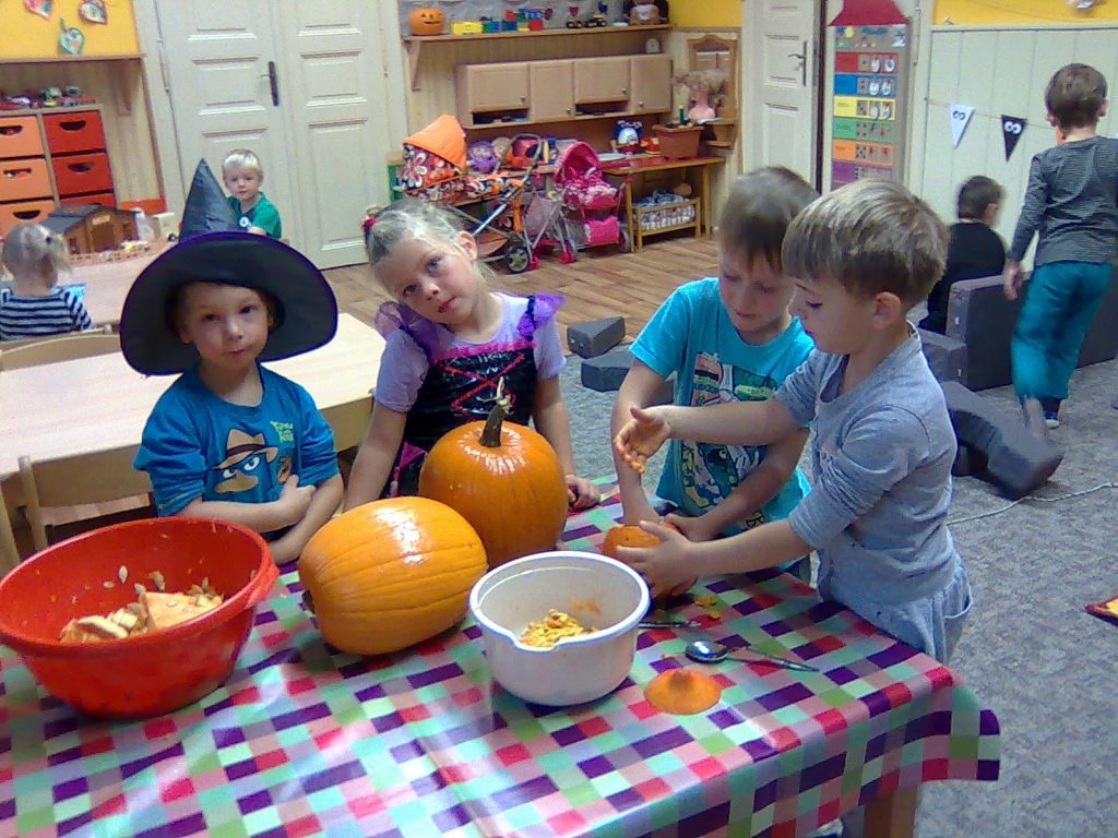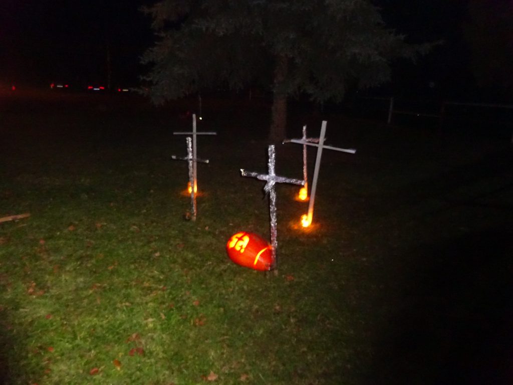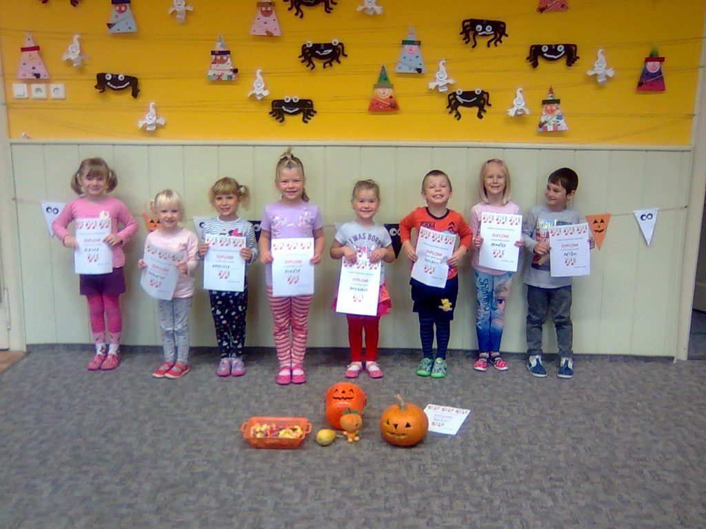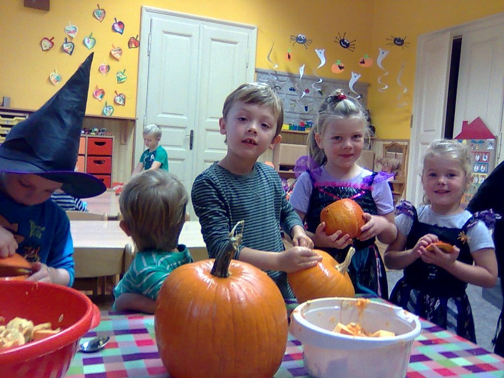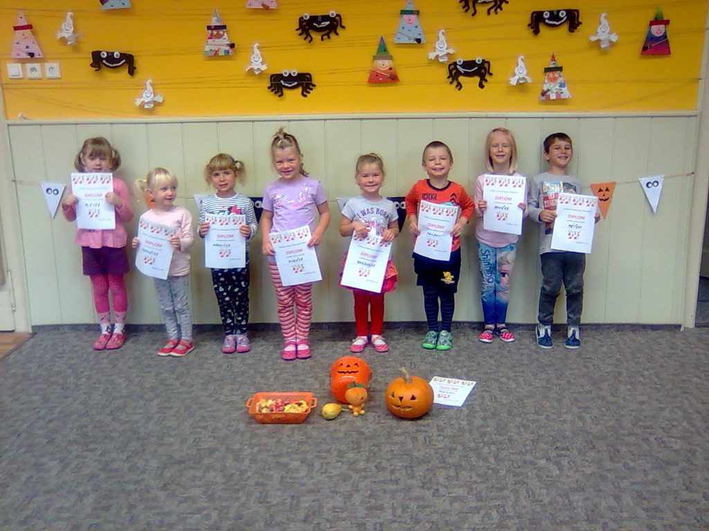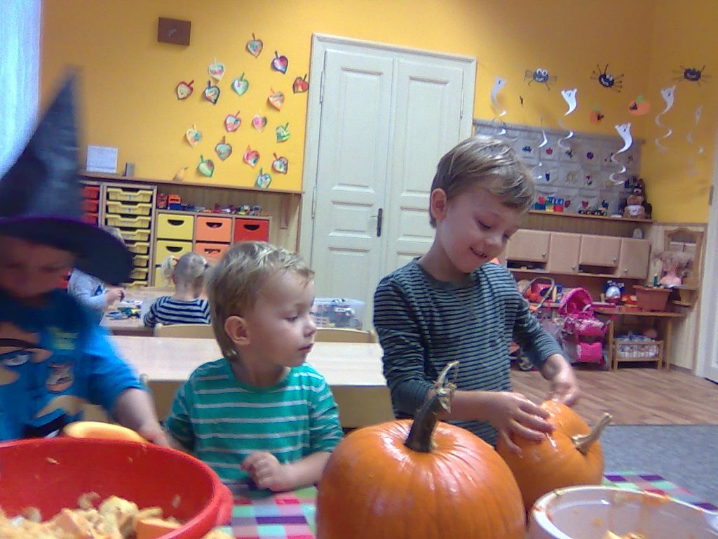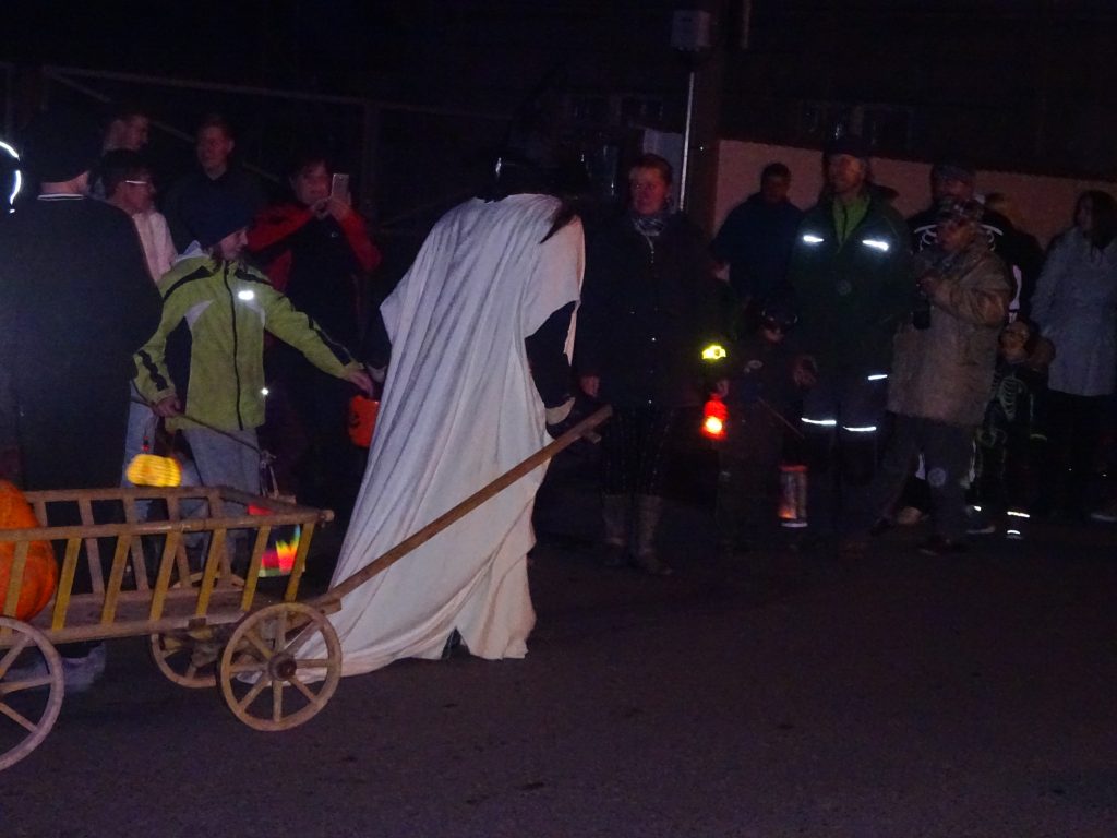 A Hallowenn pokračoval… Děti ve svých kostýmech zaplnily poslední říjnový týden školku a s chutí soutěžily, vyráběly a dloubaly dýně. V sobotu 3. listopadu vyzdobily rozsvícené dýně naši vesnici a lampionový průvod se vydal vesnicí na louku za bytovku. Průvod doprovázelo několik duchů a strašidel, výzdoba u obydlí nebrala konce a fantazie místních obyvatel. Na louce hasiči připravili ohniště a stezku pro odvážné děti. Nechybělo ani pouštění lampionků štěstí a opékání špekáčků. Opět se zúčastnila široká veřejnost a lampionový průvod se vydařil.