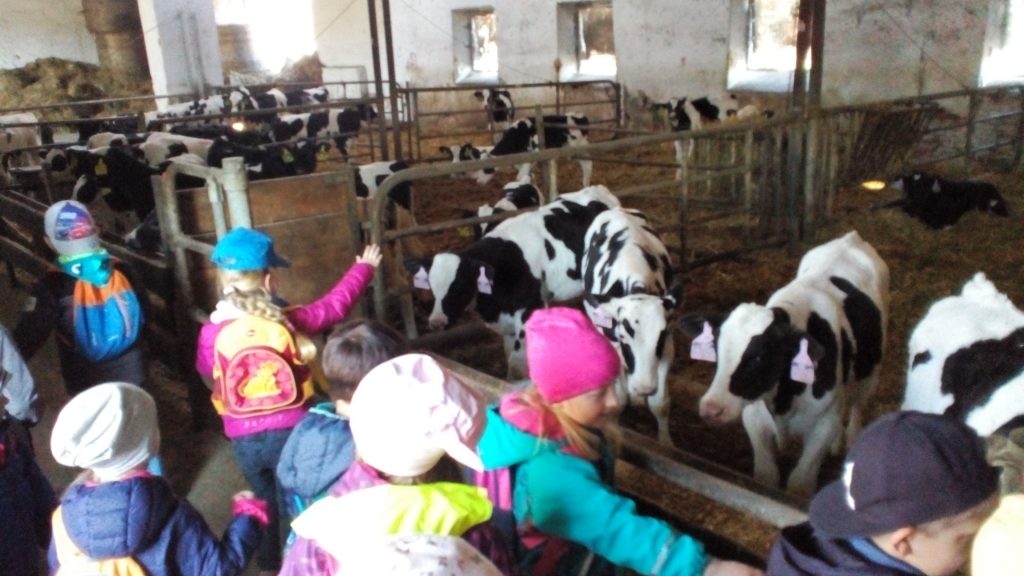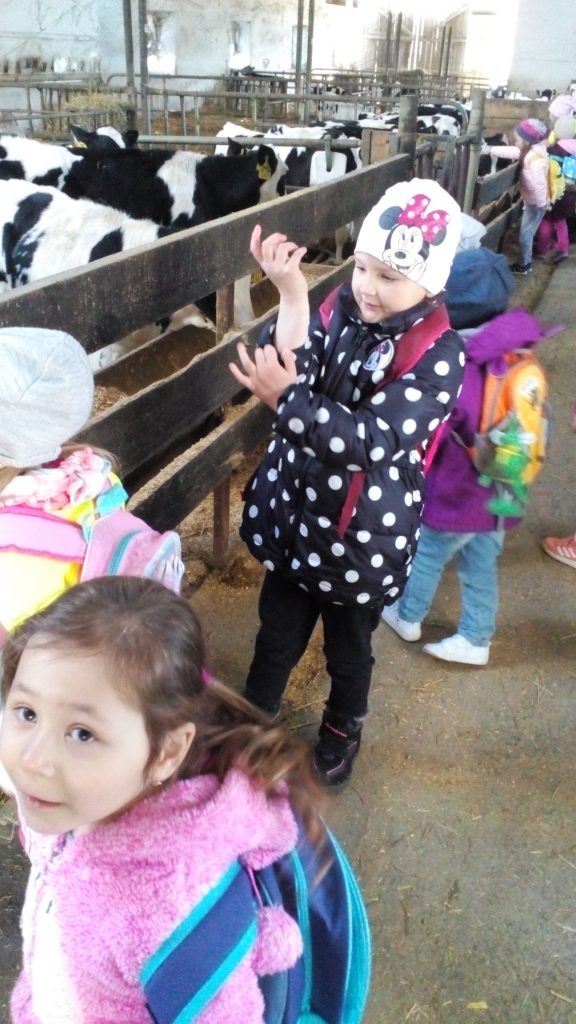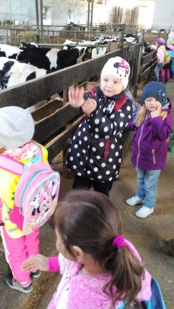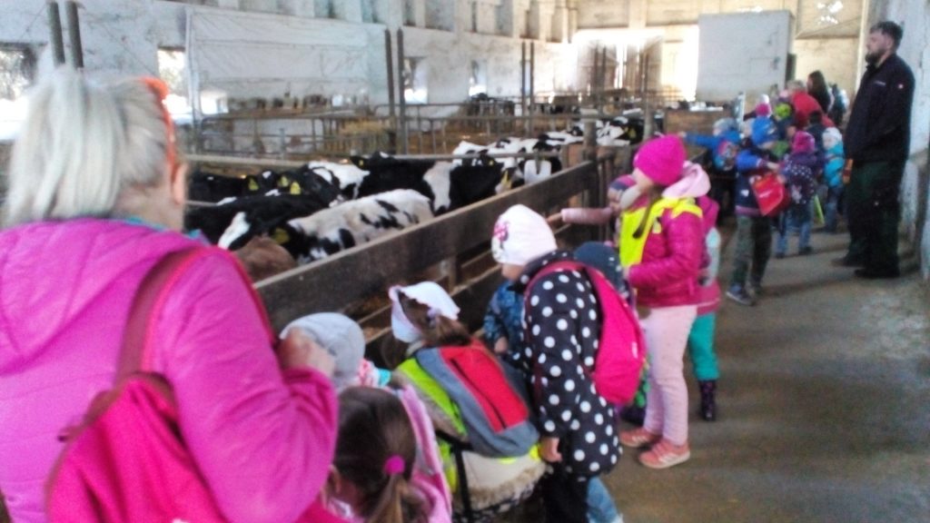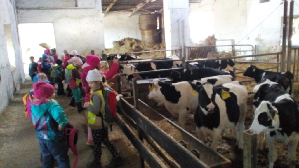 Návštěva obou tříd MŠ «Meclovské zemědělské» a kravína v Srbech.