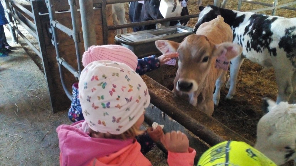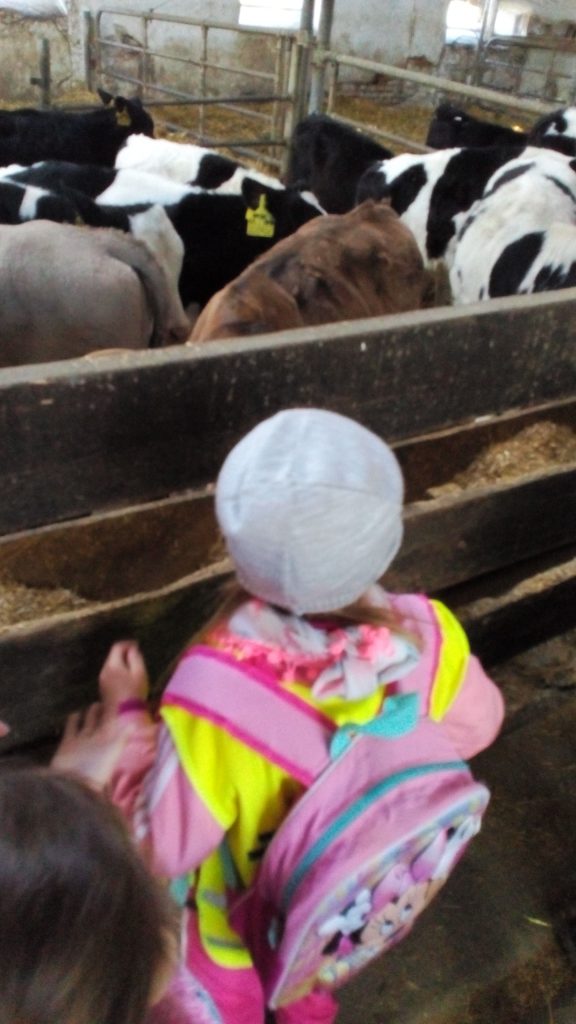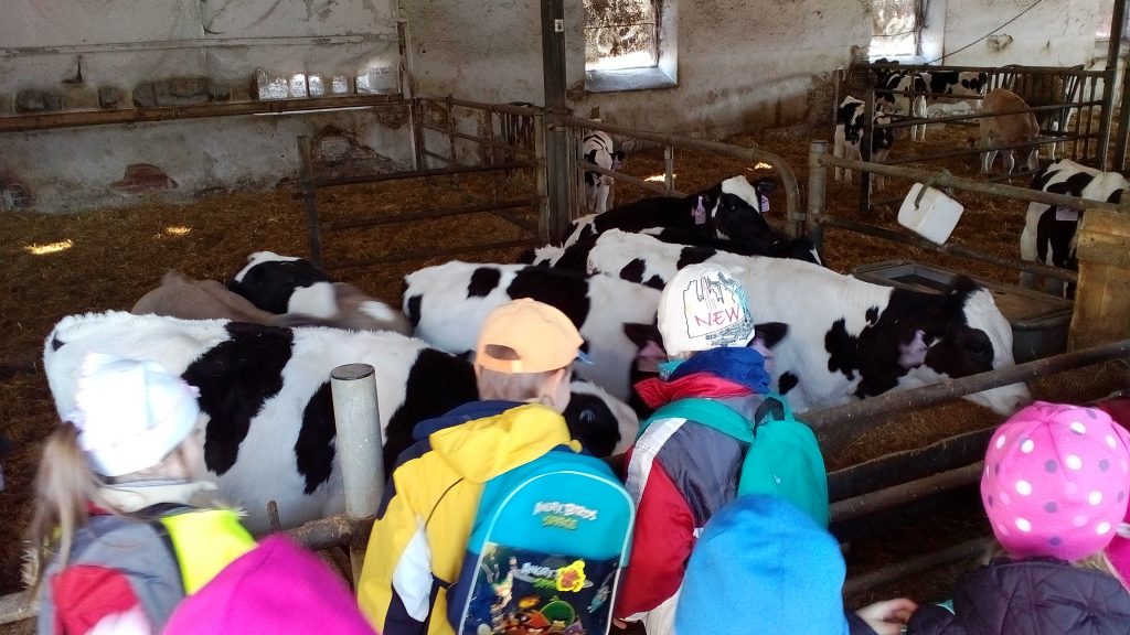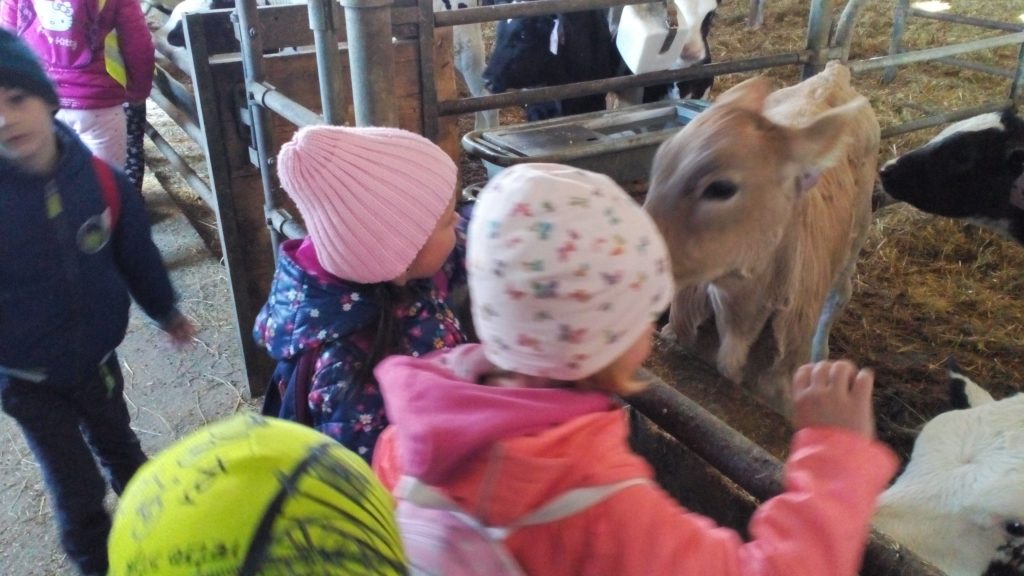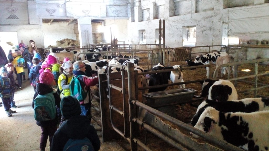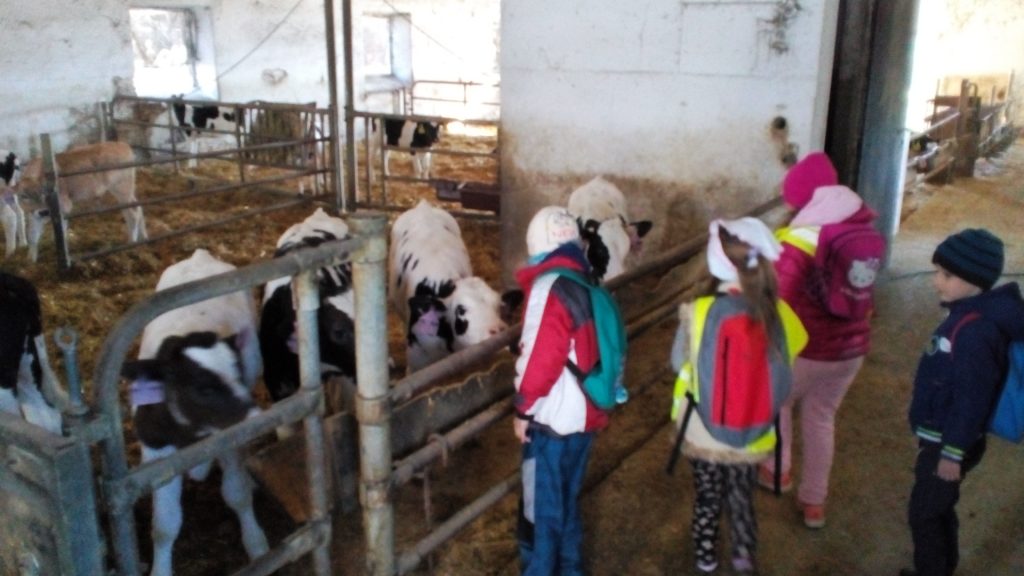 Návštěva obou tříd MŠ «Meclovské zemědělské» a kravína v Srbech.