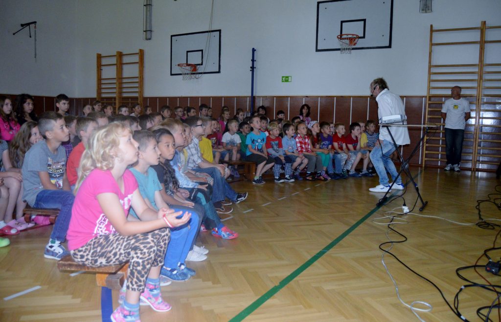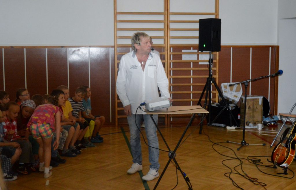 V pondělí 8. června se v naší tělocvičně uskutečníl hudební pořad pro I. i II. stupeň školy. Pořad se dětem moc líbil.