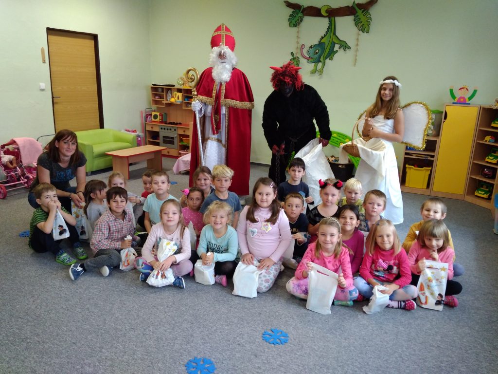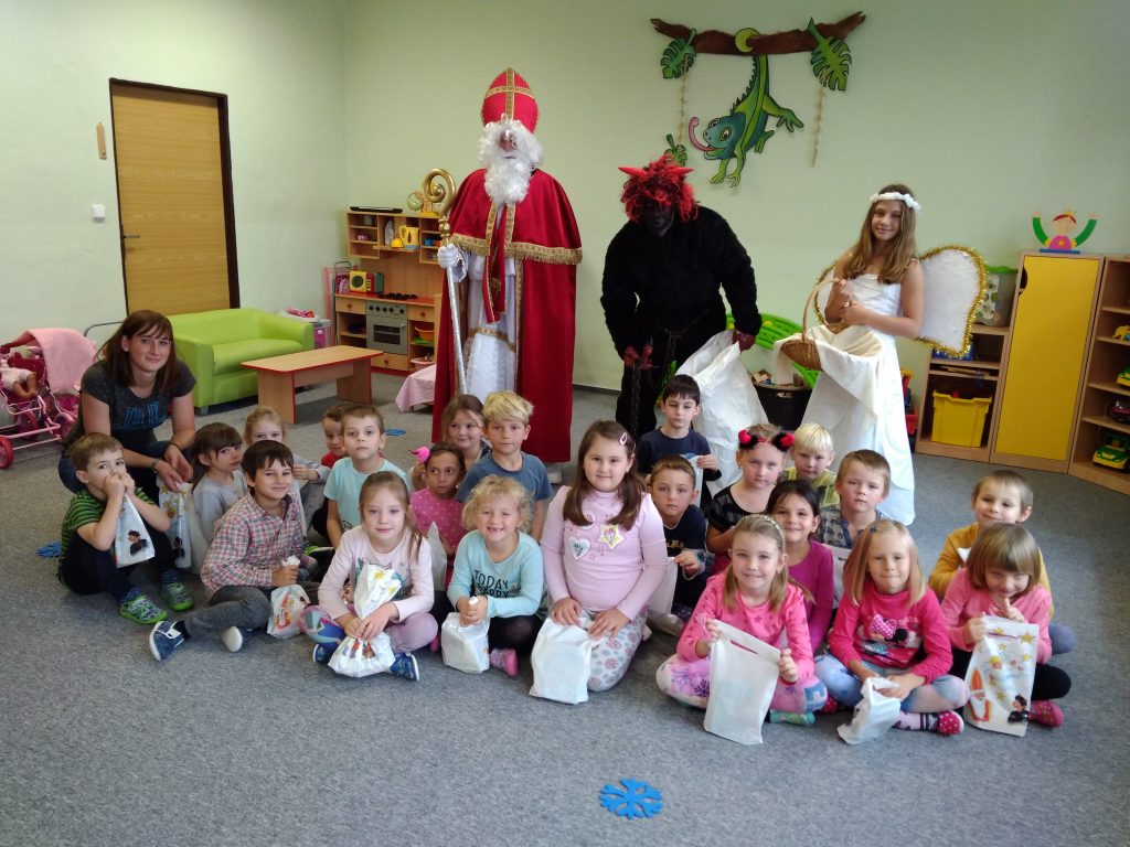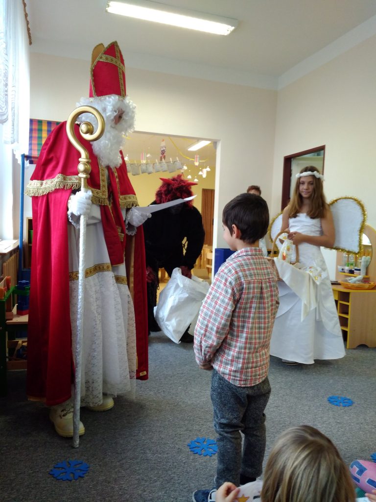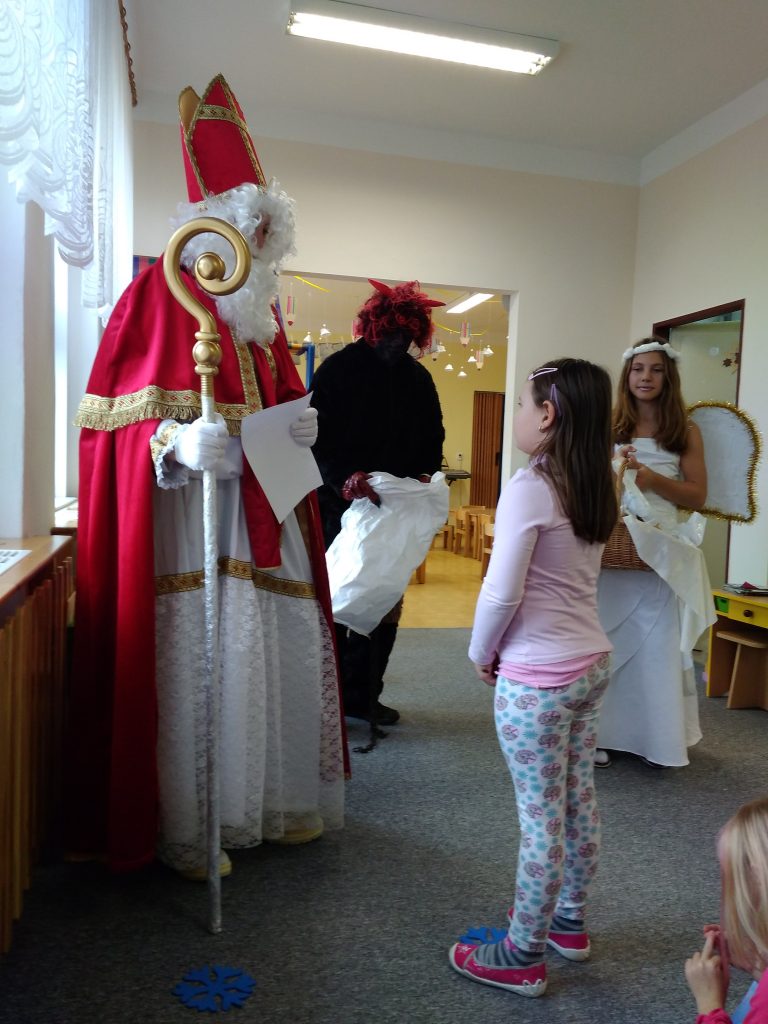 I nás navštívil letos Mikuláš s andělem a hlavně čertem, který postrašil hlavně nezbedníky, ale nakonec se dočkali balíčků s odměnami všichni.