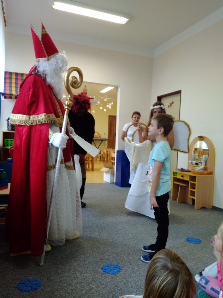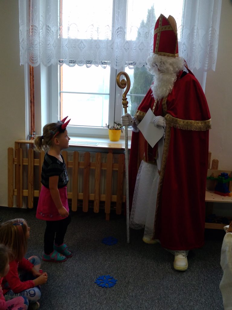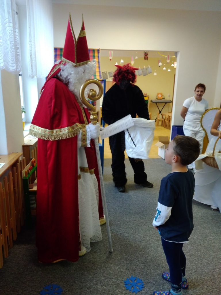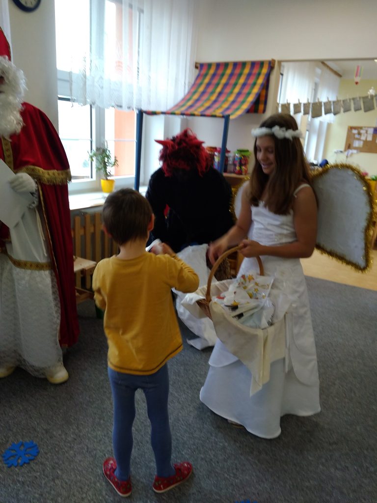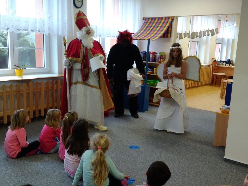 I nás navštívil letos Mikuláš s andělem a hlavně čertem, který postrašil hlavně nezbedníky, ale nakonec se dočkali balíčků s odměnami všichni.