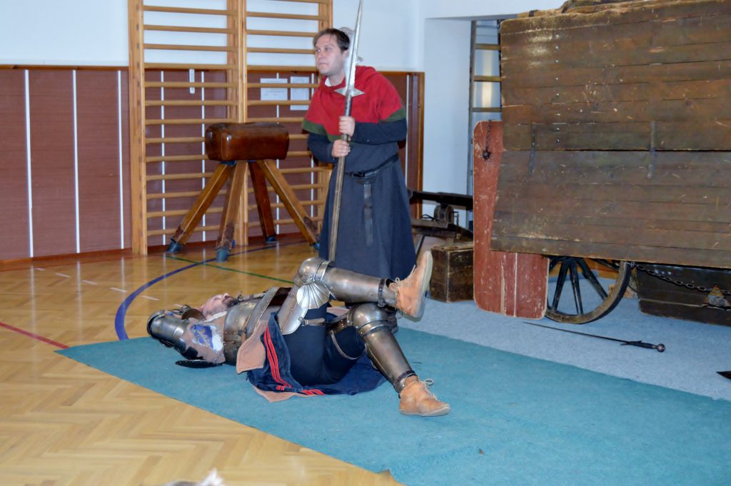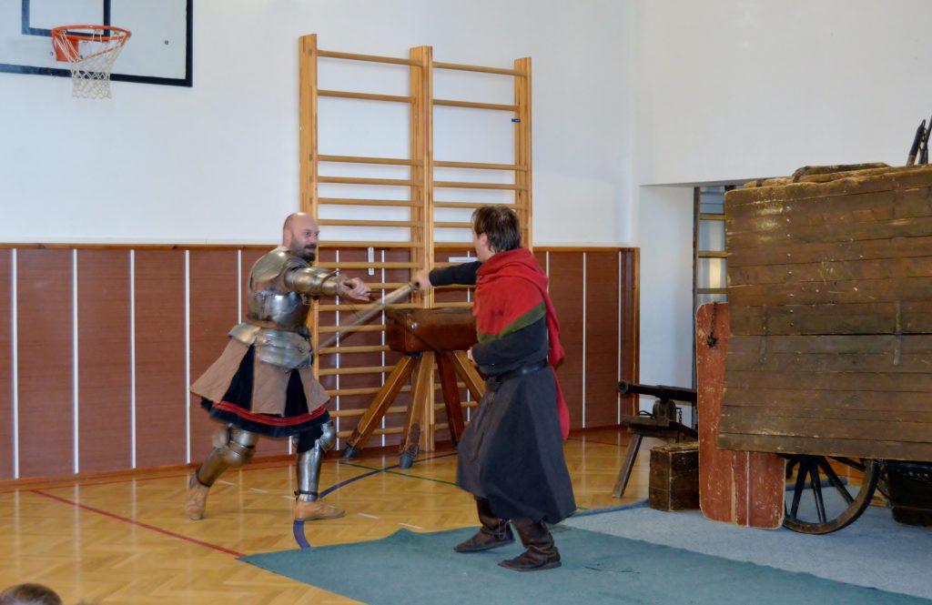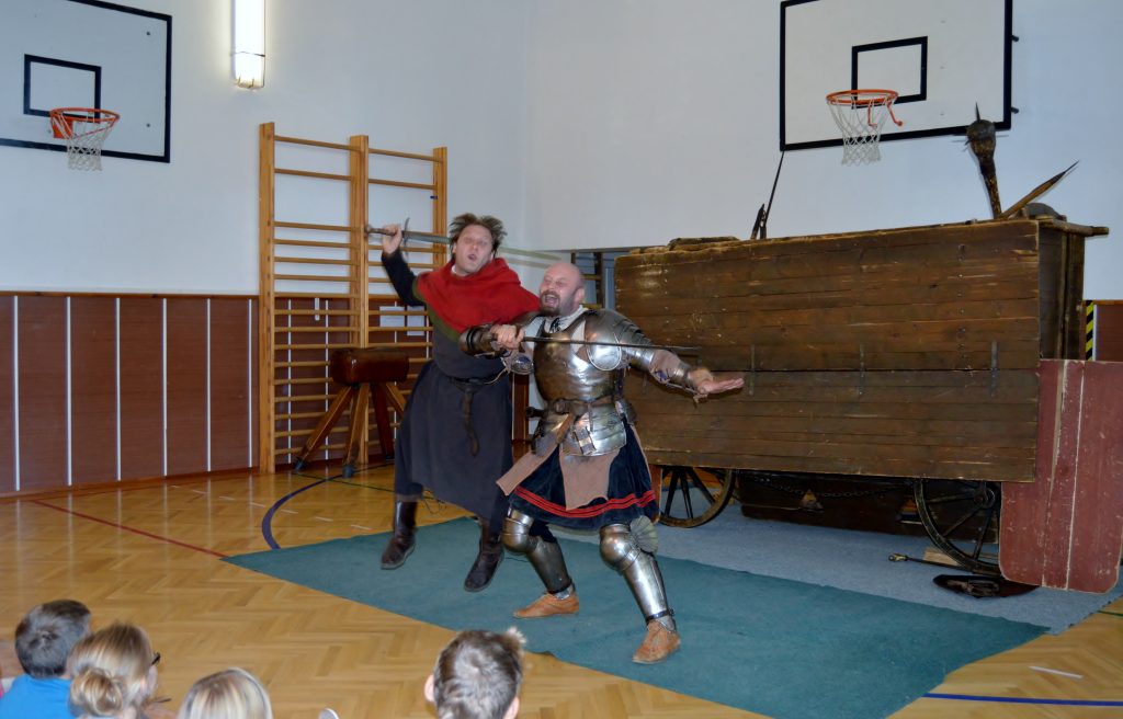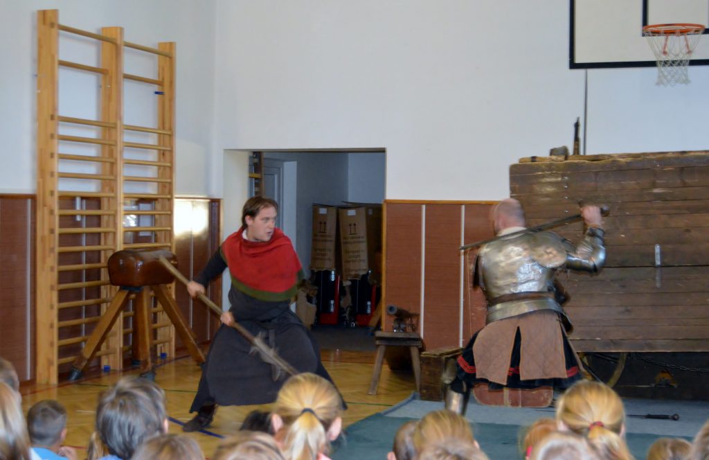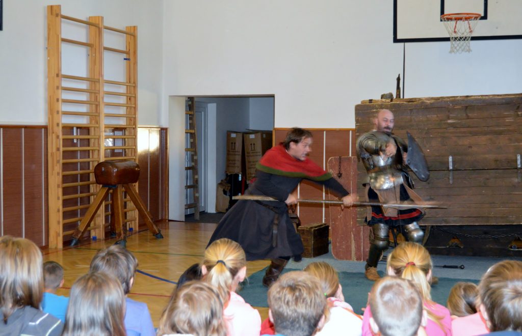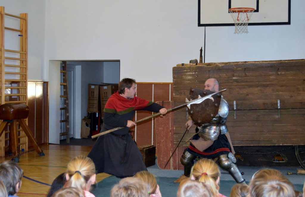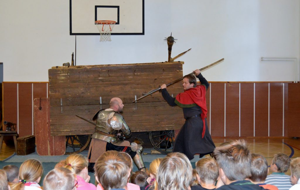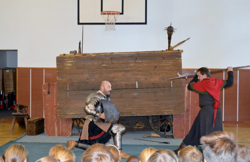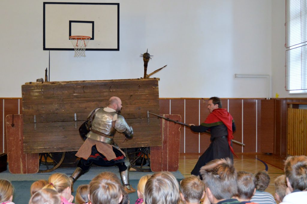 Dne 1. 10. 2015 opět po roce přijeli na naši školu pánové z šermířského spolku Pernštejni. Tentokrát nás navštívili s programem „Husité“.