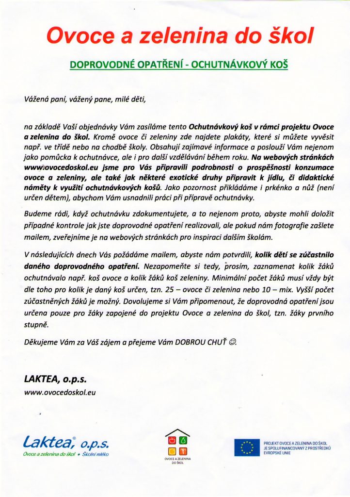 Projekt „Ovoce do škol“ – „Ochutnávkový koš“