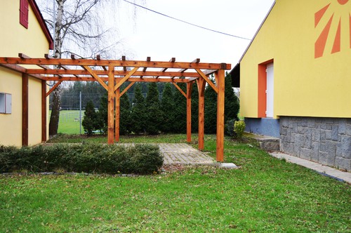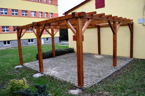 Díky finanční podpoře Lesů ČR letos na podzim  vybudována pergola – budoucí přírodní učebna  pro žáky naší školy. Společnými silami jsme si vybudovali podklad – plochu z betonových kostek a základy pro stavbu altánu- pro jeho uchycení. Firma pana Srnky nám dodala materiál – dřevo na stavbu pergoly a firma pana Leitla pergolu postavila. Obecní úřad nám z pokácených stromů poskytl dřevo na přírodní lavičky, které jsme na podzim rozřezali a na jaře po vyschnutí je povrchově upravíme a sestavíme. Domluvené je i osázení dřevěné konstrukce pergoly, které provedeme po doporučení zahradníka záhy zjara.