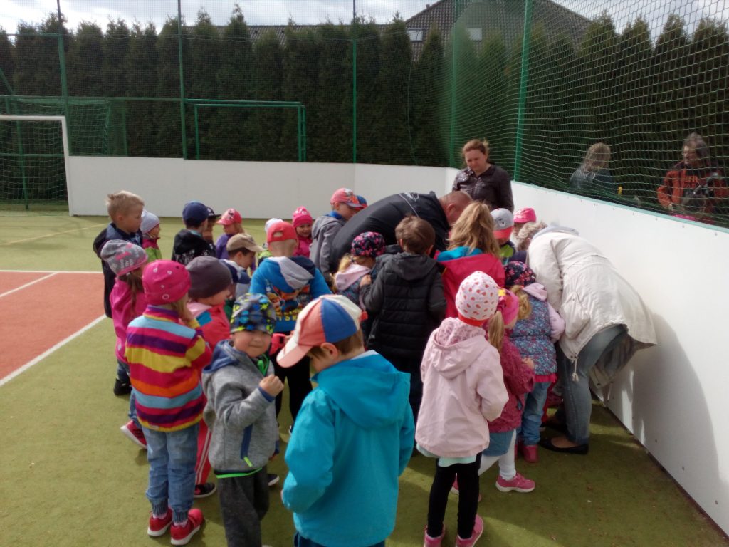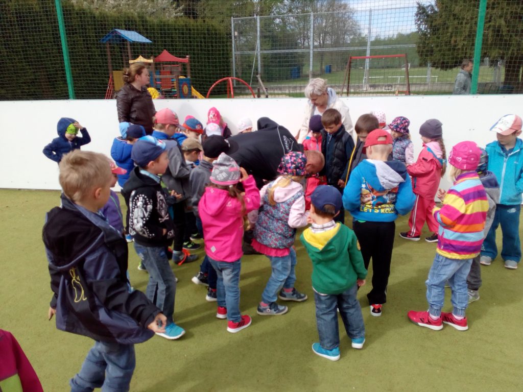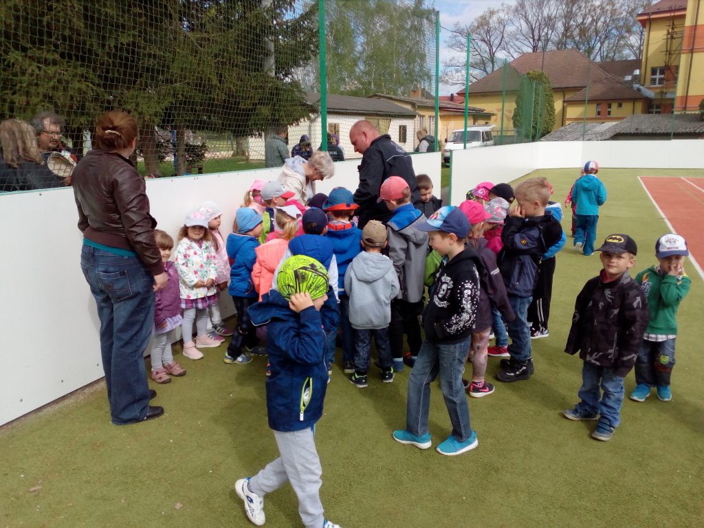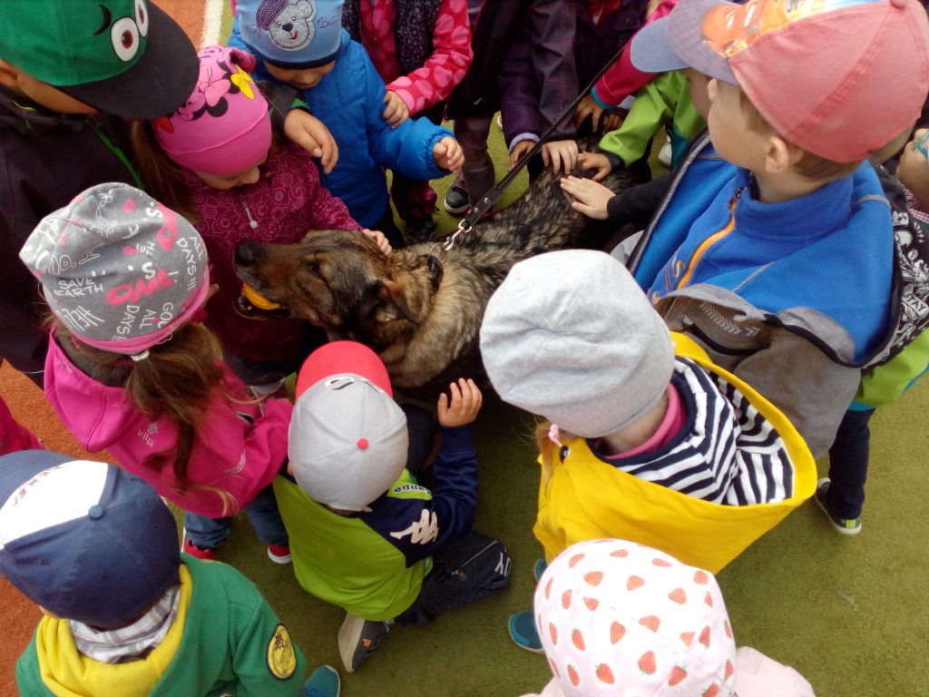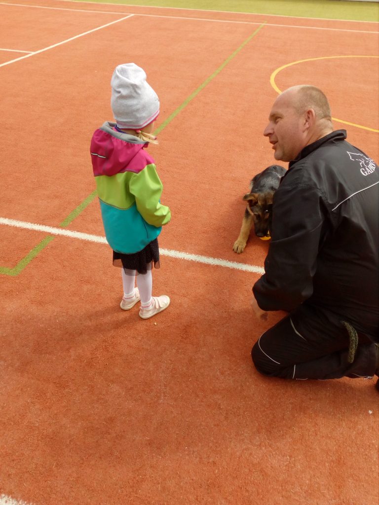 Ve čtvrtek 26. 4. k nám přijeli s ukázkou práce se psy domažličtí psovodi a zároveň probíhalo i focení dětí a předškoláků na tablo.