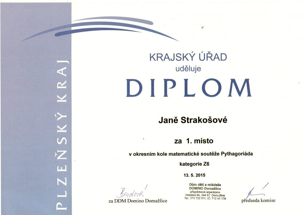 13. května se naši žáci zapojili do matematické soutěže «Pythagoriáda» v Domažlicích.