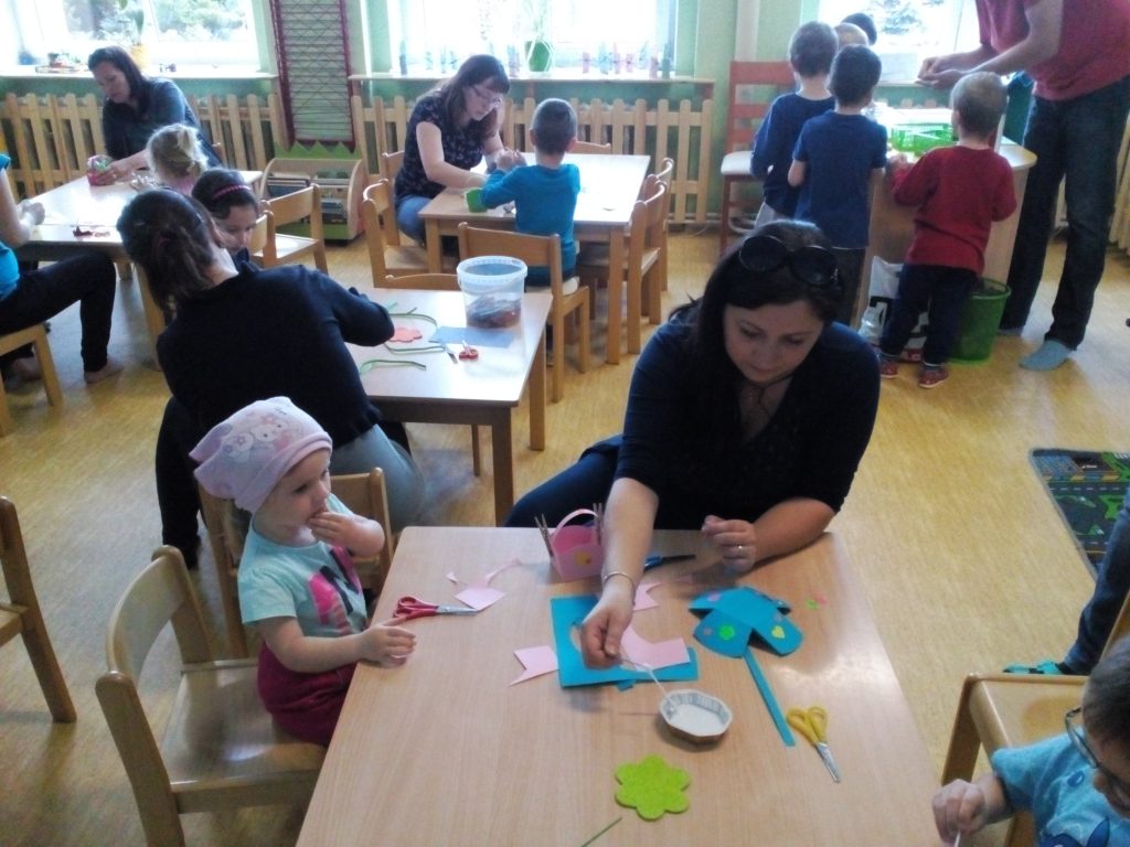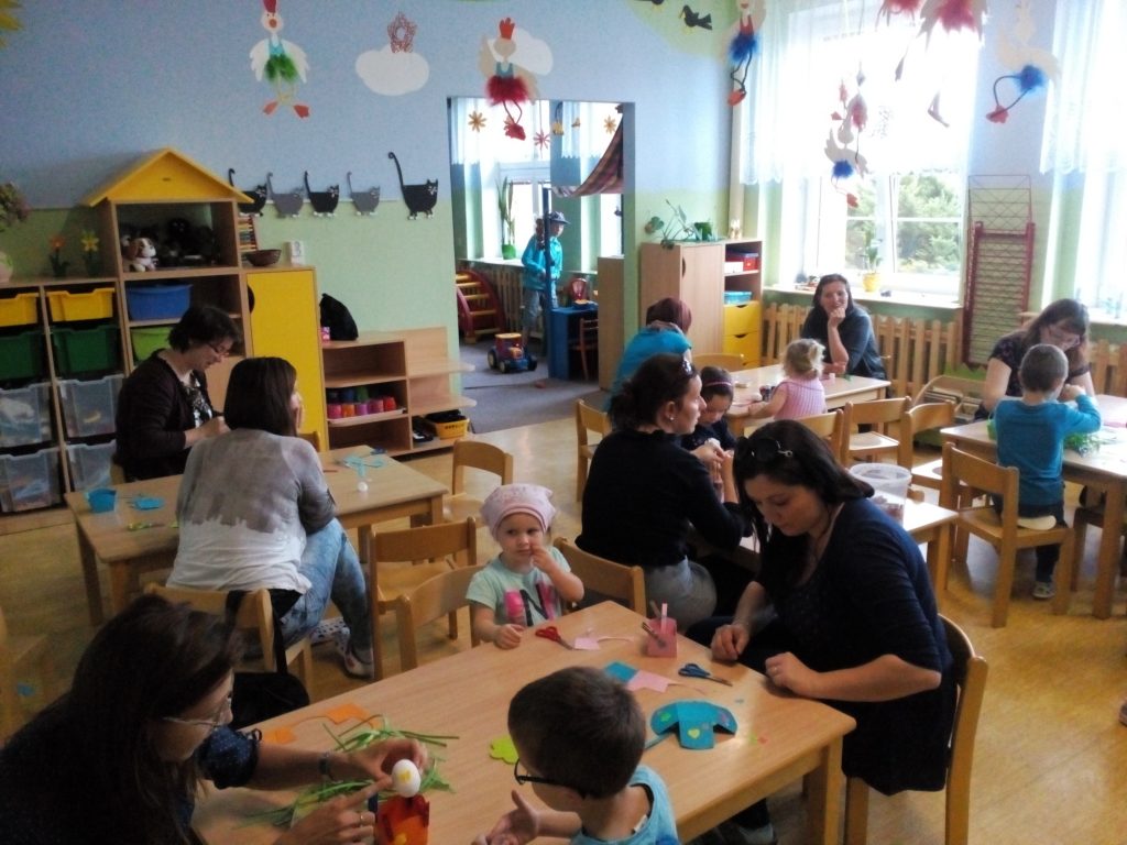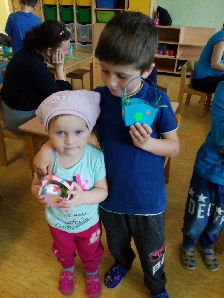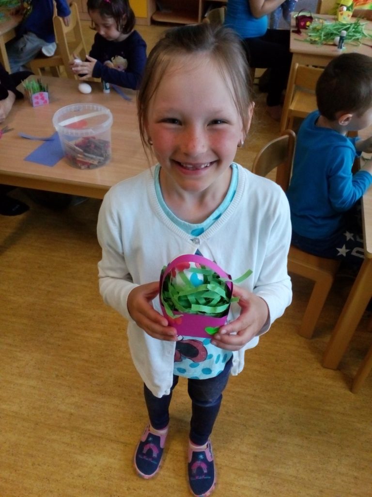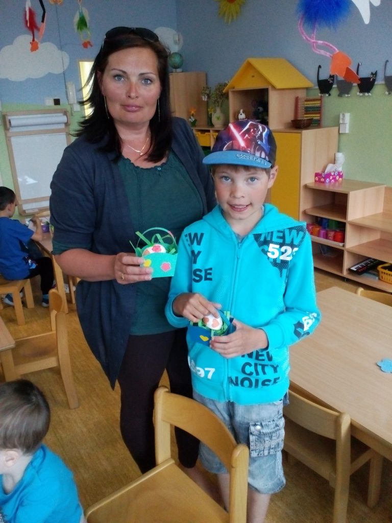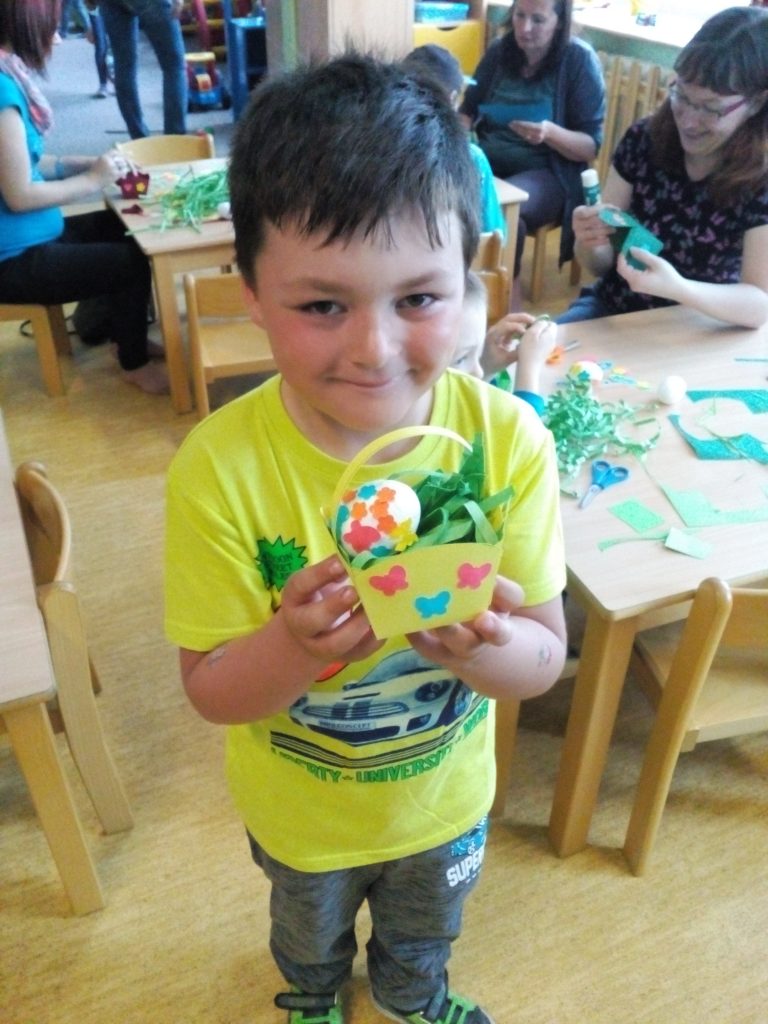 V pondělí 10. dubna jsme pozvali rodiče na velikonoční dílnu, kde si společně s dětmi vyrobili dekoraci — košík s vajíčkem. Jak se výrobky povedly vidíte v galerii i to, jak jsme v úterý slavili «červené» úterý…