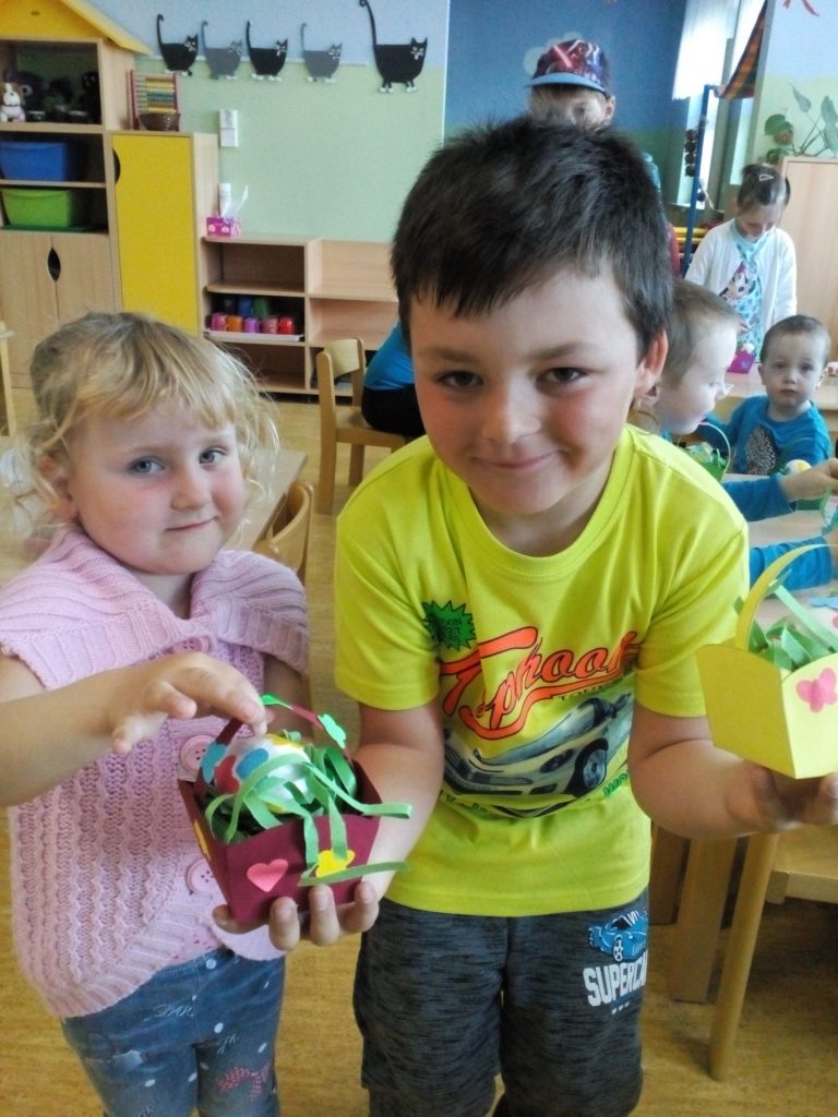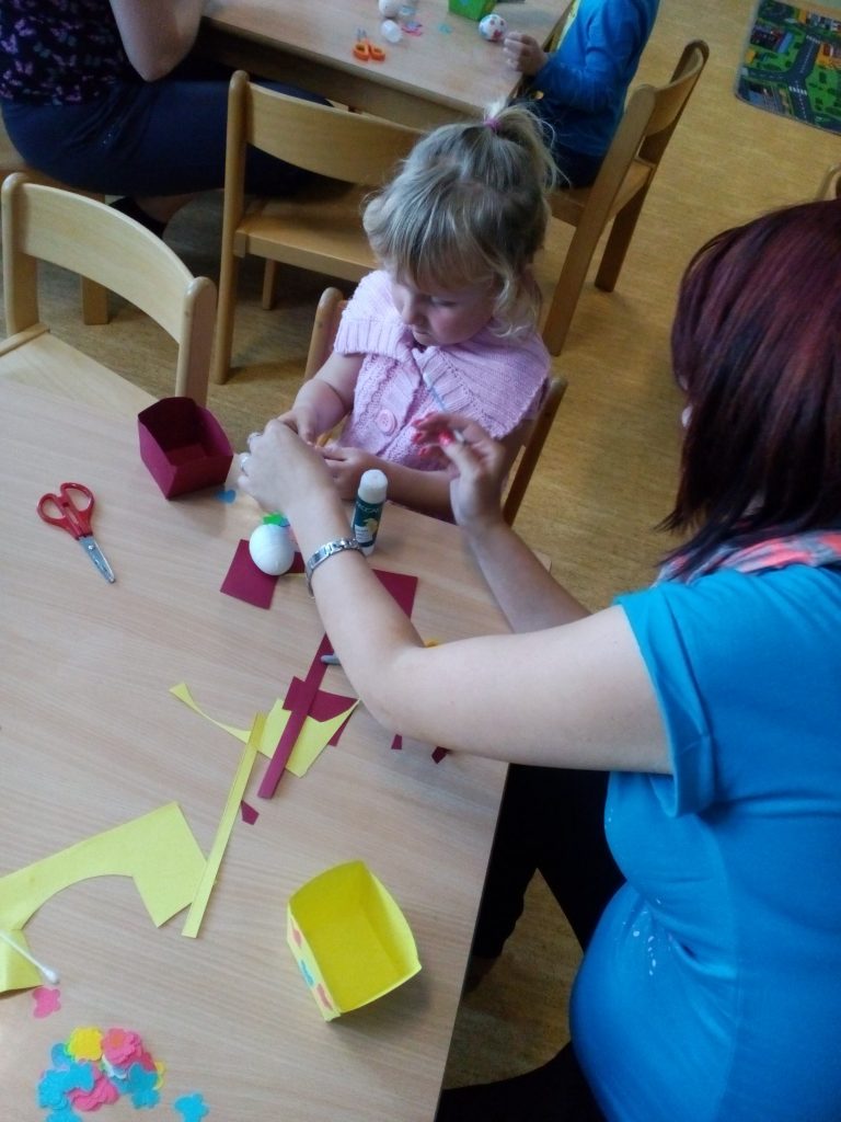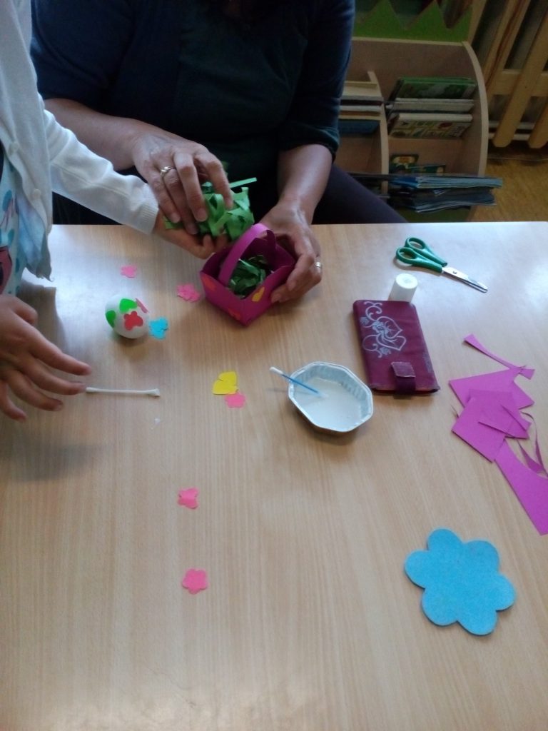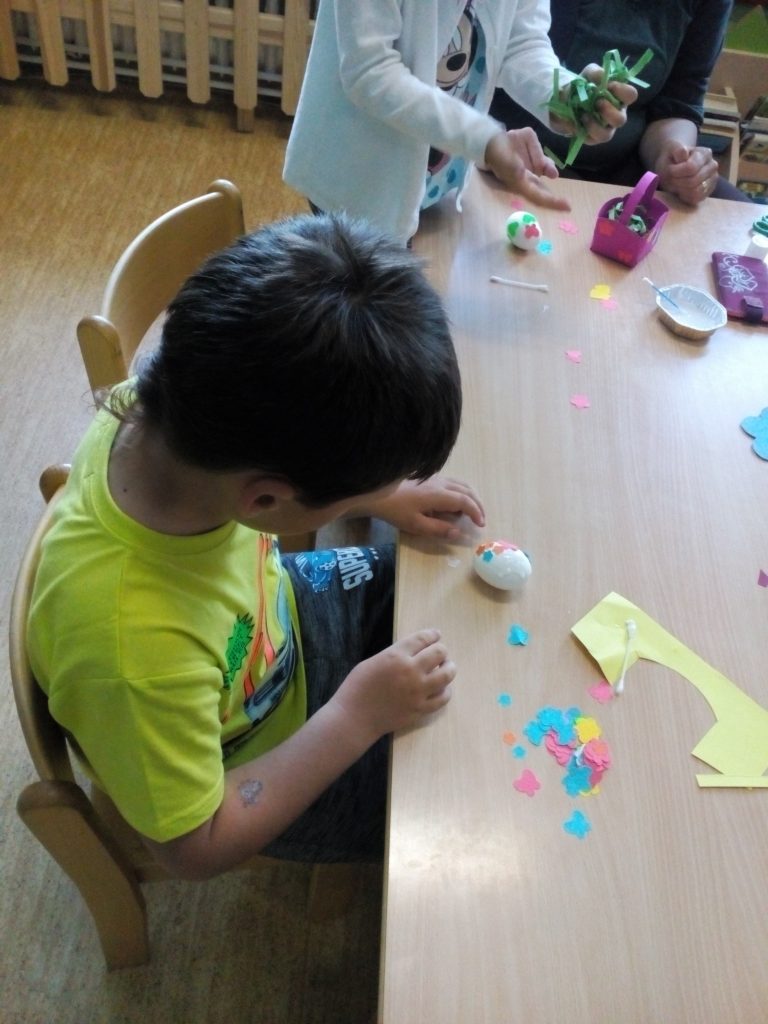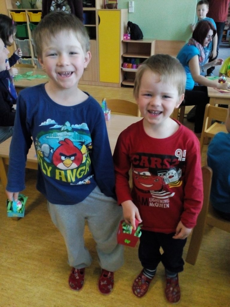 V pondělí 10. dubna jsme pozvali rodiče na velikonoční dílnu, kde si společně s dětmi vyrobili dekoraci — košík s vajíčkem. Jak se výrobky povedly vidíte v galerii i to, jak jsme v úterý slavili «červené» úterý…