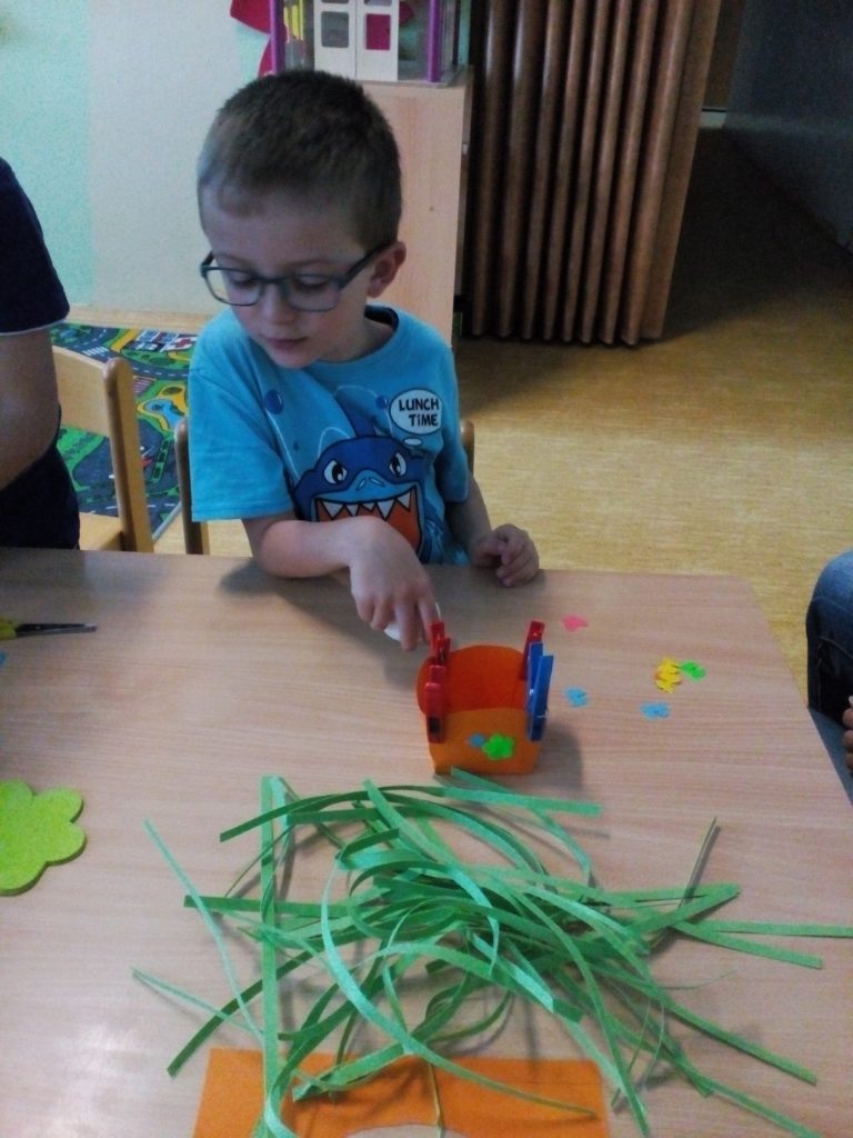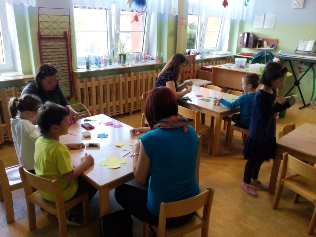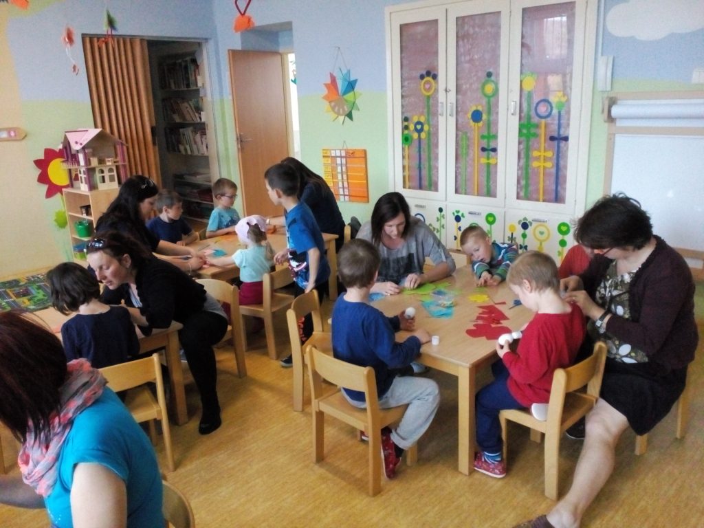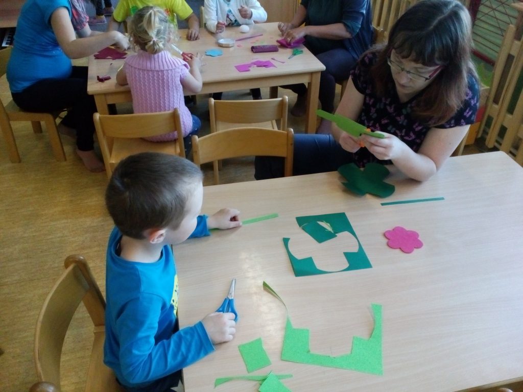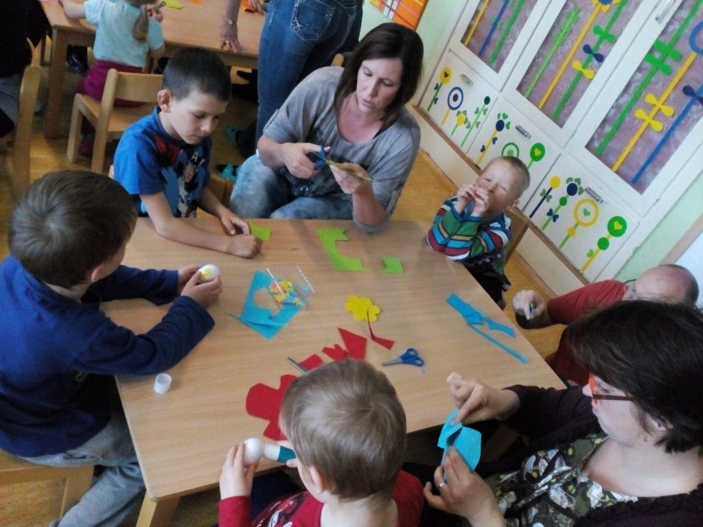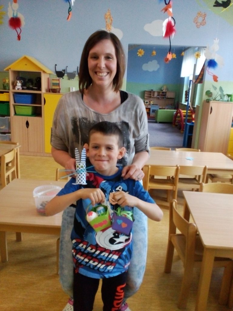 V pondělí 10. dubna jsme pozvali rodiče na velikonoční dílnu, kde si společně s dětmi vyrobili dekoraci — košík s vajíčkem. Jak se výrobky povedly vidíte v galerii i to, jak jsme v úterý slavili «červené» úterý…
