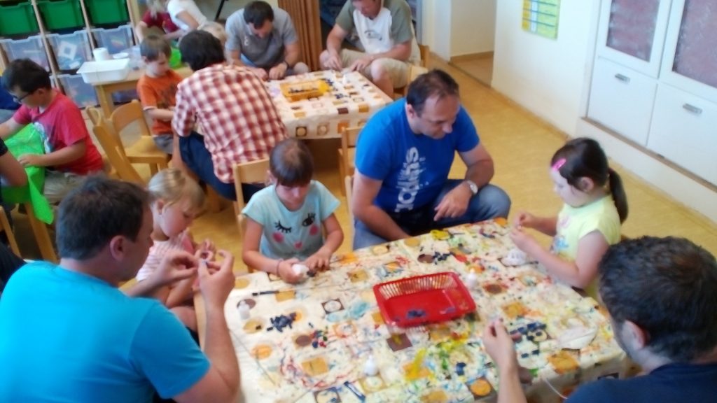 Letos jsme dílničku pojali trochu netradičně a místo maminek pozvali do školky výhradně tatínky. A že dorazli v hojném poču! Všichni se aktivně zapojili s dětmi do společného vyrábění dárečku ke Dni matek, my jim za to děkujeme a věříme, že to byla příjemně strávená chvilka.