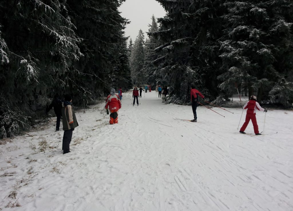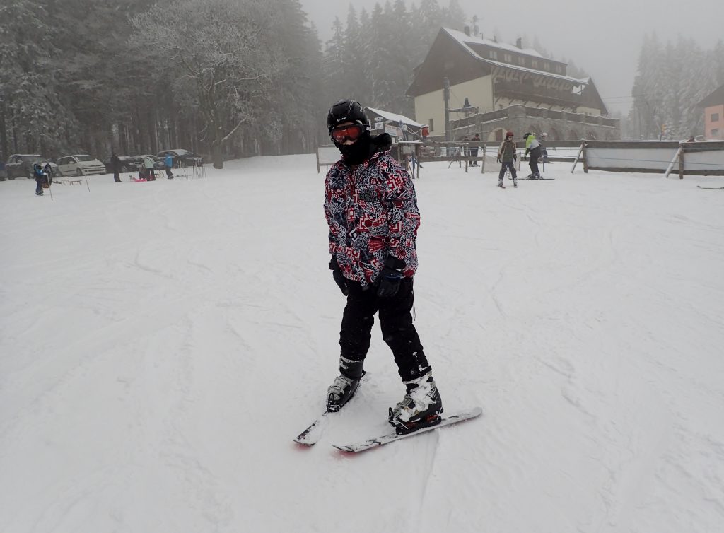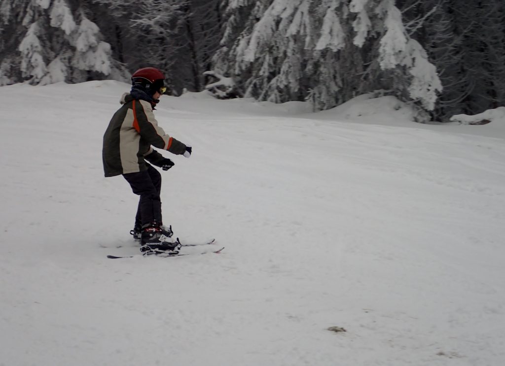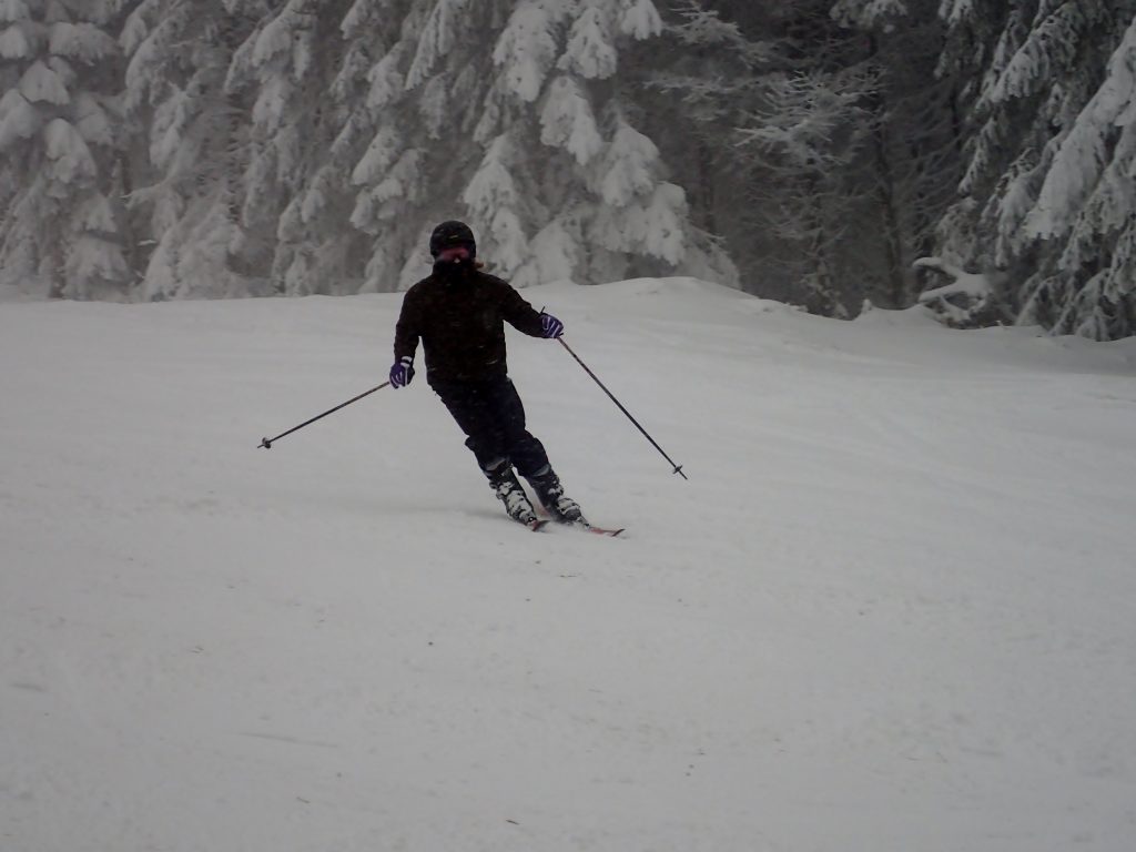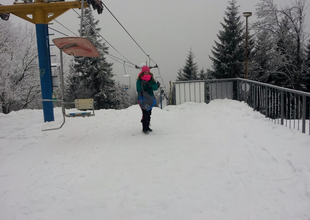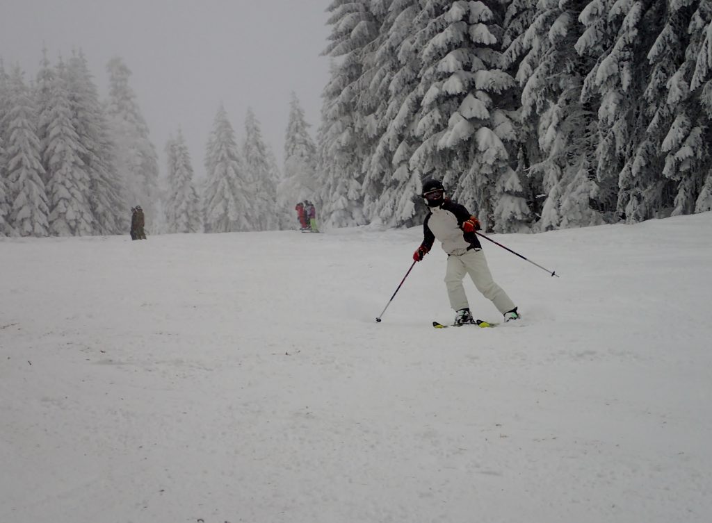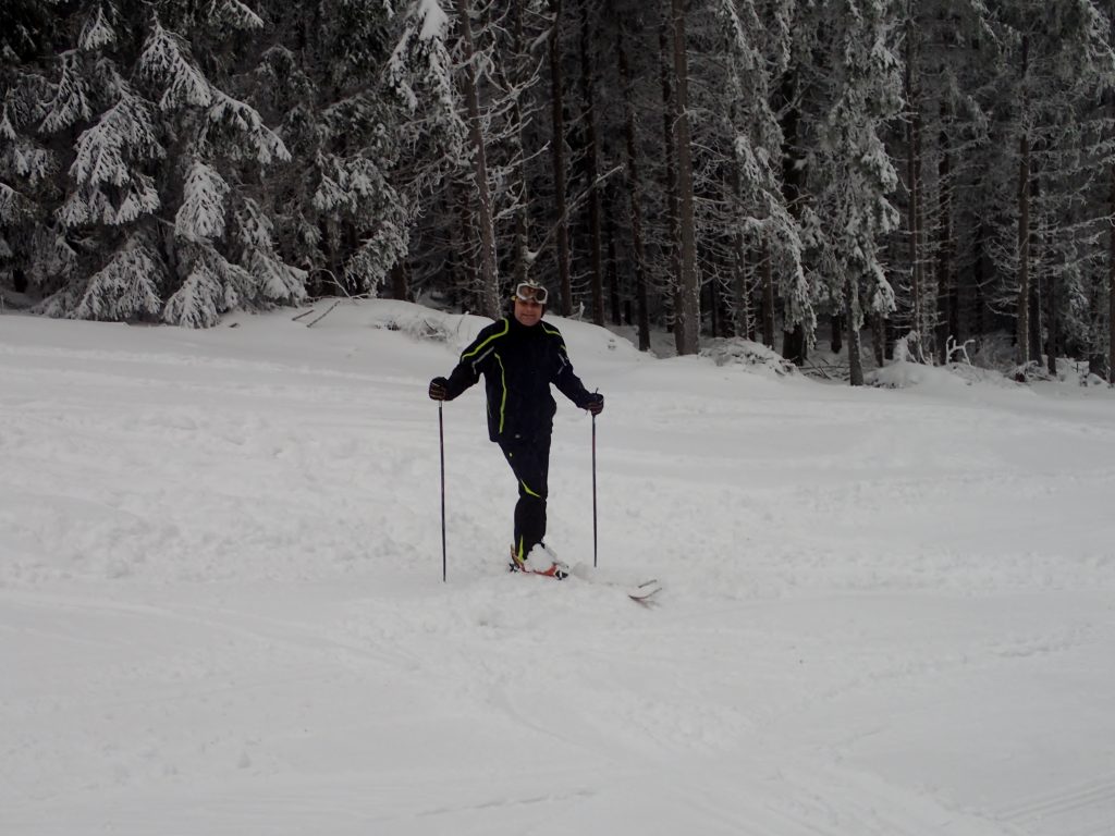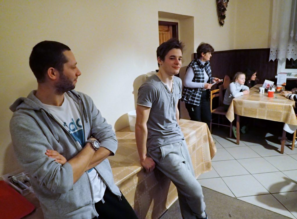 Následoval oběd a první lyžování. Ti lepší z nás jezdili rovnou dole na svahu, my ostatní jsme se nahoře snažili vyjet několik obloučků. Večer, abychom se seznámili s vrstevníky z druhé školy, jsme společně hráli hru Aktivity.