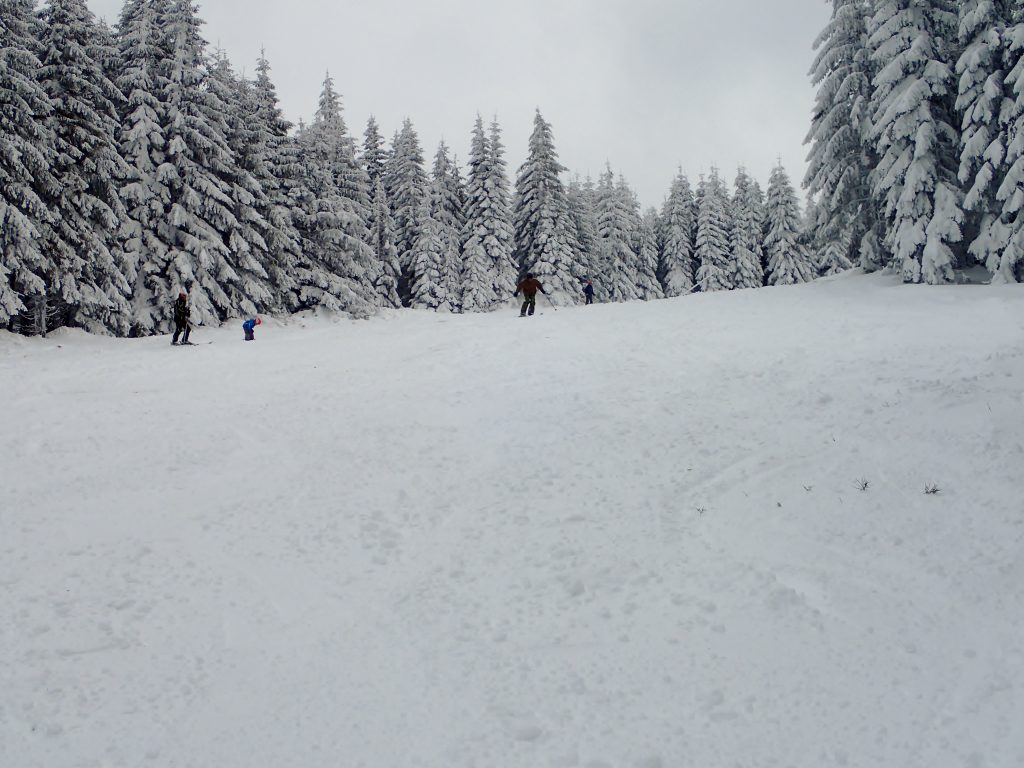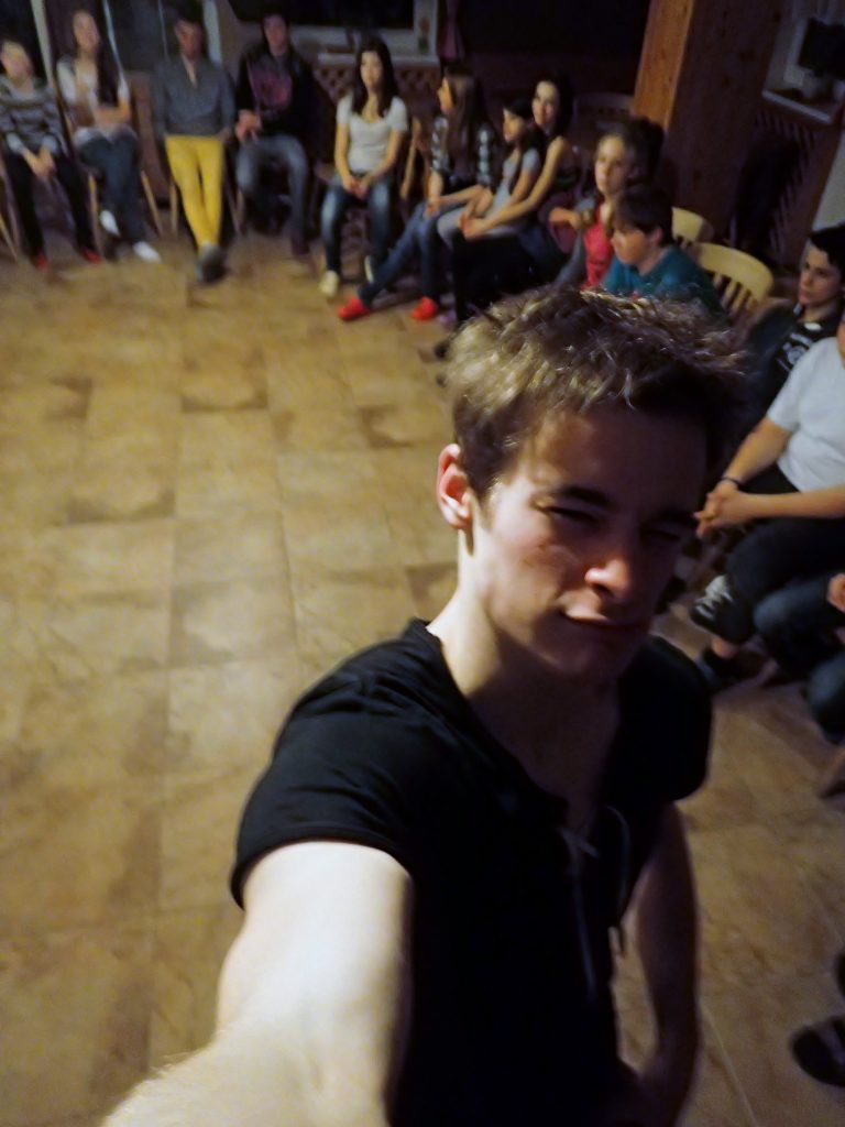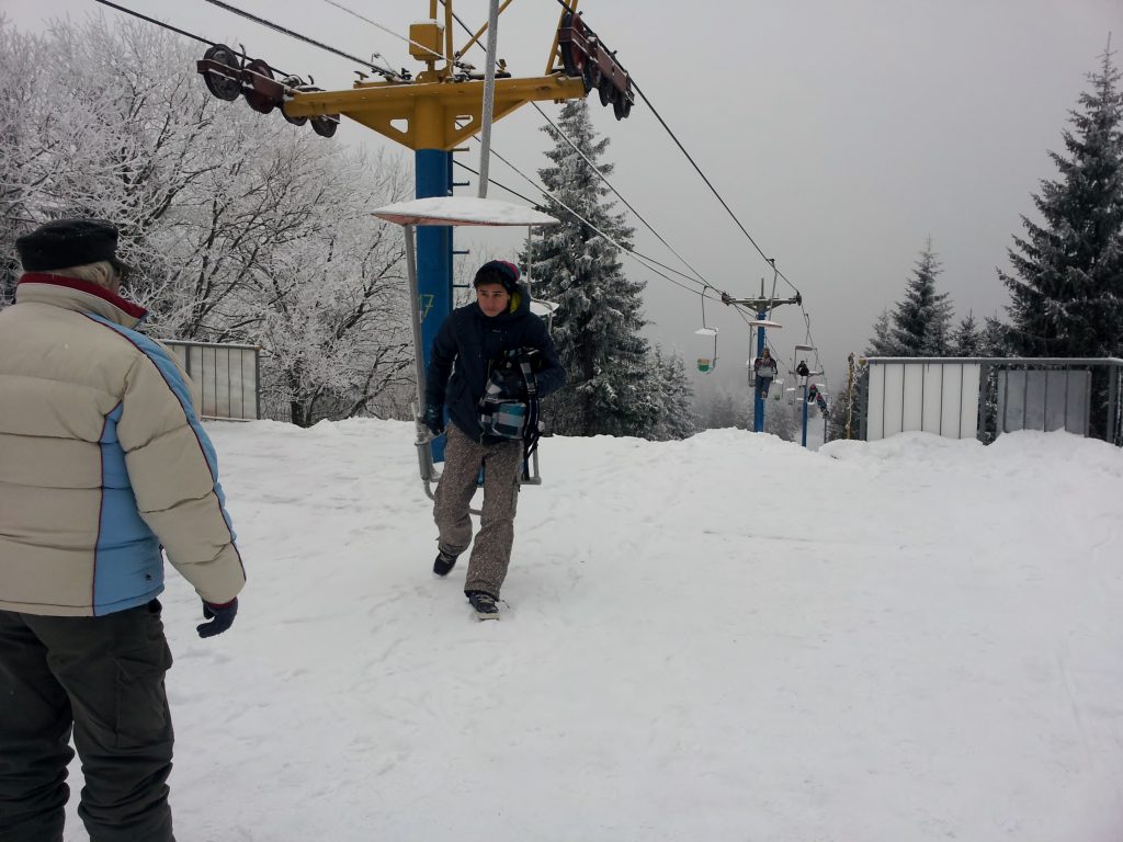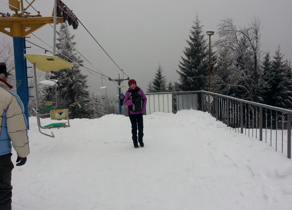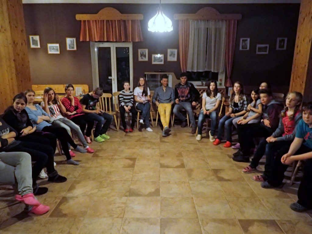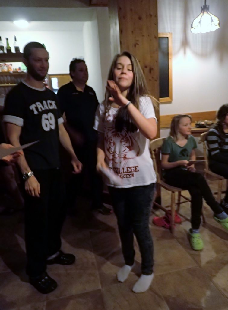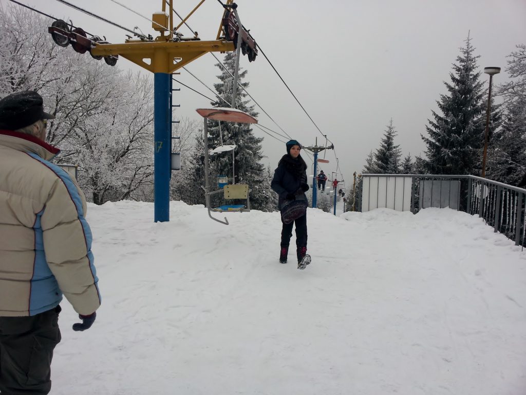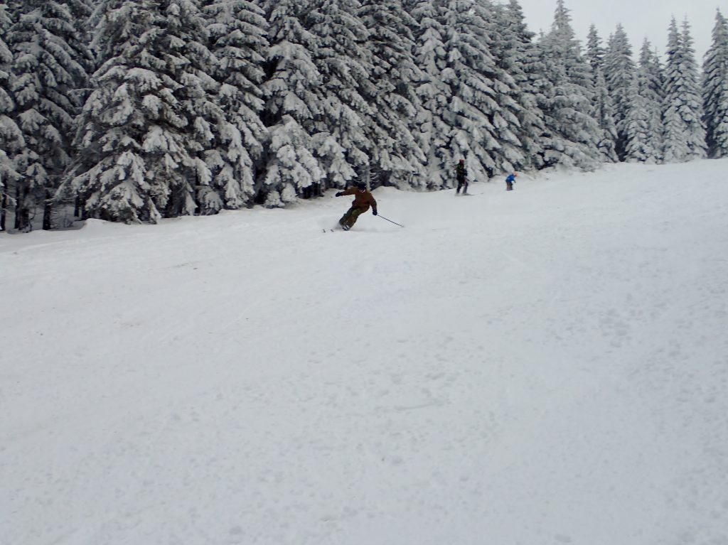 Následoval oběd a první lyžování. Ti lepší z nás jezdili rovnou dole na svahu, my ostatní jsme se nahoře snažili vyjet několik obloučků. Večer, abychom se seznámili s vrstevníky z druhé školy, jsme společně hráli hru Aktivity.