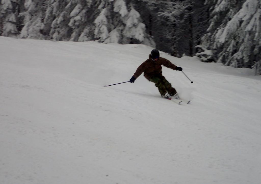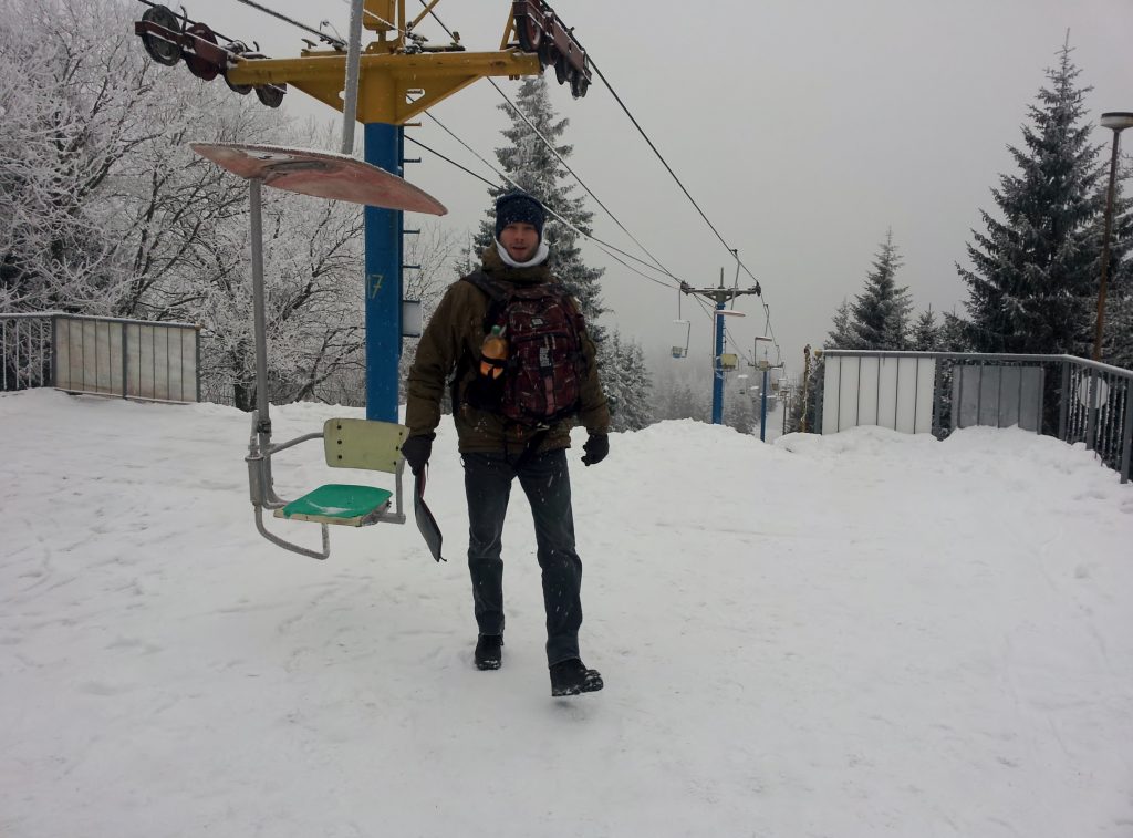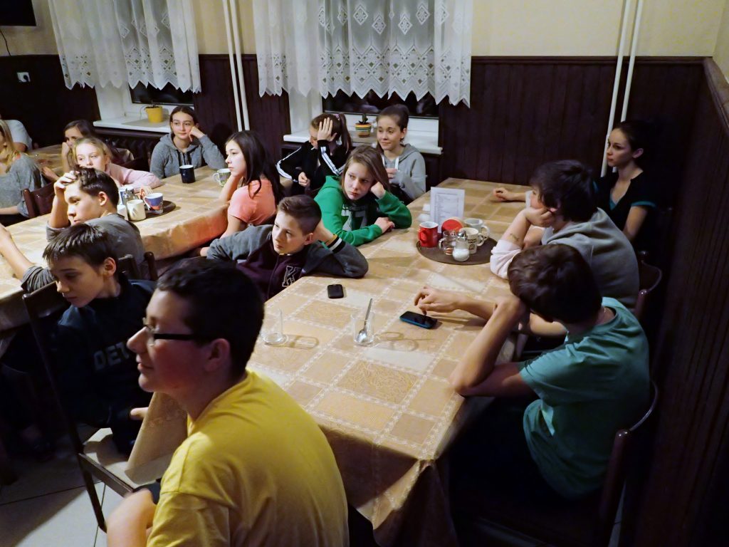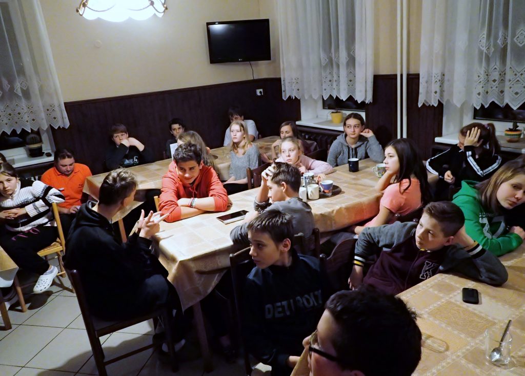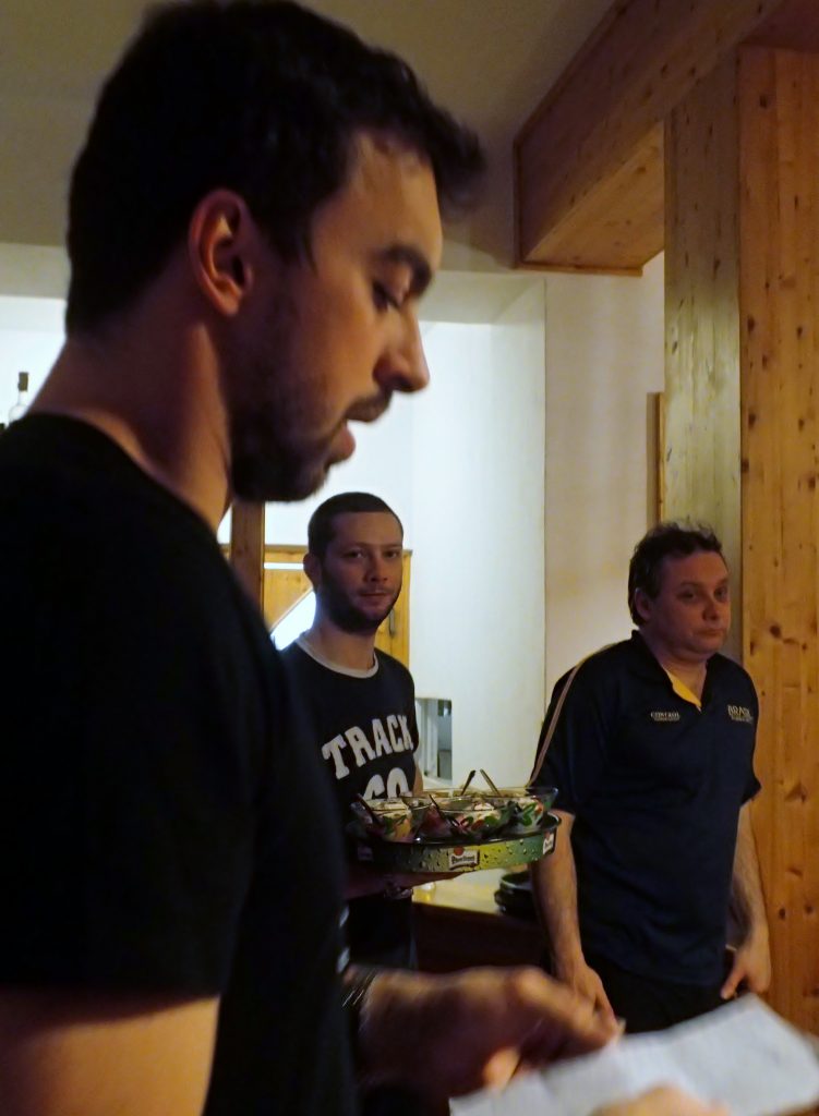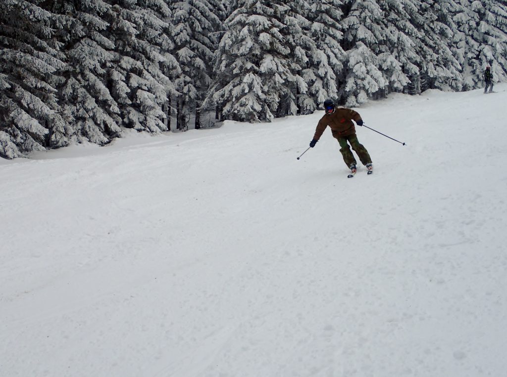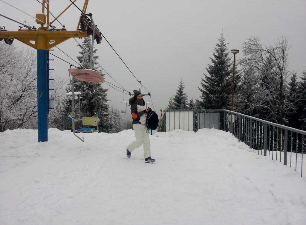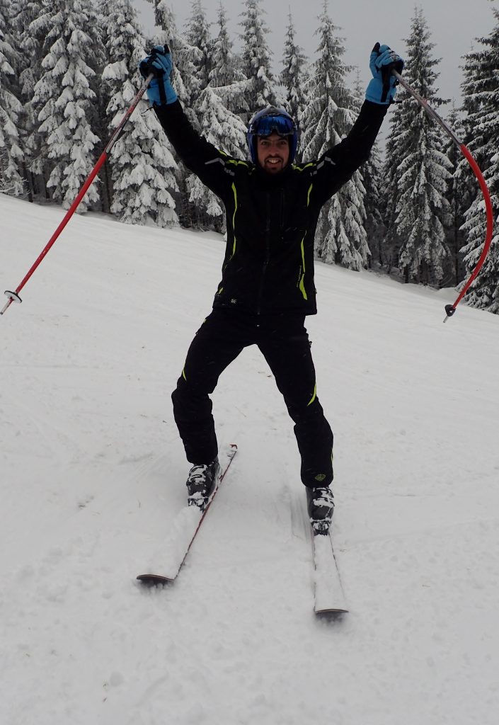 Následoval oběd a první lyžování. Ti lepší z nás jezdili rovnou dole na svahu, my ostatní jsme se nahoře snažili vyjet několik obloučků. Večer, abychom se seznámili s vrstevníky z druhé školy, jsme společně hráli hru Aktivity.