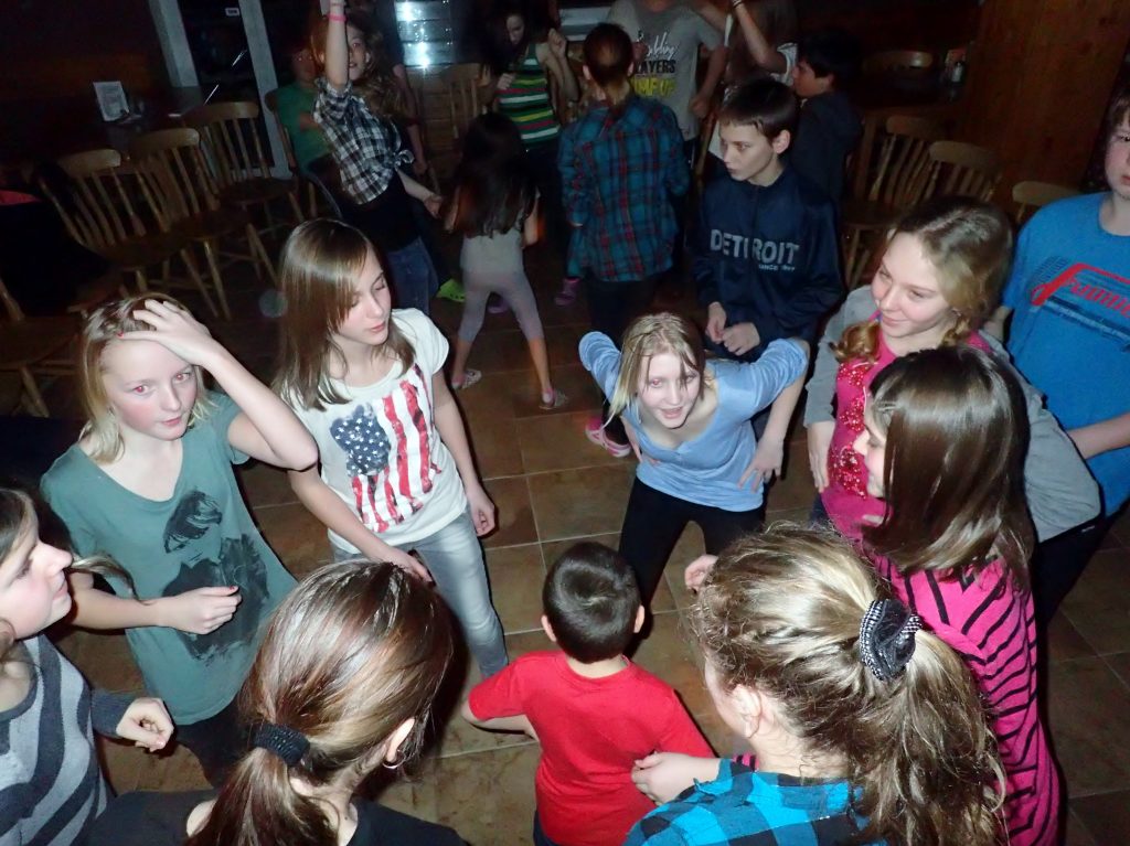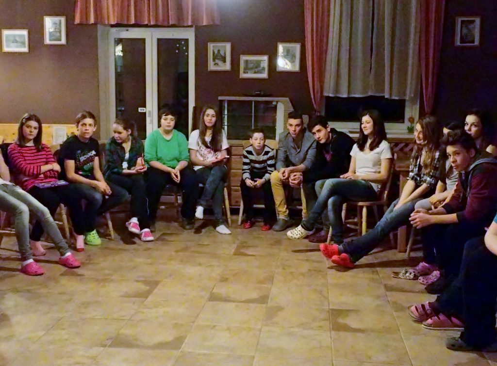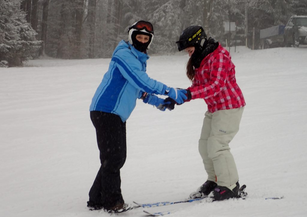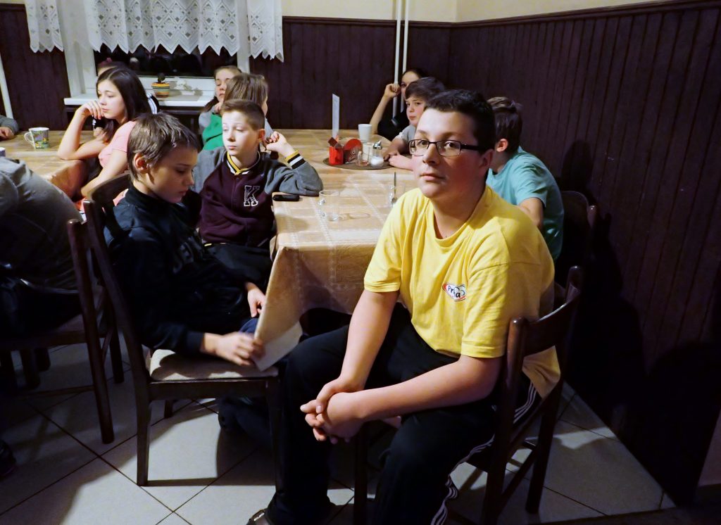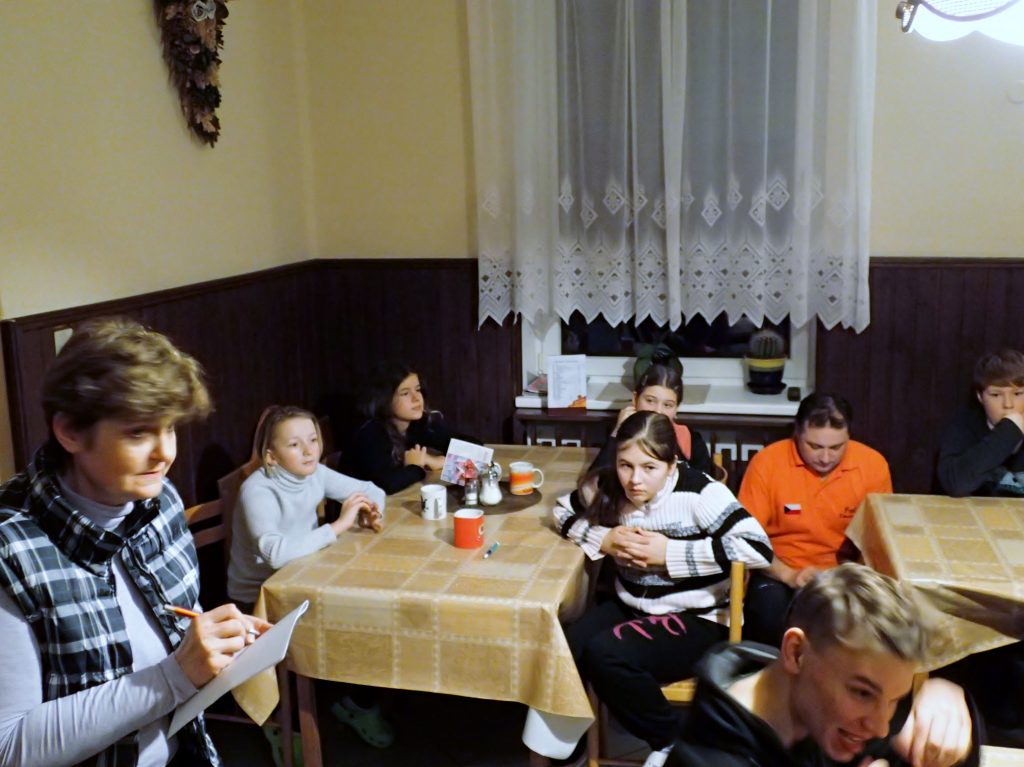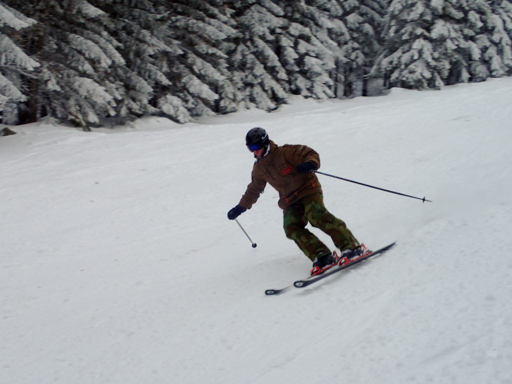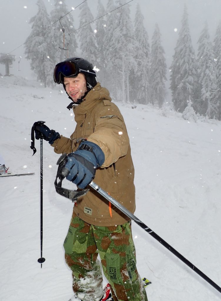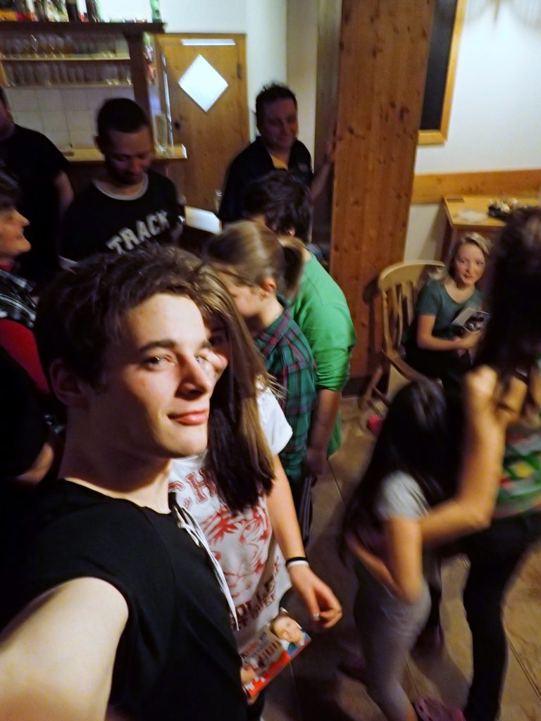 Následoval oběd a první lyžování. Ti lepší z nás jezdili rovnou dole na svahu, my ostatní jsme se nahoře snažili vyjet několik obloučků. Večer, abychom se seznámili s vrstevníky z druhé školy, jsme společně hráli hru Aktivity.