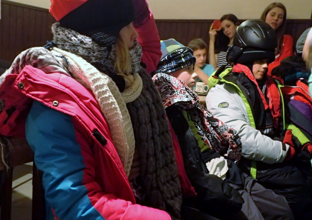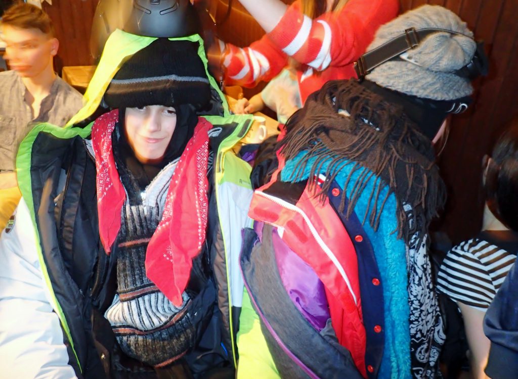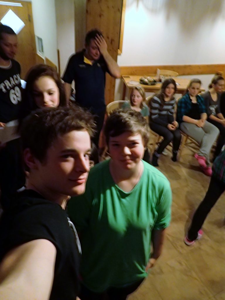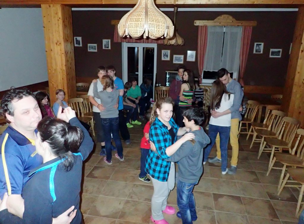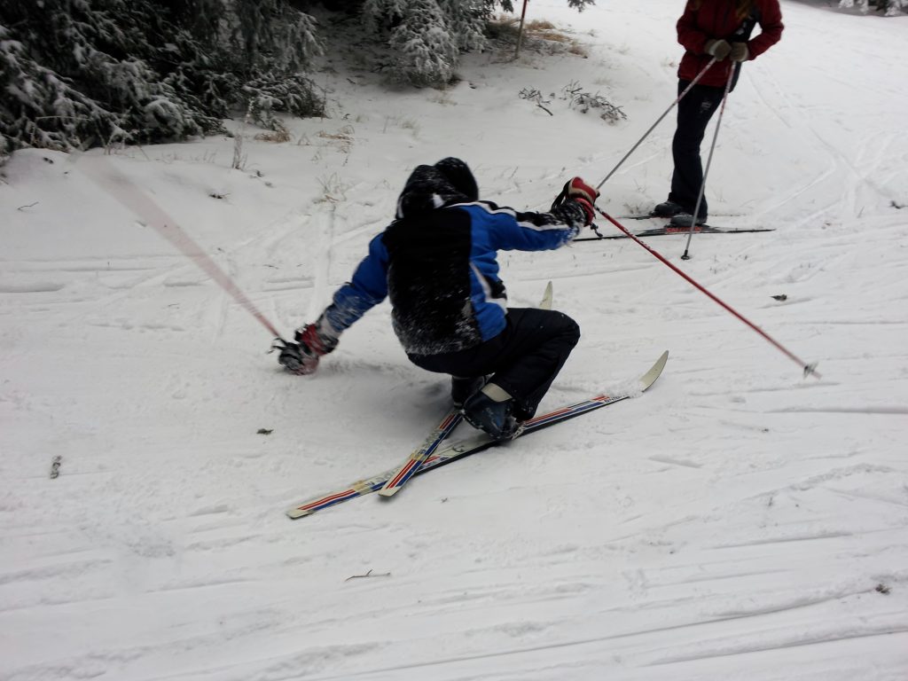 z lyžařských výcviků předchozích let a také naše pokusy o lyžování. Jako bonus nám instruktoři večer přišli ohodnotit pořádek v pokojích.