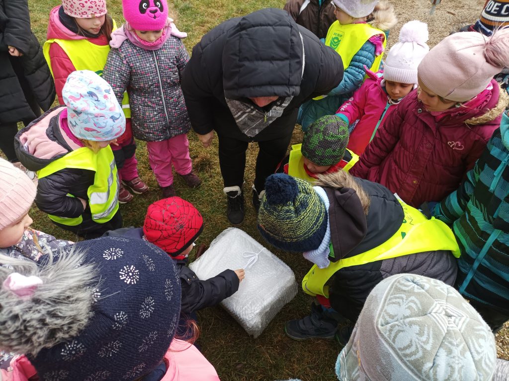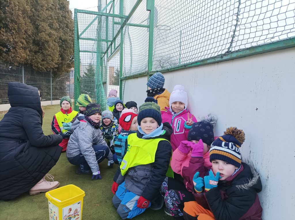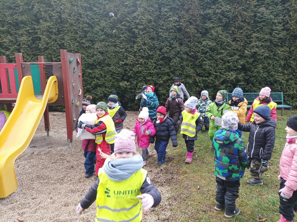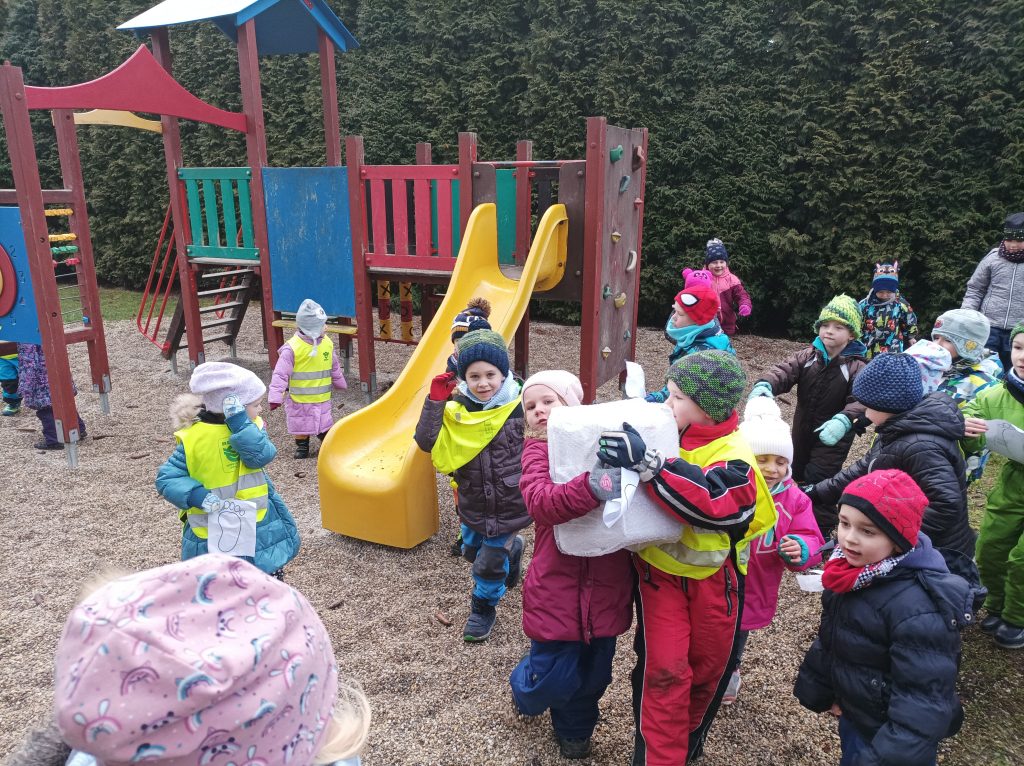 Vydali jsme se po stopách sněžného muže Yettiho. Silné a zdravé hlasivky dětí bohužel Yettiho vyděsily tak, že raději před námi utekl :-). Ve spěchu zapomněl ve své skrýži i zásoby na zimu. To dětem ovšem nevadilo a úlovek si spravedlivě rozdělily. Větrnný a mrazivý den jsme si všichni skvělě užili.