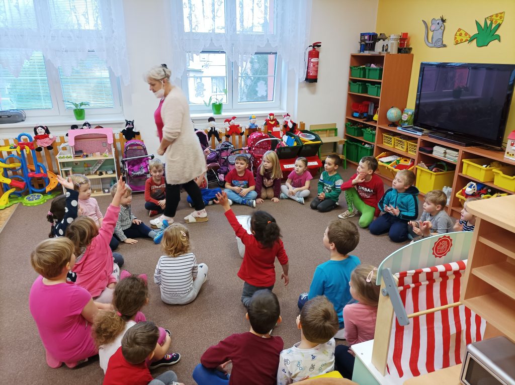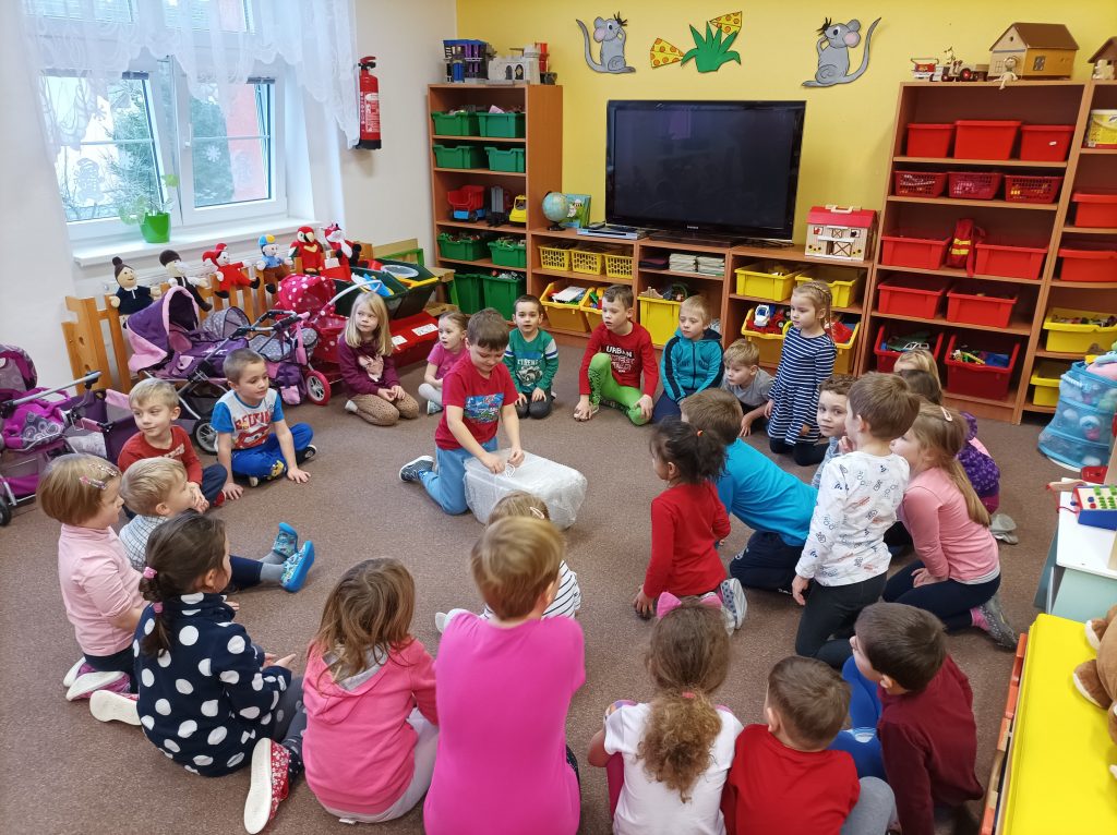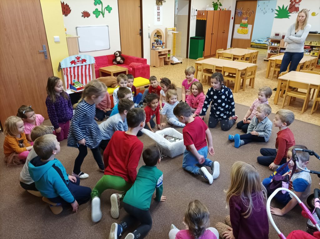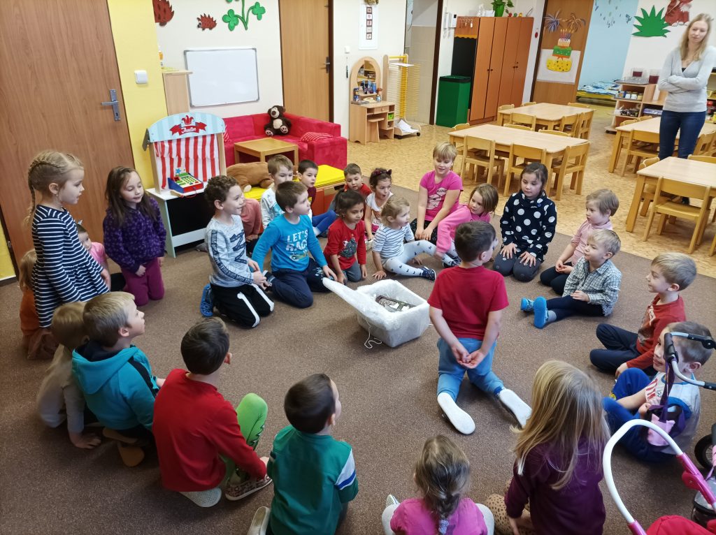 Vydali jsme se po stopách sněžného muže Yettiho. Silné a zdravé hlasivky dětí bohužel Yettiho vyděsily tak, že raději před námi utekl :-). Ve spěchu zapomněl ve své skrýži i zásoby na zimu. To dětem ovšem nevadilo a úlovek si spravedlivě rozdělily. Větrnný a mrazivý den jsme si všichni skvělě užili.