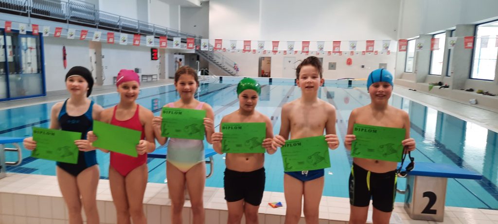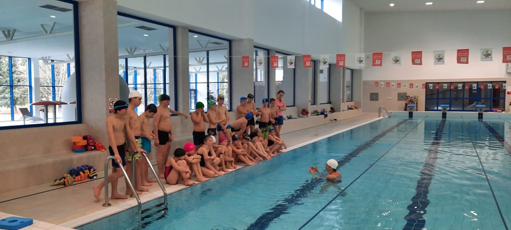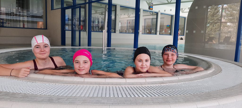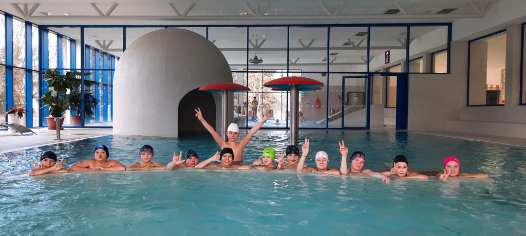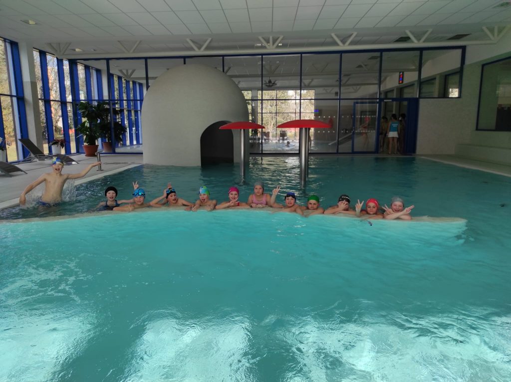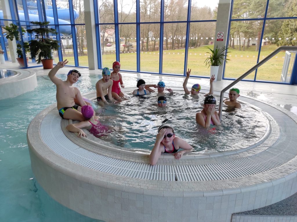 Poslední únorový týden patřil plaveckému výcviku. Žáci se rozdělili do tří družstev dle plavecké zdatnosti. Od pondělí do středy se všichni zdokonalili v plaveckých stylech: prsa, kraul, znak a splývání. Někteří si cvičili i potápění pro kruh či puk. Ve čtvrtek se konaly plavecké závody a v pátek jsme jednu hodinu věnovali vodním radovánkám na tobogánu či ve vířivce.