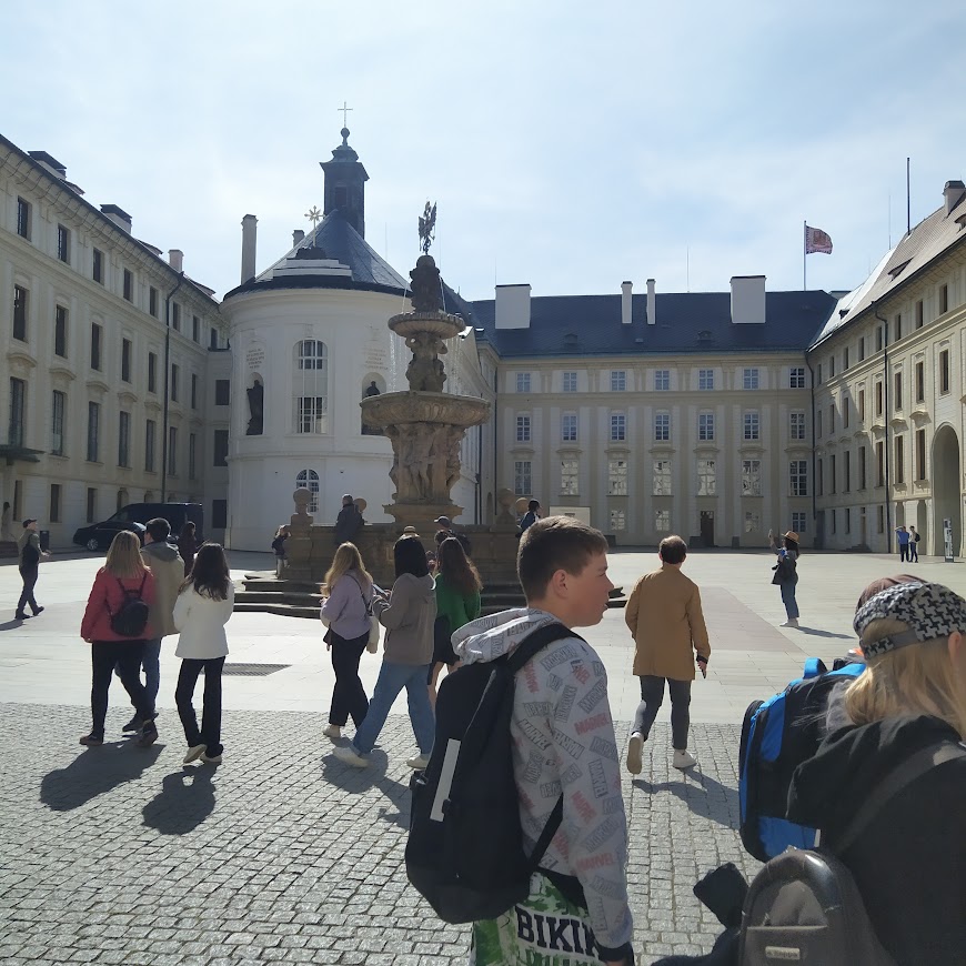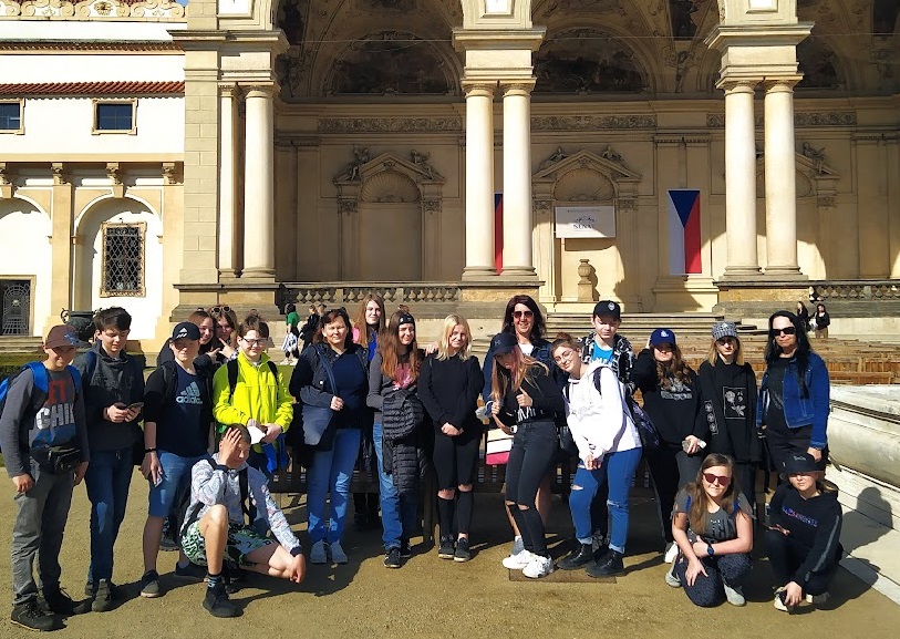 Dne 13. 4. si žáci 7. ročníku udělali výlet do Prahy. Po příjezdu na hlavní vlakové nádraží v Praze nás vyzvedl průvodce a metrem a tramvají nás dopravil na Pražský hrad, kde začala prohlídka. Předtím jsme se ještě zastavili ve Valdštejnské zahradě, kde jsme si prohlédli umělé krápníky, páry výrů, pávy a především Valdštejnský palác, sídlo Senátu ČR. Na Pražském hradě jsme navštívili Královskou zahradu s Letohrádkem Sv. Anny, Zpívající fontánou, Herkulovou kašnou, Míčovnou a Prezidentským domem. Prohlédli jsme si areál Pražského hradu, všechna nádvoří i paláce. Byli jsme přítomni i v době střídání stráží. Z vyhlídky Pražského hradu byl překrásný výhled na celé město, Petřín s rozhlednou i malostranské podhradí. Poté jsme sestoupili Nerudovou ulicí na Malostranské náměstí. V Nerudově ulici jsme si prohlédli dům U Dvou slunců, kde Neruda psal Malostranské povídky. Na Malostranském náměstí prohlídka skončila, udělali jsme si krátkou přestávku v MC Donaldu. Nakonec jsme přešli přes Karlův most směrem k Václavskému náměstí a ulicí Na Příkopě jsme se vydali do Palladia, kde jsme měli krátký rozchod. Více si můžete prohlédnout ve fotogalerii