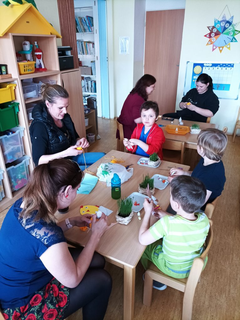 V dubnu se uskutečnilo velikonoční vyrábění rodičů s dětmi. Strávili jsme příjemné odpoledne a děti si domů odnesly krásné výrobky. Všem se moc povedly. Děkujeme maminkám i velice trpělivým tatínkům, kteří své děti doprovodili.