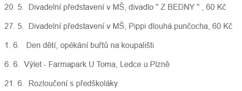 PLÁNOVANÉ AKCE NA KVĚTEN / ČERVEN