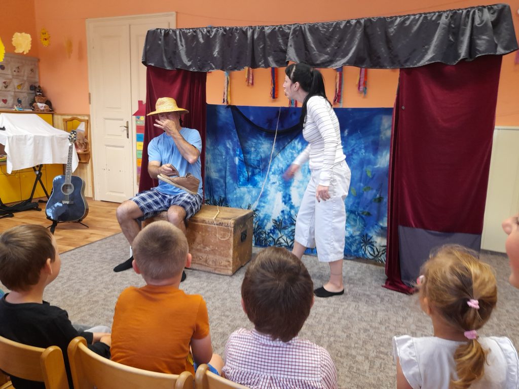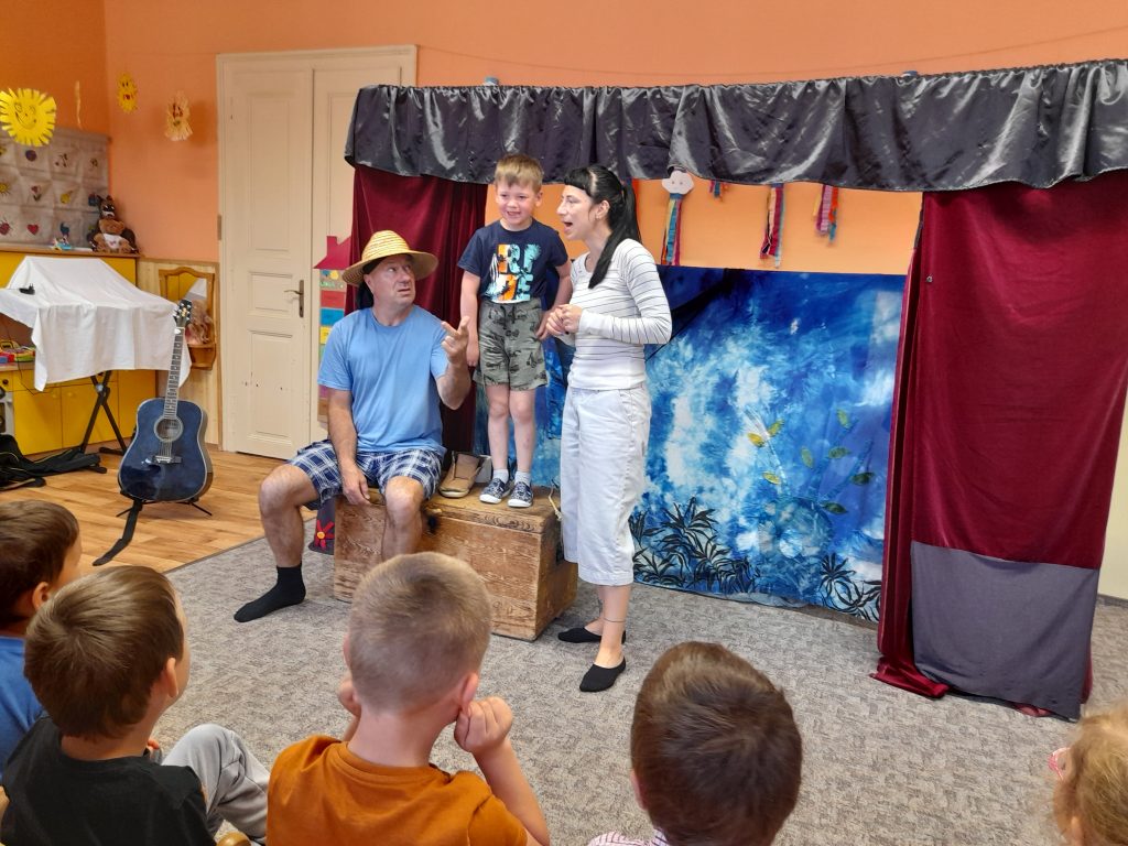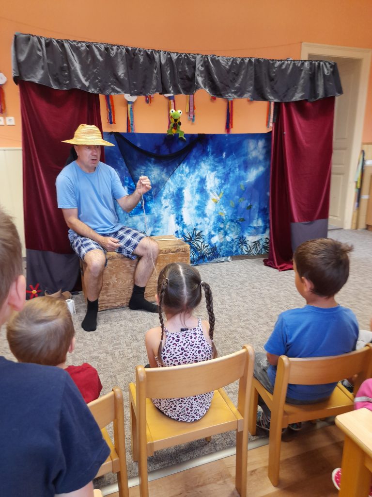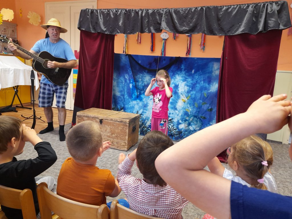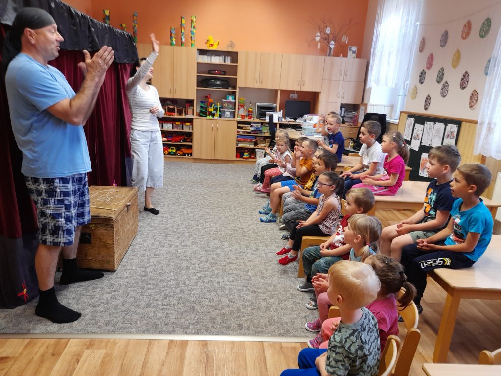 Dne 20.5.2022 k nám opět přivítalo divadlo Z Bedny, tentokrát s pohádkou O zlaté rybce, děti si společně zazpívaly a dokonce se i osobně účastnily představení. Děkujeme mockrát za velice povedené ztvárnění dobře známé pohádky, moc jsme si to užili 🙂