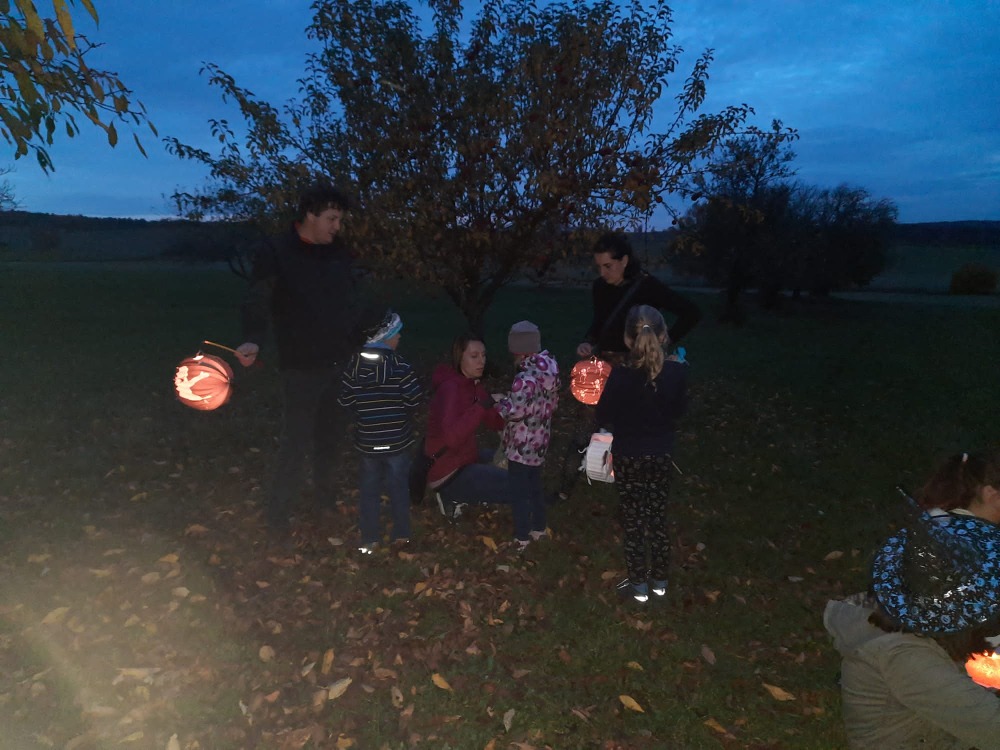 Jako již tradičně i letos jsme si spolu oslavili Dušičky lucerničkovým průvodem. Počasí se nám v sobotu 29.10. vyvedlo na jedničku a tak jsme si mohli užít podvečer a večer plný duchů, krásných vydlabávaných dýní, strašidel a odvážné děti se mohly vydat i na stezku odvahy, na jejímž konci na ně čekala sladká odměna. Večerem se linula vůně táboráku a pečených buřtíků. Celý průvod od naší školky až na louku za vesnicí jsme si všichni náramně užili. Tímto také děkujeme místním hasičům, kteří dbali na naši bezpečnost v průvodu a připravili pro nás ohně a dřevo na opékání. A děkujeme i Vám všem zúčastněným a budeme se těšit opět na příští rok