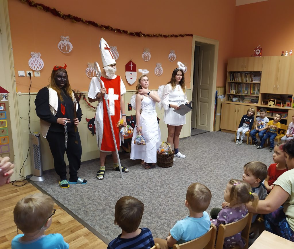 Ani na naše dětičky Mikuláš, čertík a anděl nezapomněli a poctili nás 5. prosince svojí návštěvou. Za hezkou písničku nebo básničku rozdávali balíčky plné dobrot. A že máme samé hodné a šikovné děti, přišel čertík letos zkrátka a nikoho si neodnesl.