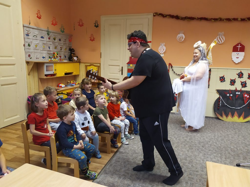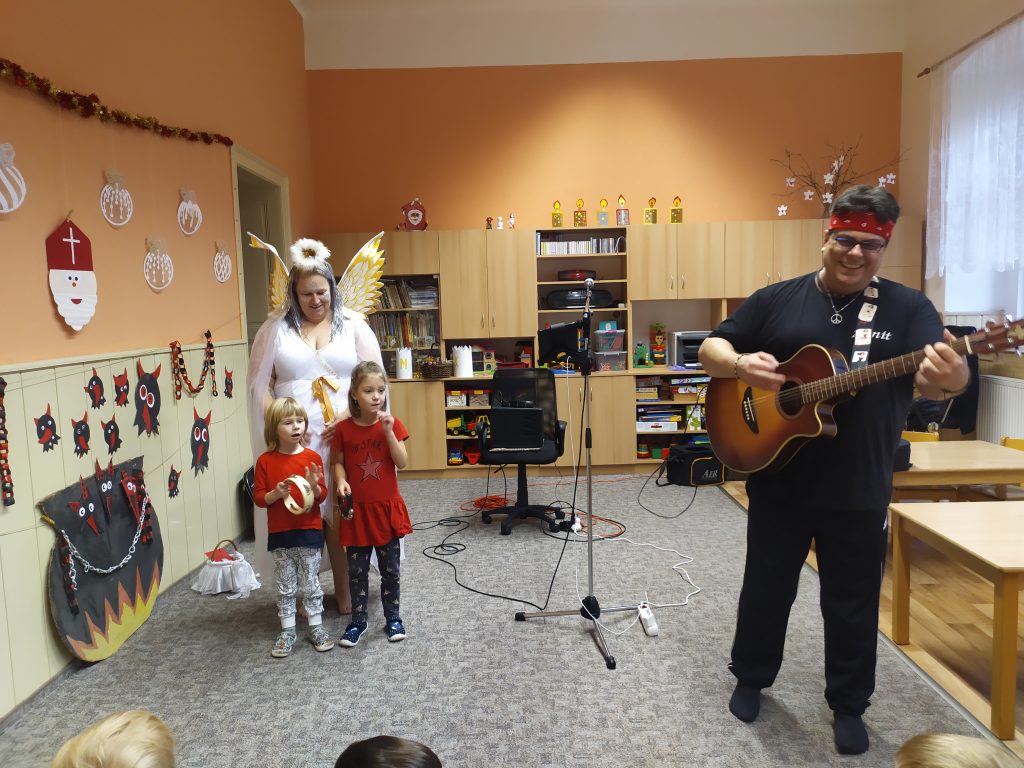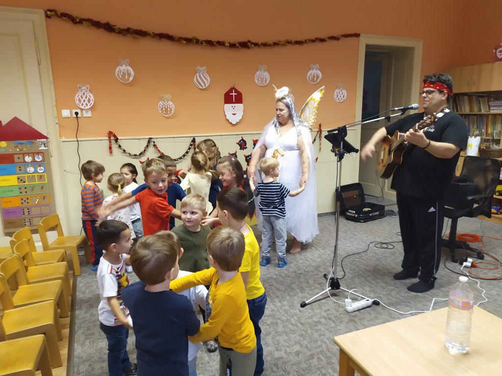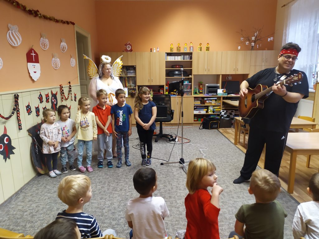 Přesně v den svátku sv. Mikuláše 6.12. jsme měli v naší školce vzácnou návštěvu. Se svým hudebním vystoupením SETKÁNÍ S VÁNOCEMI nás navštívil známý kytarista pan Jiří Fryč. Vystoupení bylo moc krásné, plné pozitivní nálady a koled. Přiletěl za námi i andílek s andělským dopisem a rozdal dětem bonbónky. Při koledě Ježíšku, panáčku si děti zahrály na hudební nástroje a samy se tak aktivně zapojily do vystoupení. Moc jsme si to užili, zazpívali, zatancovali a už jsme těm nejkrásnějším svátkům v roce zase o kousek blíž.