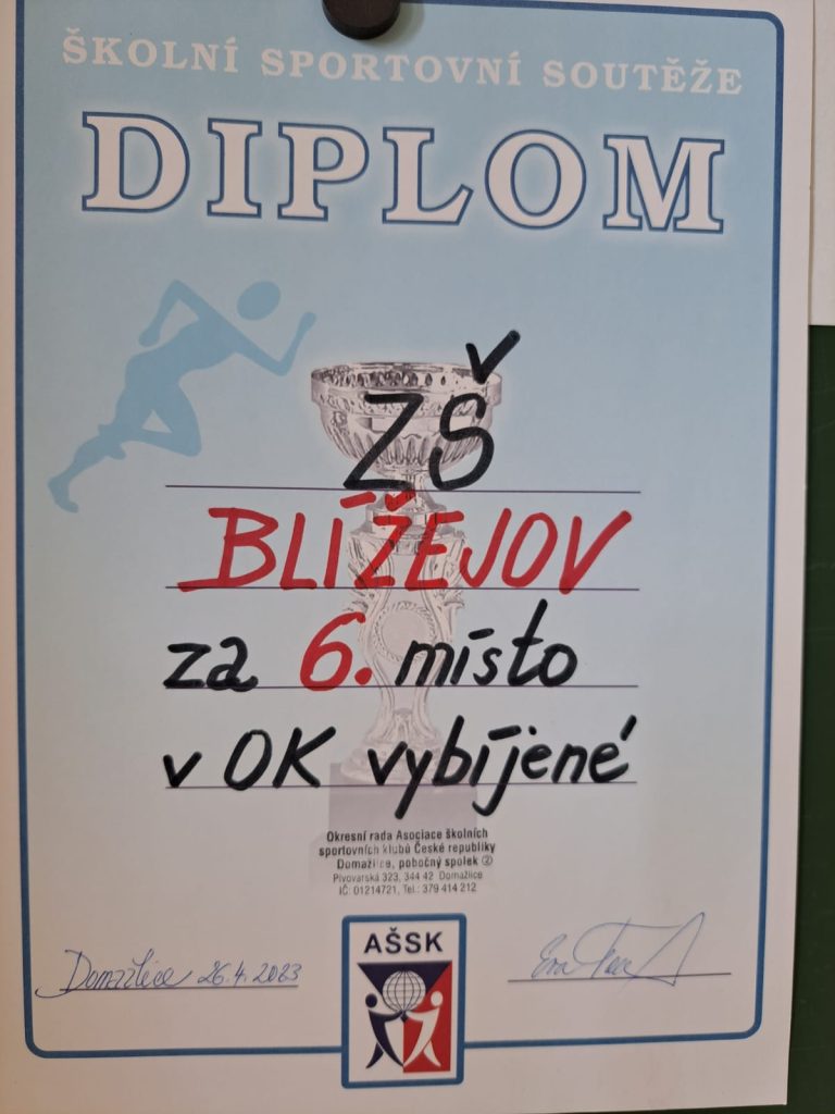 Ve středu 27.4. se žáci zúčastnili turnaje ve vybíjené v Domažlicích, kde vybojovali 6. místo.