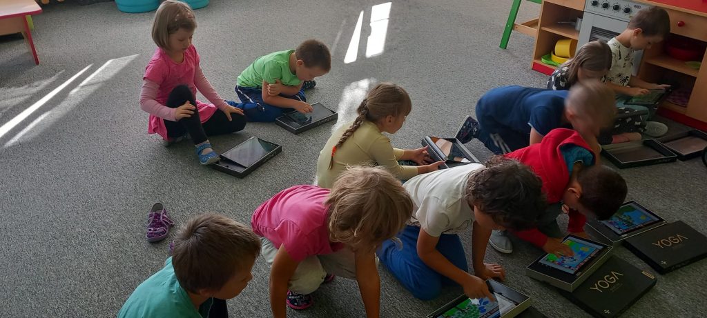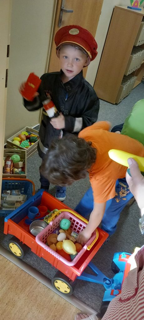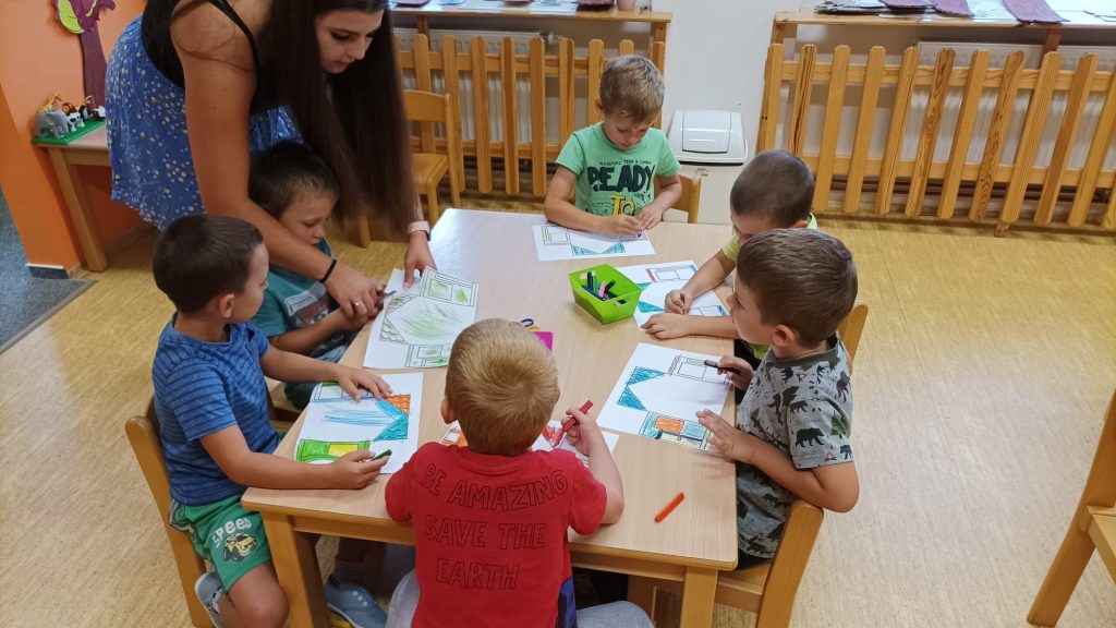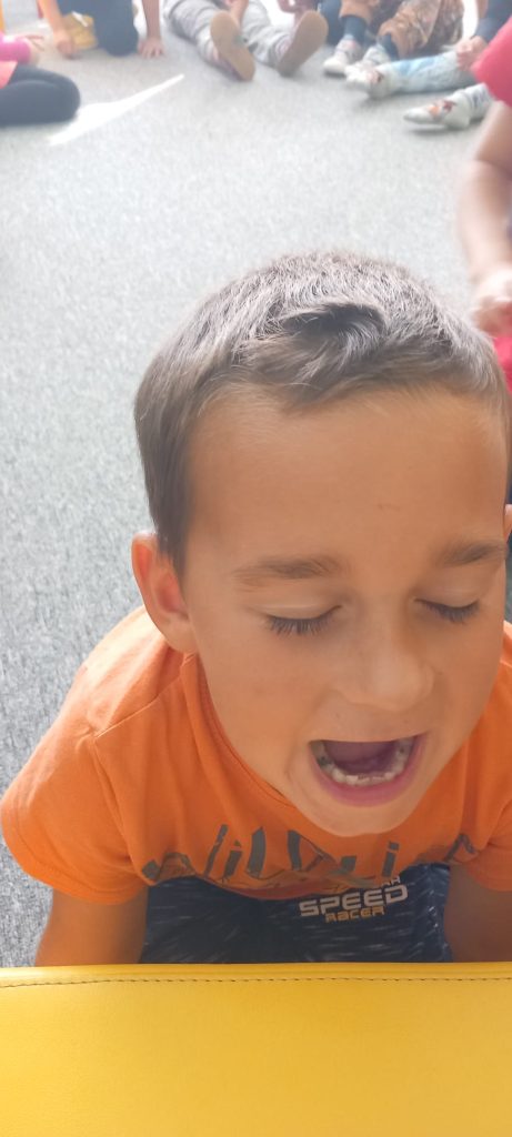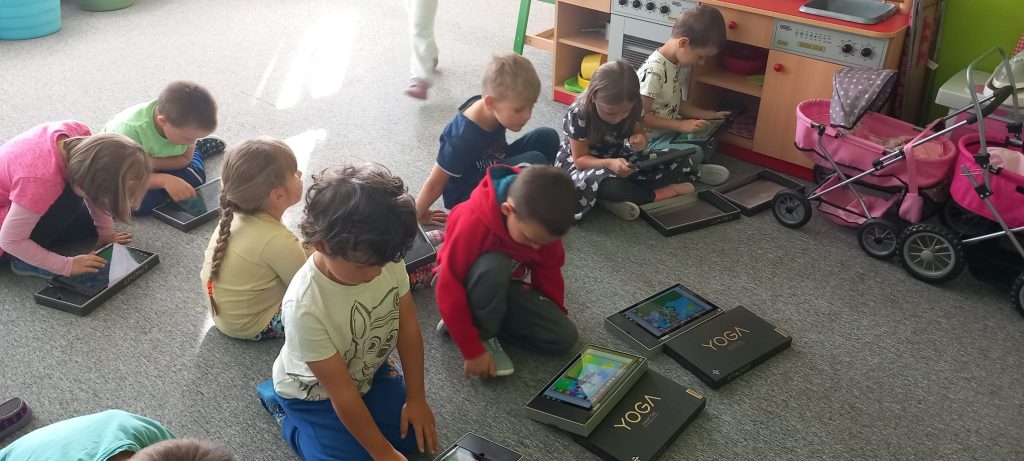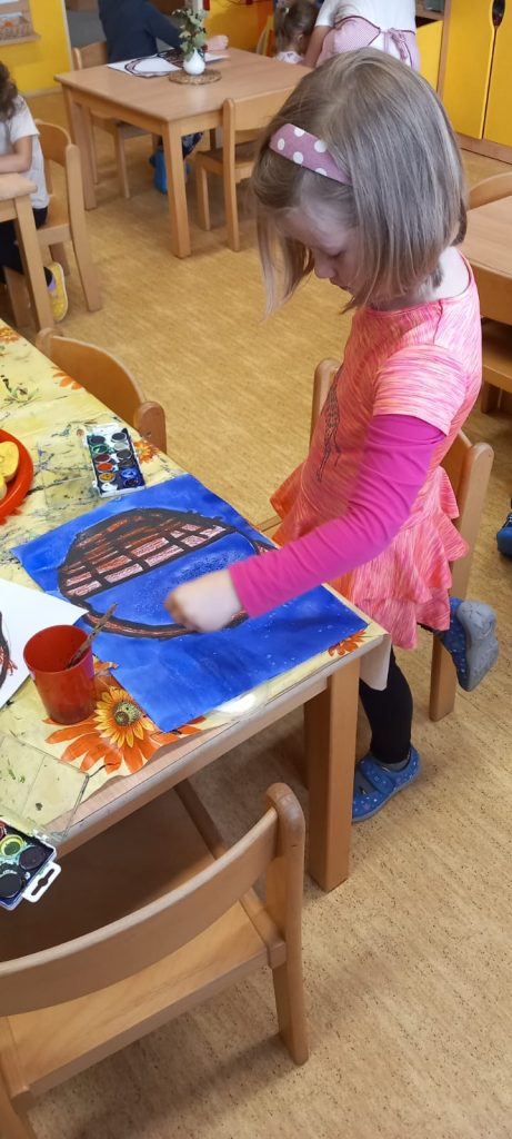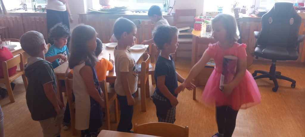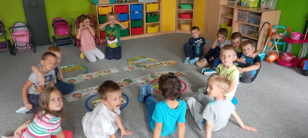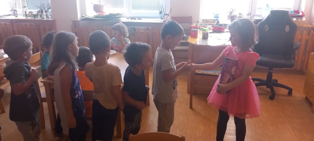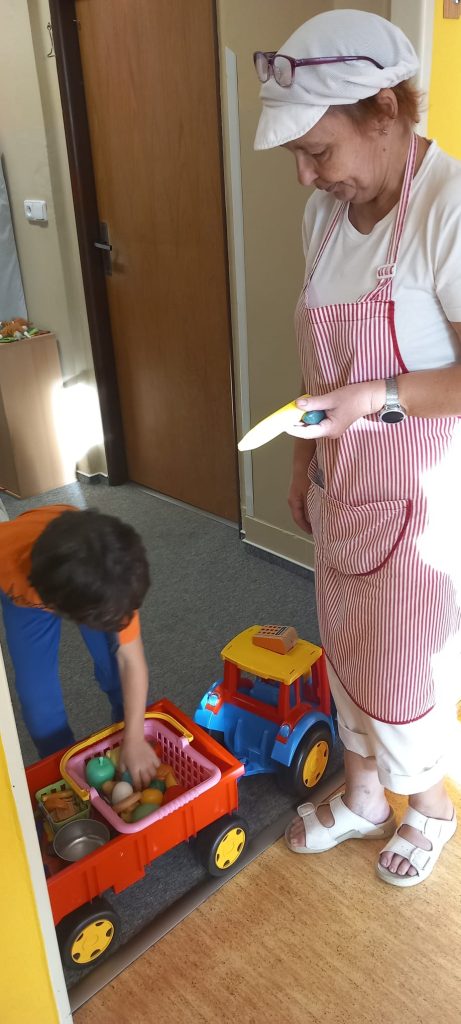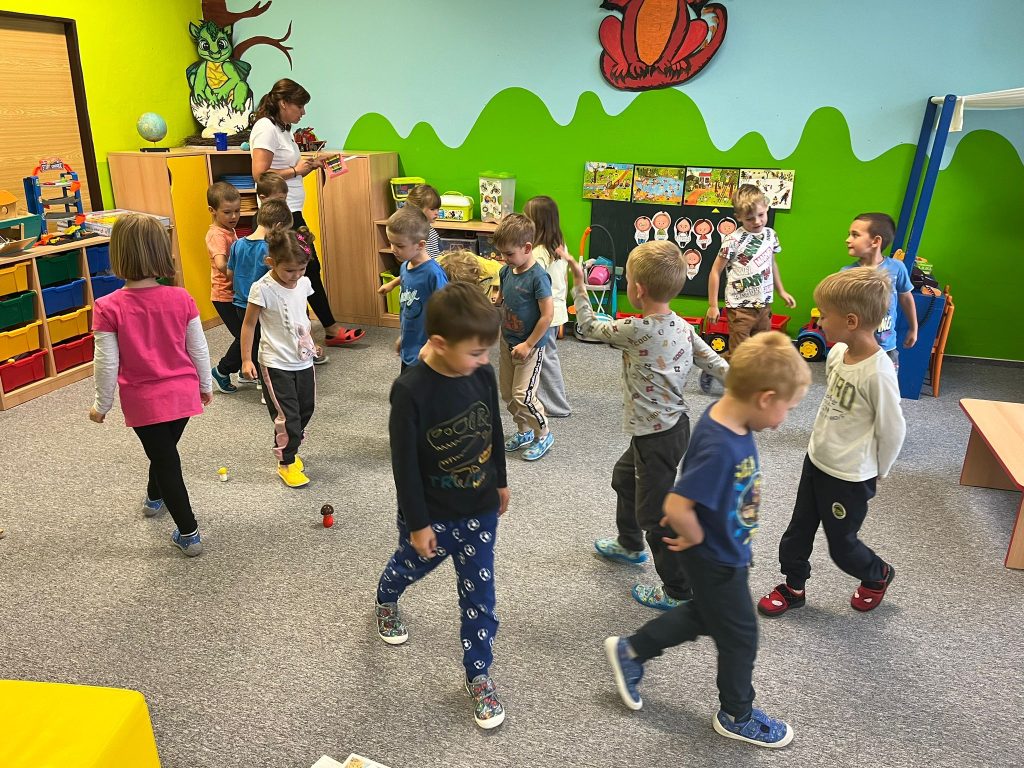 Prohlídli jsme si školu, ředitelnu, kuchyň, jídelnu i tělocvičnu. Postavili jsme školku a zjistili kam co patří. Také malá ukázka ranních her.