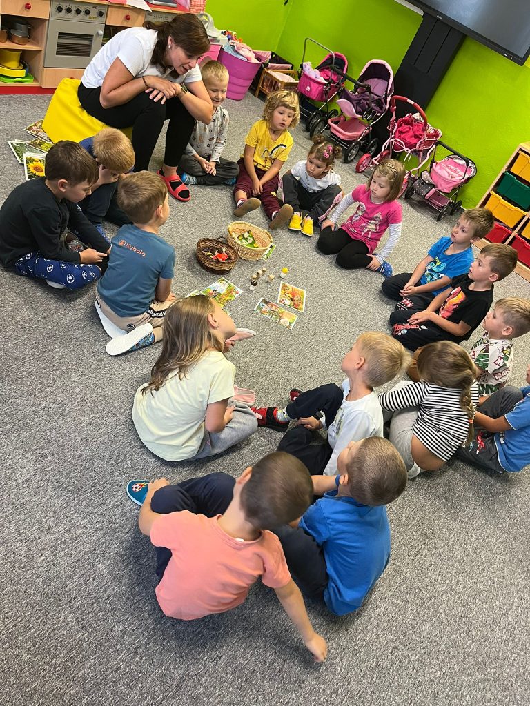 Jak to vypadá na poli? Práce na poli, poznáváme různé druhy zeleniny. Také jsme poznávali houby v lese.
