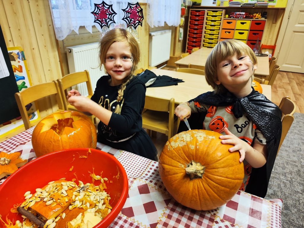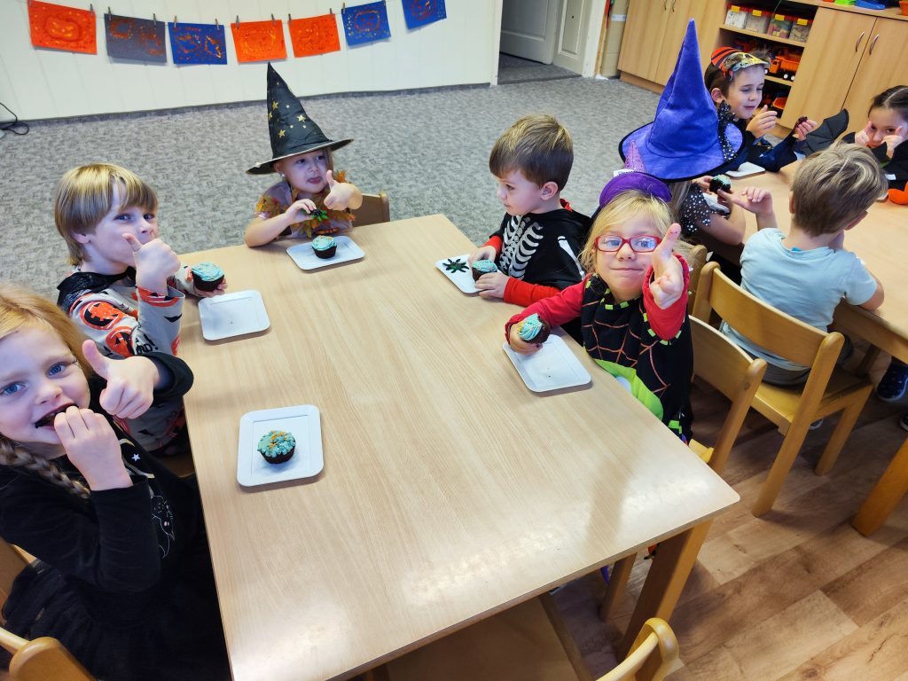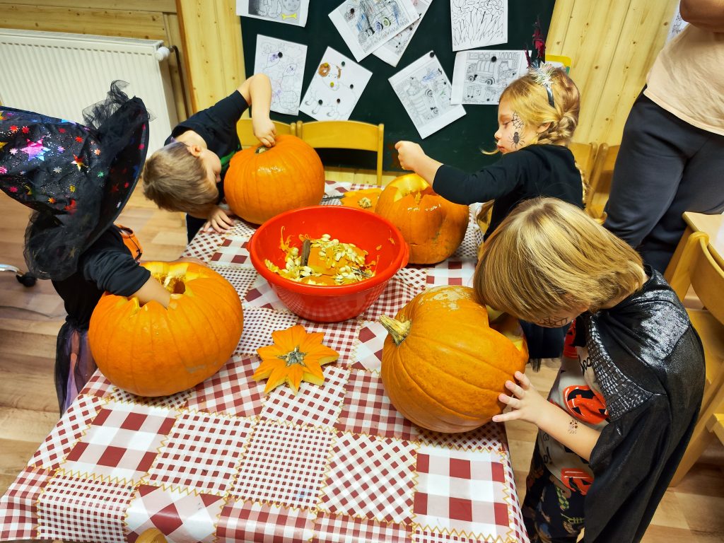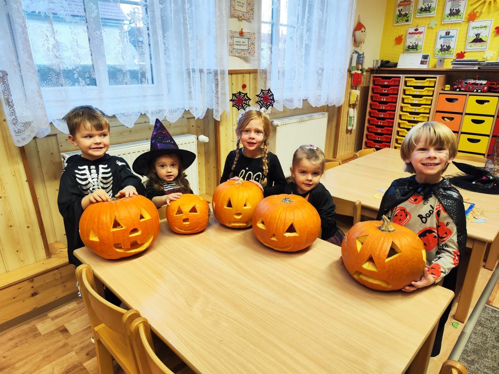 Halloween jsme oslavili, dýně jsme si vydlabali, strašidelně jsme si zasoutěžili i zatancovali, nachystali jsme si výzdobu na lampiónový průvod, strašidelné téma nás provedlo i výtvarnou výchovou a užili jsme si halloweenskou party, na které se podávaly ty nejvybranější dobroty…. zkrátka moc jsme si toto období užili a tak to má být:-)