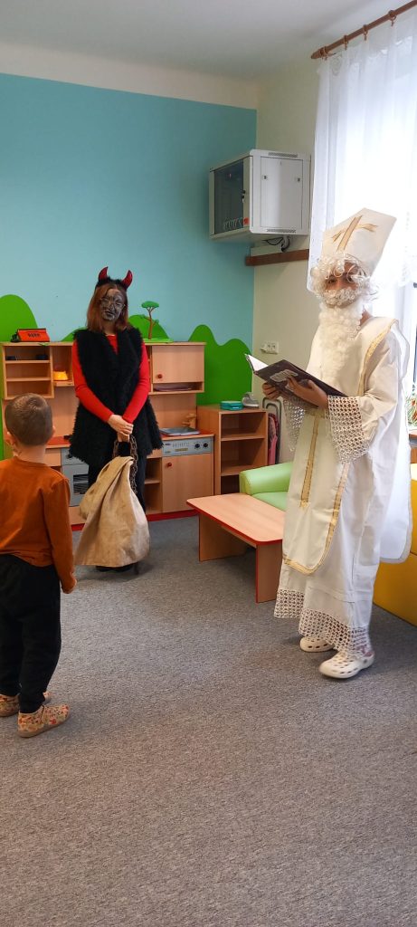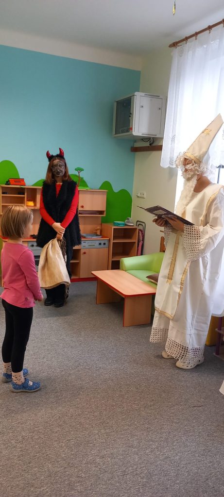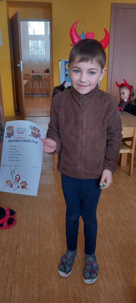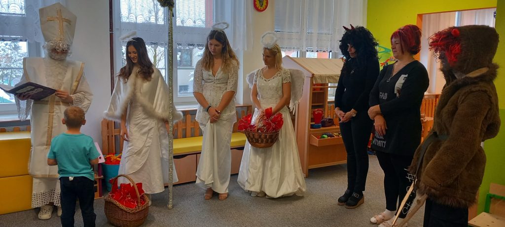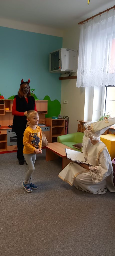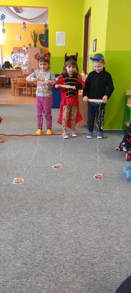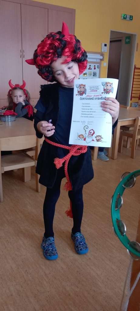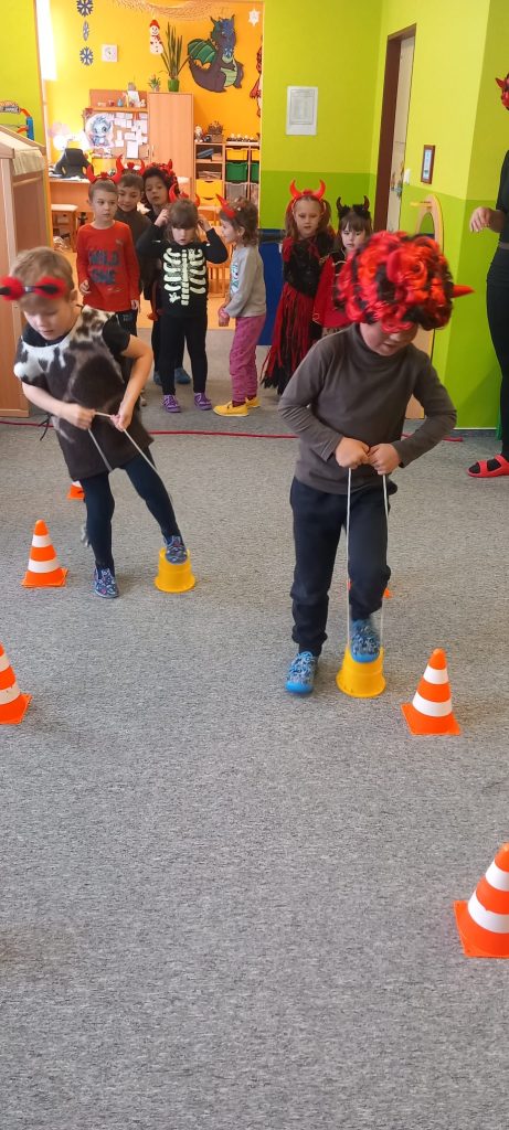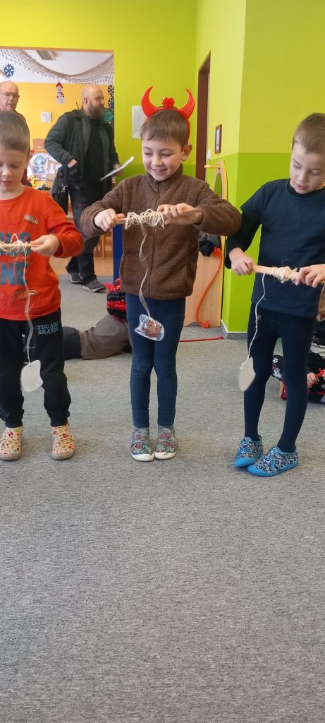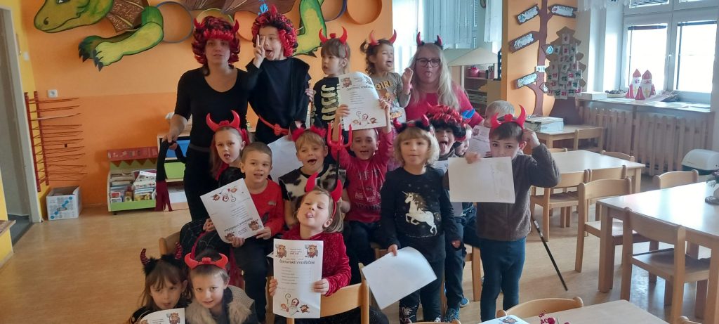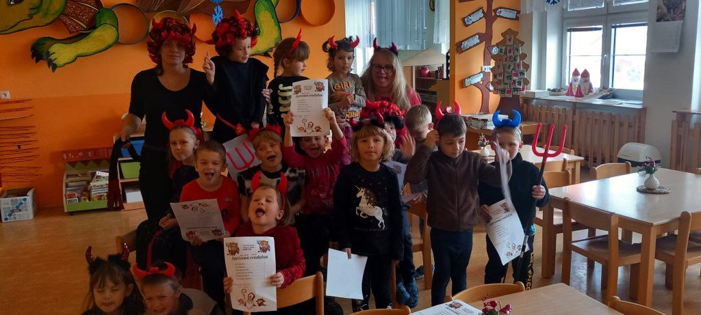 Uspořádali jsme si dopoledne plné her a soutěží. Chodili jsme s kopytem, nosili zlobivé děti v pytli, přenášeli horké brambory…a samozřejmě nechyběla návštěva z pekla a nebe.