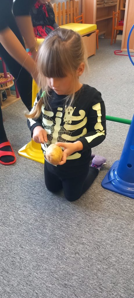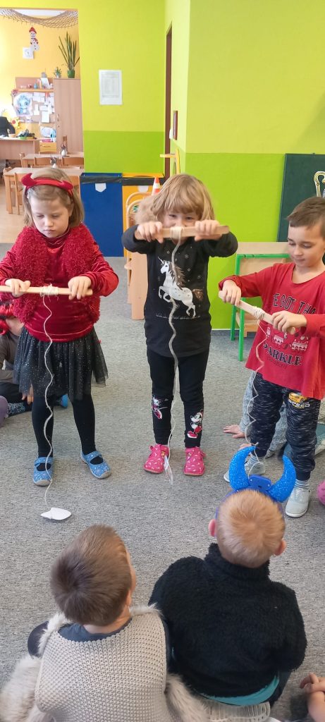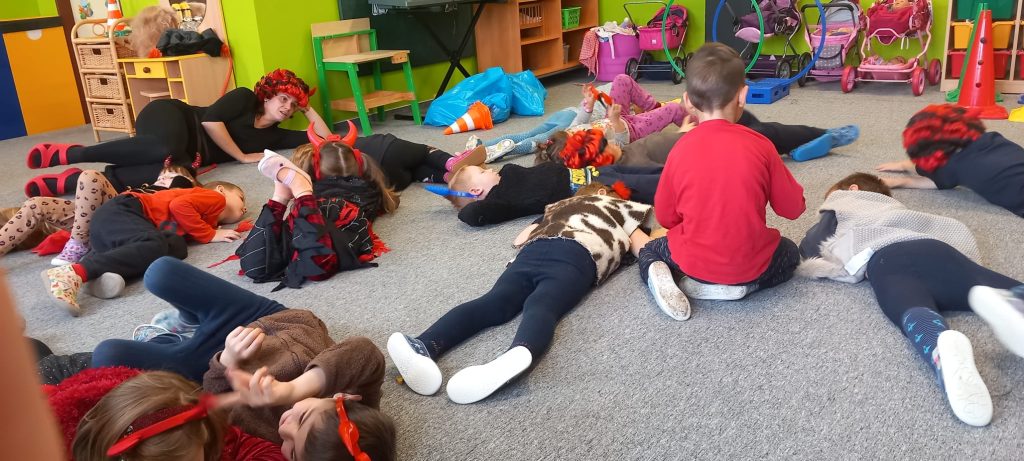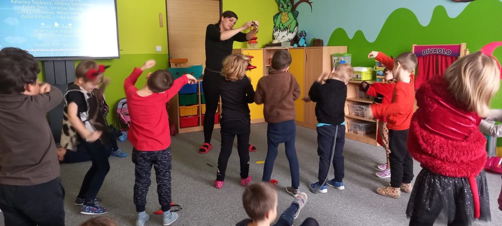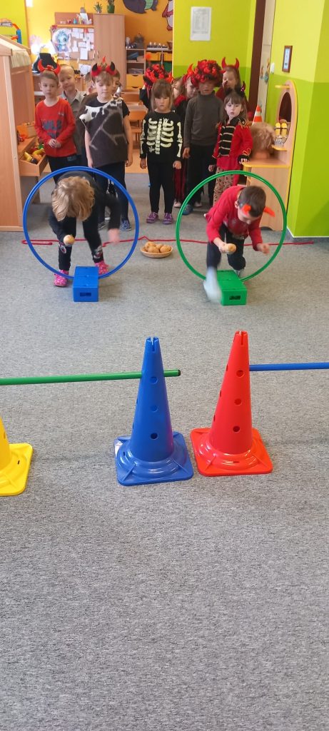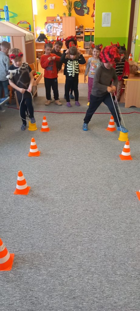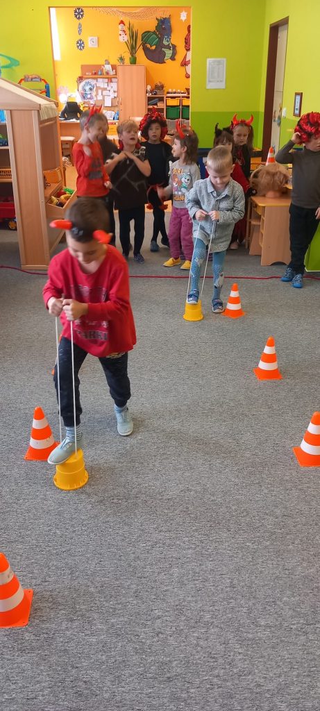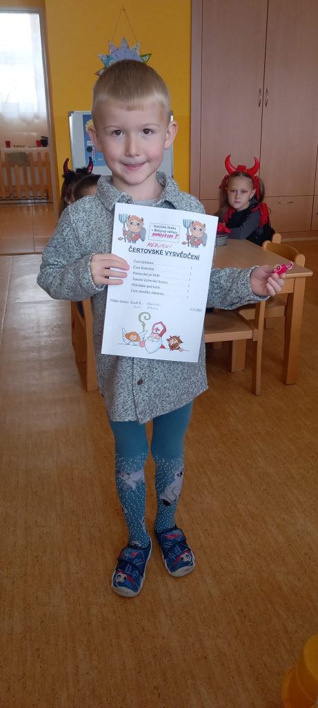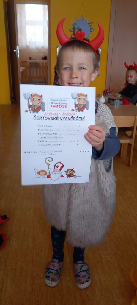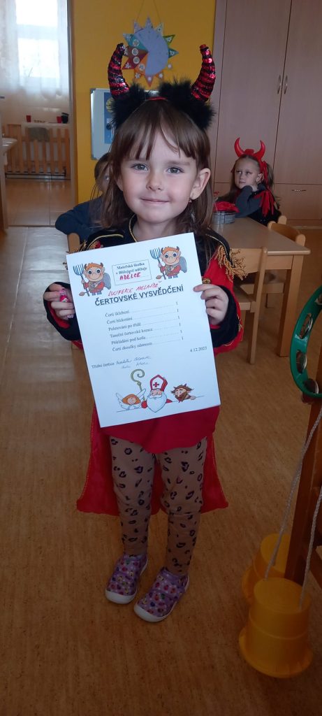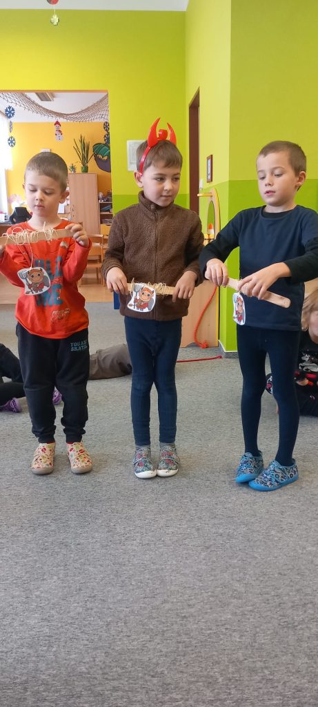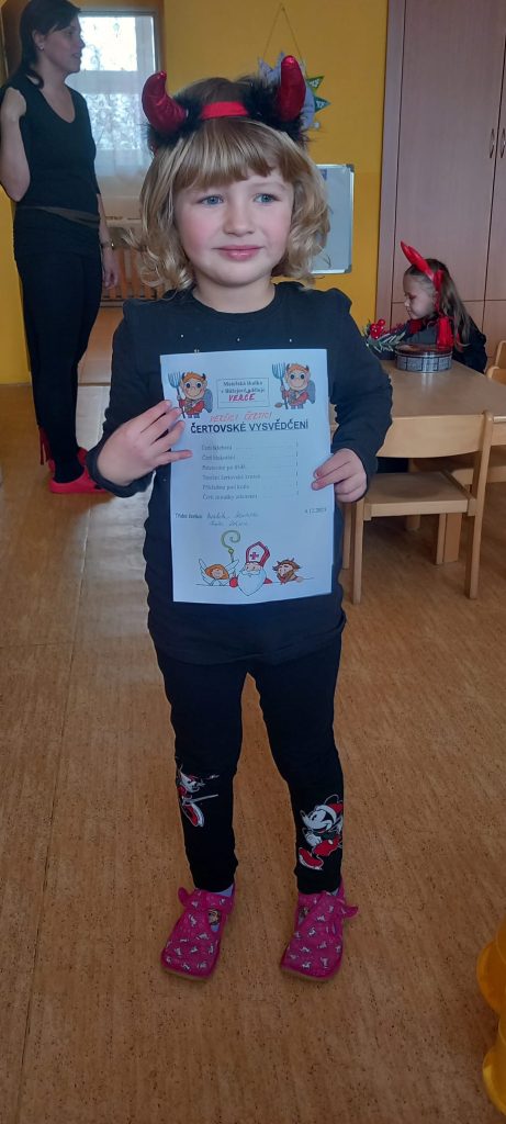 Uspořádali jsme si dopoledne plné her a soutěží. Chodili jsme s kopytem, nosili zlobivé děti v pytli, přenášeli horké brambory…a samozřejmě nechyběla návštěva z pekla a nebe.