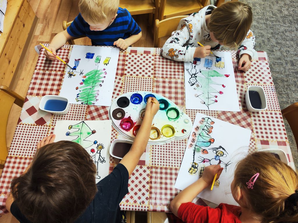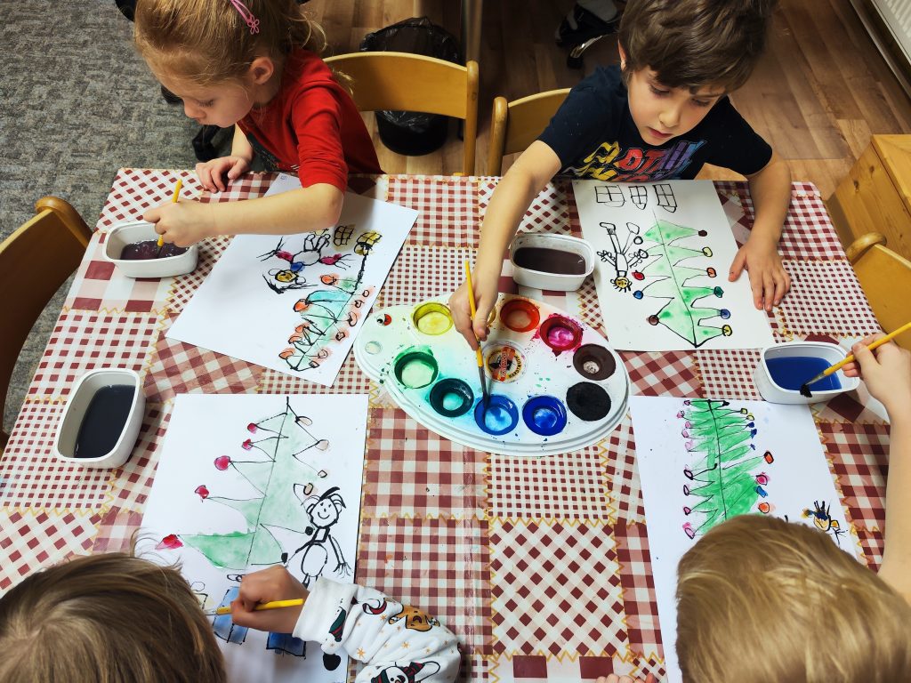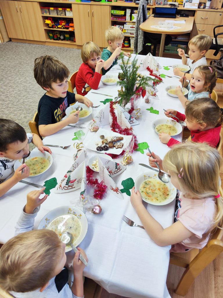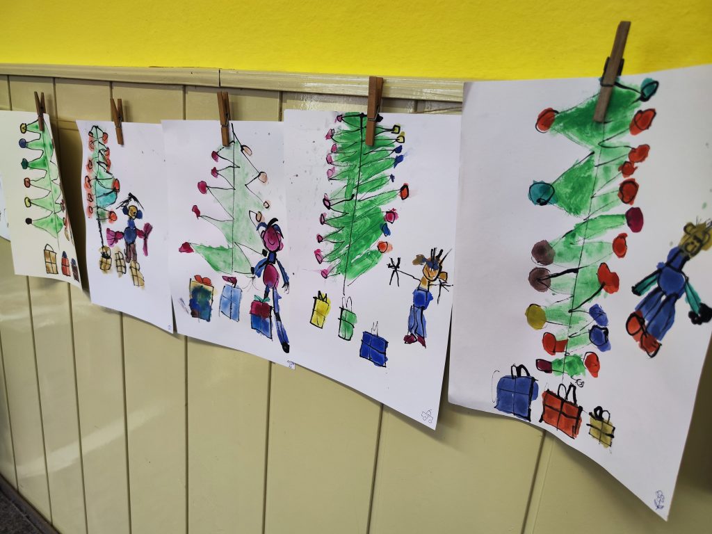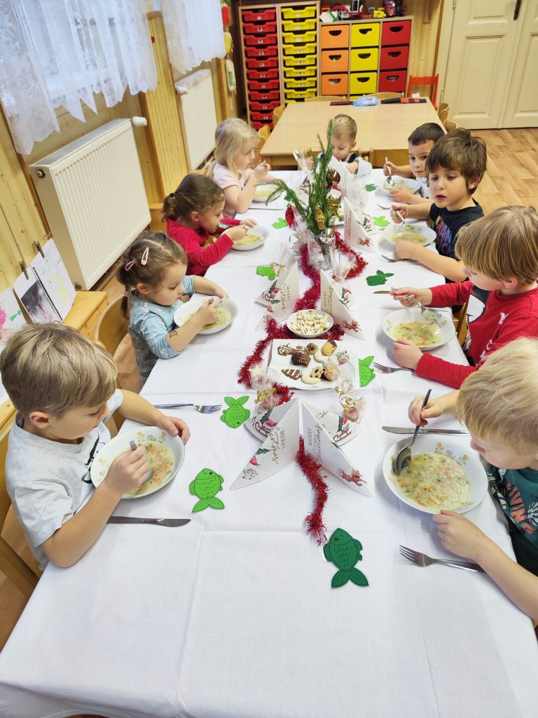 Čekání na Ježíška si krátíme nejrůznějšími aktivitami….. vyrábíme pro radost, kreslíme a malujeme, ochutnáváme cukroví od maminek, hledáme hvězdičky v jablíčkách, zkoušíme pokusy, jako třeba rozsvítit mandarinku prskavkou (funguje to☺️), zpíváme i posloucháme koledy, čteme si vánoční příběhy, prohlížíme Ladovy obrázky, hrajeme vánoční hry, stavíme Betlémy ze stavebnic a tvoříme vánoční ozdoby 🌲 Poslední den před vánočními prázdninami jsme si užili i pravou sváteční tabuli a u slavnostně prostřeného stolu nám moc chutnalo.