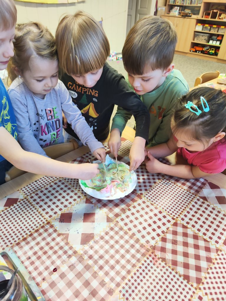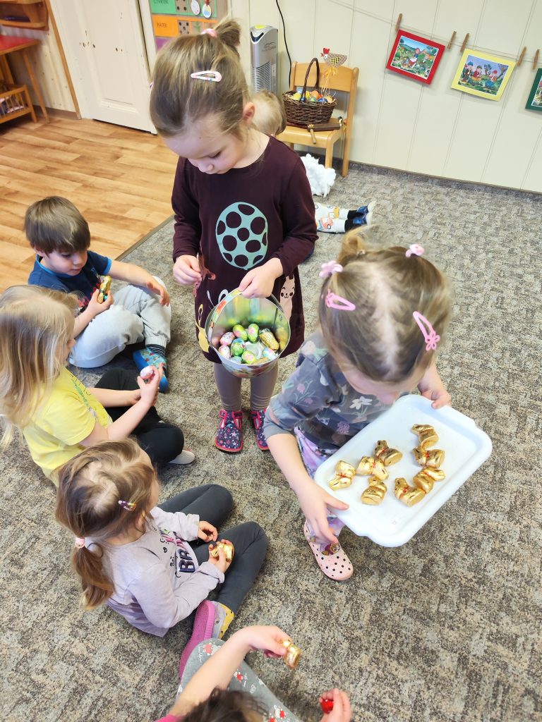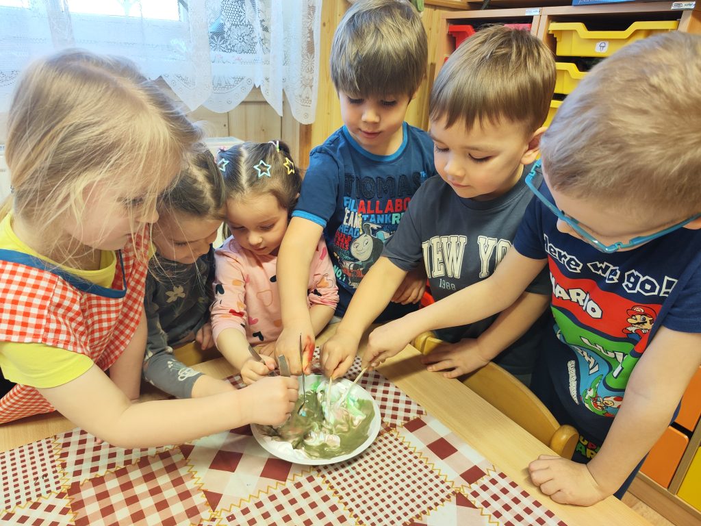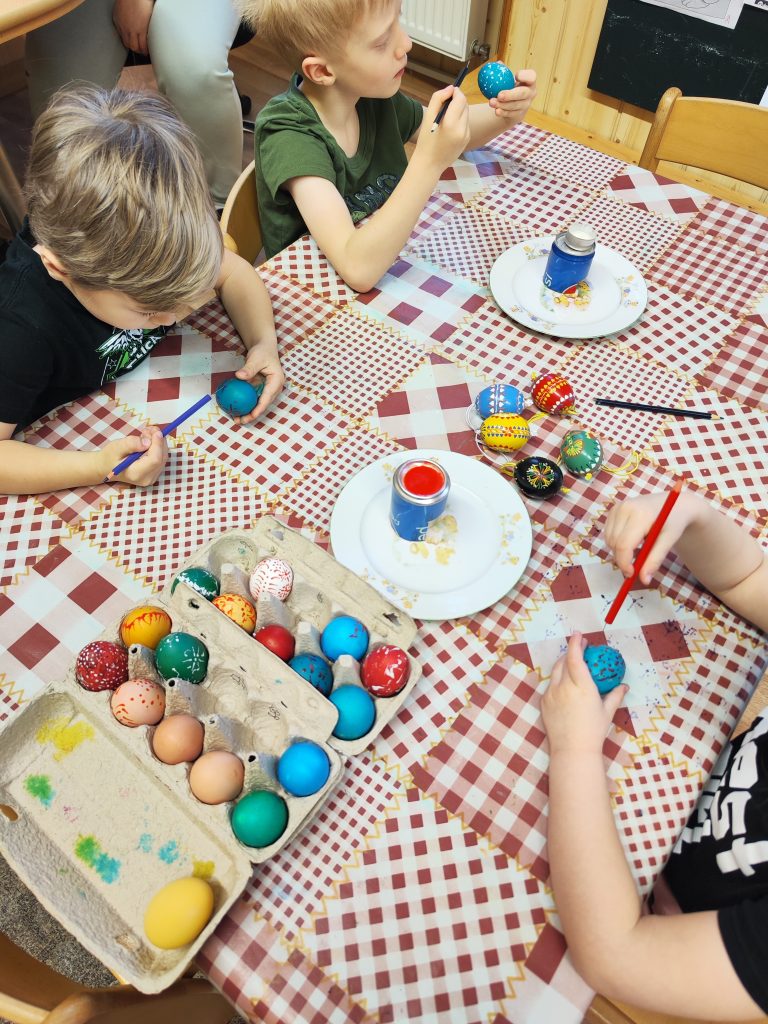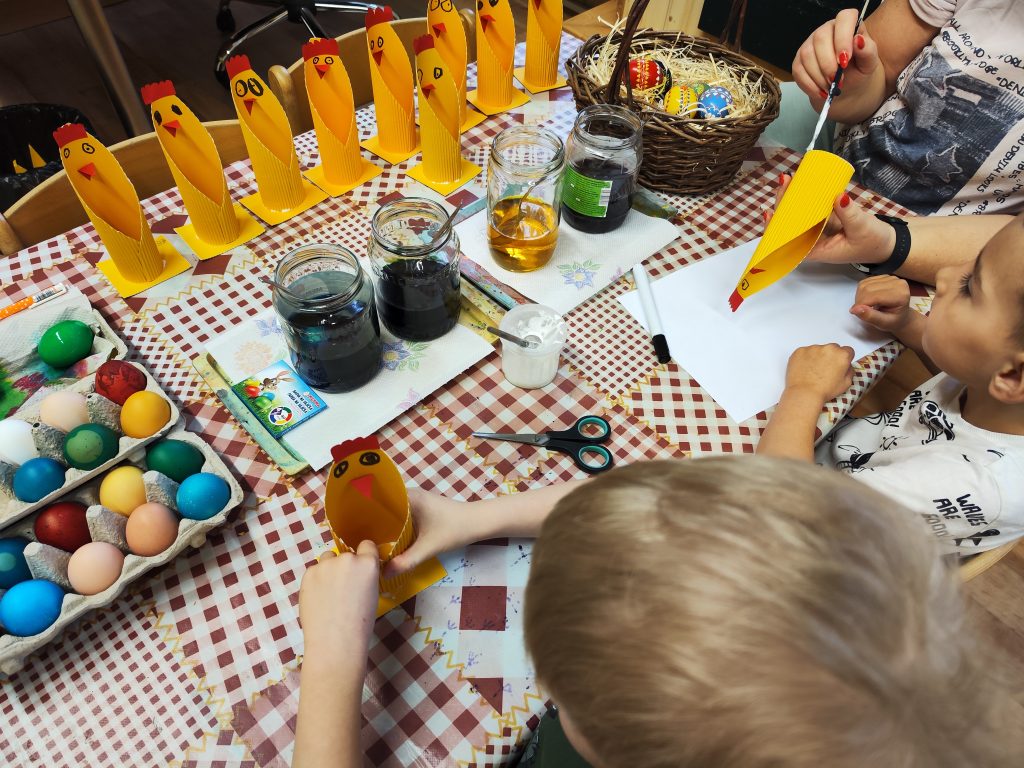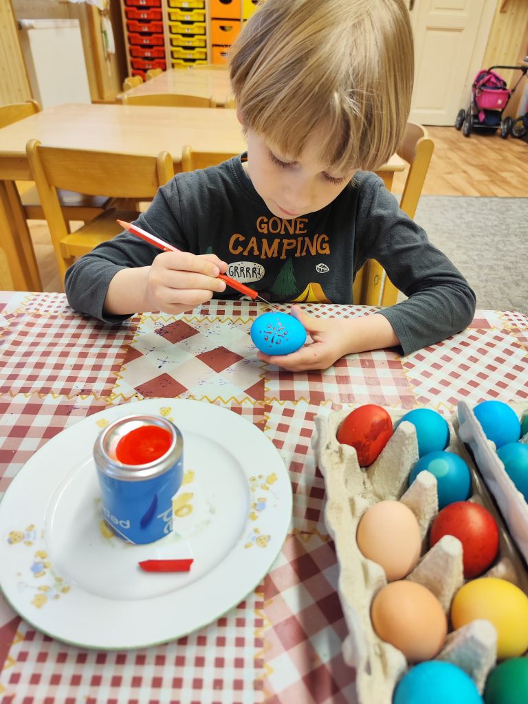 Ve zkráceném týdnu od pondělí 25.3. do čtvrtka 28. 3. 2018 probíhal v naší školce Velikonoční zkrácený týden. Dalo by se říct – čím kratší týden, tím větší plány 😀 My jsme ale šikulky a zvládli jsme vše, co bylo potřeba. Hlavním cílem týdne bylo seznamovat se se zvyky a tradicemi Velikonoc a prohlubovat povědomí o kultuře, v níž žijeme. Velikonoce jsou nejvýznamnějšími svátky jara a my jsme si tento týden s dětmi užili naplno. Zpívali jarní a velikonoční písničky, seznámili se s novými říkadly a koledami. Denně jsme si povídali o zvycích a tradicích a vysvětlovali si významy každého dne pašijoveho týdne. Na Zelený čtvrtek jsme zamávali zvonům na cestu do Říma a z plných plic na ně volali : ,,Štastnou cestu, zvony a v sobotu se nám zase vraťte!“ Shlédli jsme biblický příběh upravený pro dětské diváky, abychom si lépe uměli představit, o čem si to vlastně celý týden povídáme. Velká část týdne také patřila tvoření a vyrábění….. osení zaseté již minulý týden nám k velké radosti krásně roste, velikonoční přáníčka jsou již také připravená, vrba před vchodem ozdobená, vyrobili jsme si slepičky na vajíčka, pletli jsme pomlázky z proutků, které jsme si přinesli z procházky a barvili jsme kraslice, které jsme následně zdobili tradiční technikou malování voskem. Poslední den jsme ještě zvládli pokus s barvami, které nám zůstali po barvení vajíček. Vyzkoušeli jsme propojit celé barevné spektrum, na jehož konci nás překvapila super „bažinová“ barva. Moc jsme si přípravy na Velikonoce užili a teď už nezbývá, než hurá domů prožít krásné a pohodové svátky jara 💚🌞