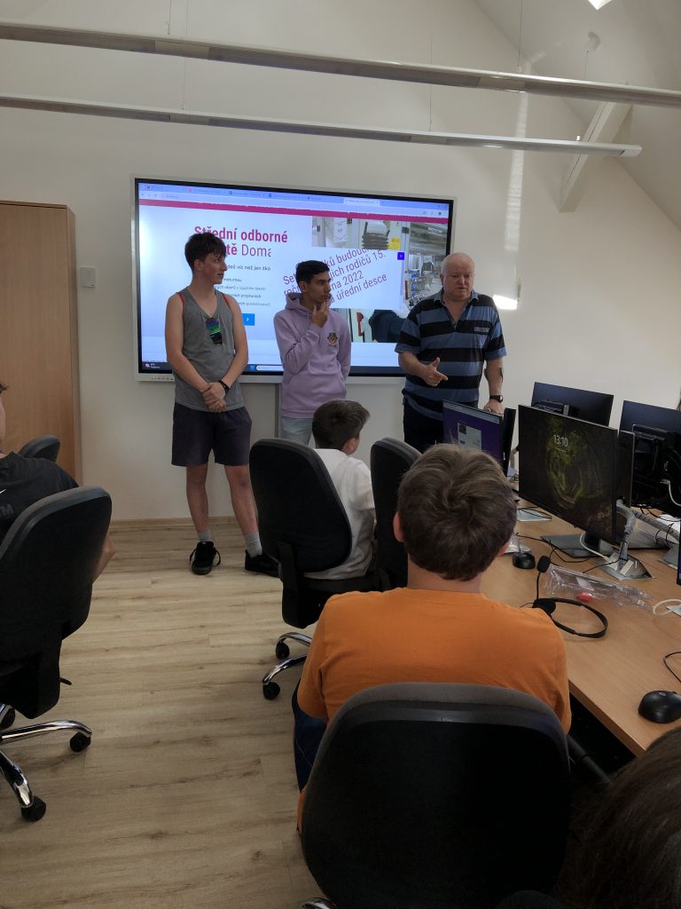 Dne 24.4. proběhlo setkání našich žáků 8. a 9. ročníku se žáky SOU Domažlice, společně s mistrem p. Vránou žáky informovali o studiu na učilišti, hlavně o jejich praktické výuce, přinesli ukázat své výrobky. Ukázali nám programování na našich CNC strojích a naši žáci je seznámili s naší výukou a ukázkami našich robotů.