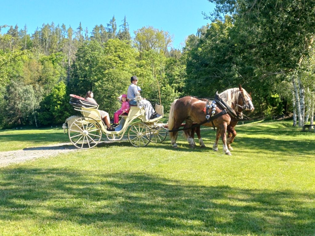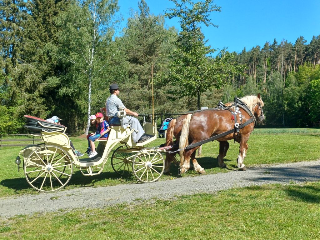 Dopoledne strávené v kočáře bylo úžasné. Kromě jízdy a pohlazení jsme se také dozvěděli jak se o koně strarat, co mají rádi a na jaké povely poslouchají kočího. Moc děkujeme za nezapomenutelný zážitek.
