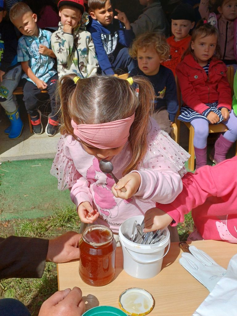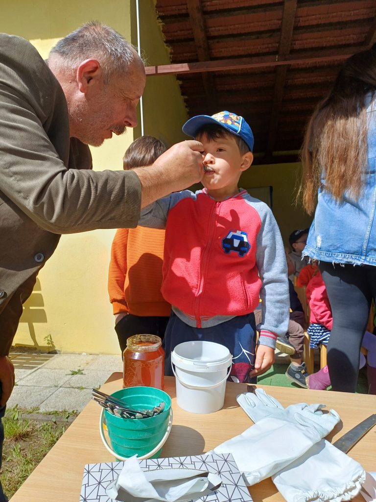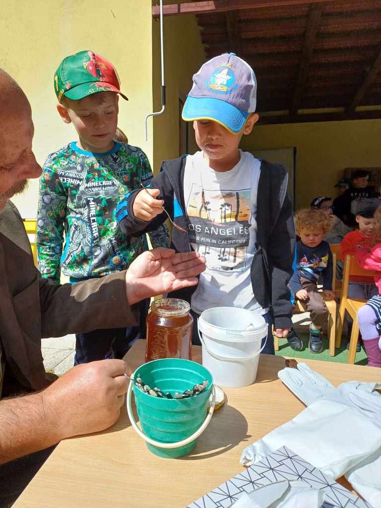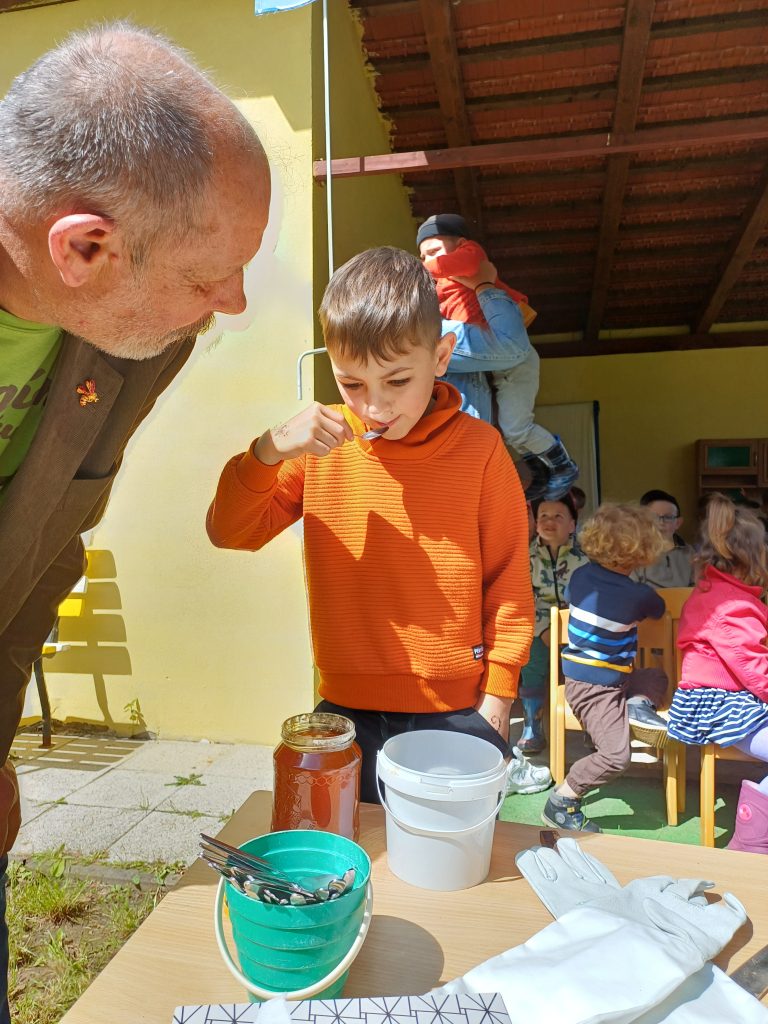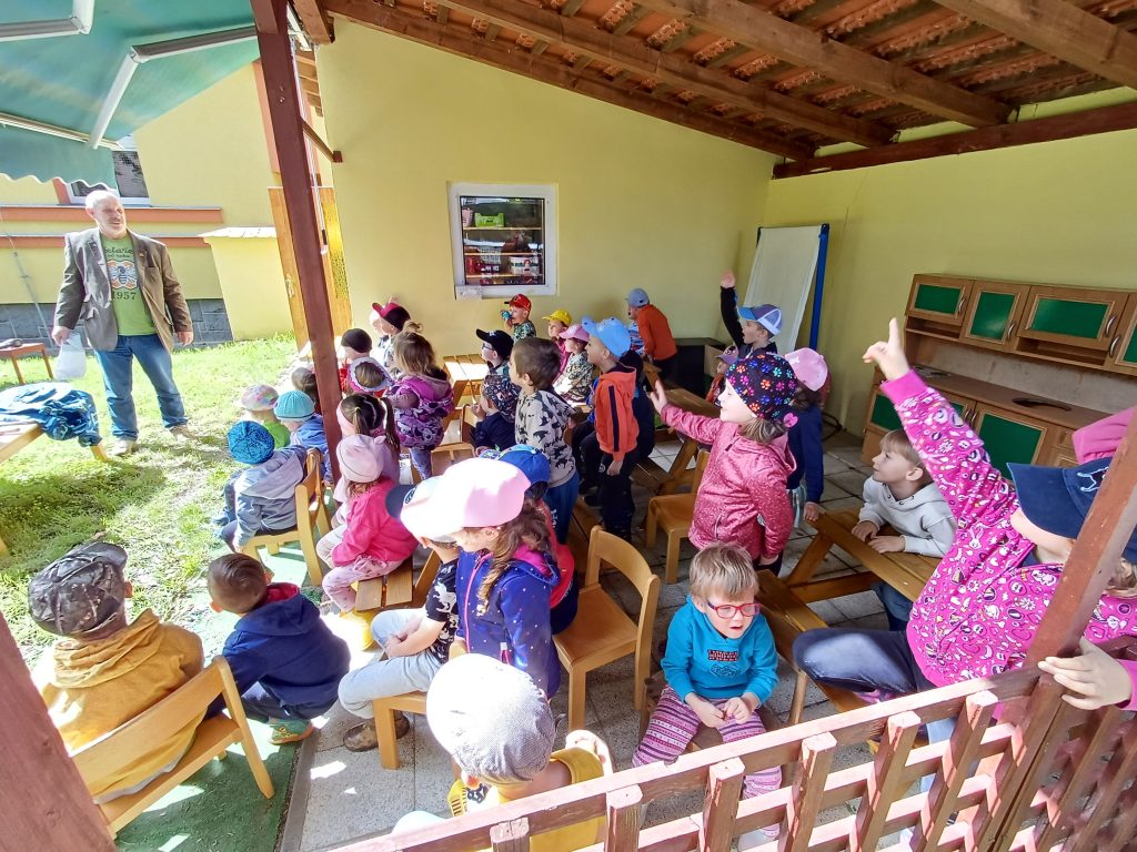 21. 5. oslavily svůj svátek všechny včelky a včeličky. K té příležitosti nás navštívil místní pan včelař a pověděl nám, proč jsou včely pro svět tak důležité a nepostradatelné. Také jsme se dozvěděli, jak to vypadá v úlu a co je všechno potřeba vědět a dělat, aby nás na konci čekala sladká odměna v podobě medu. Celá ukázka byla velmi přínosná a moc se nám líbila.