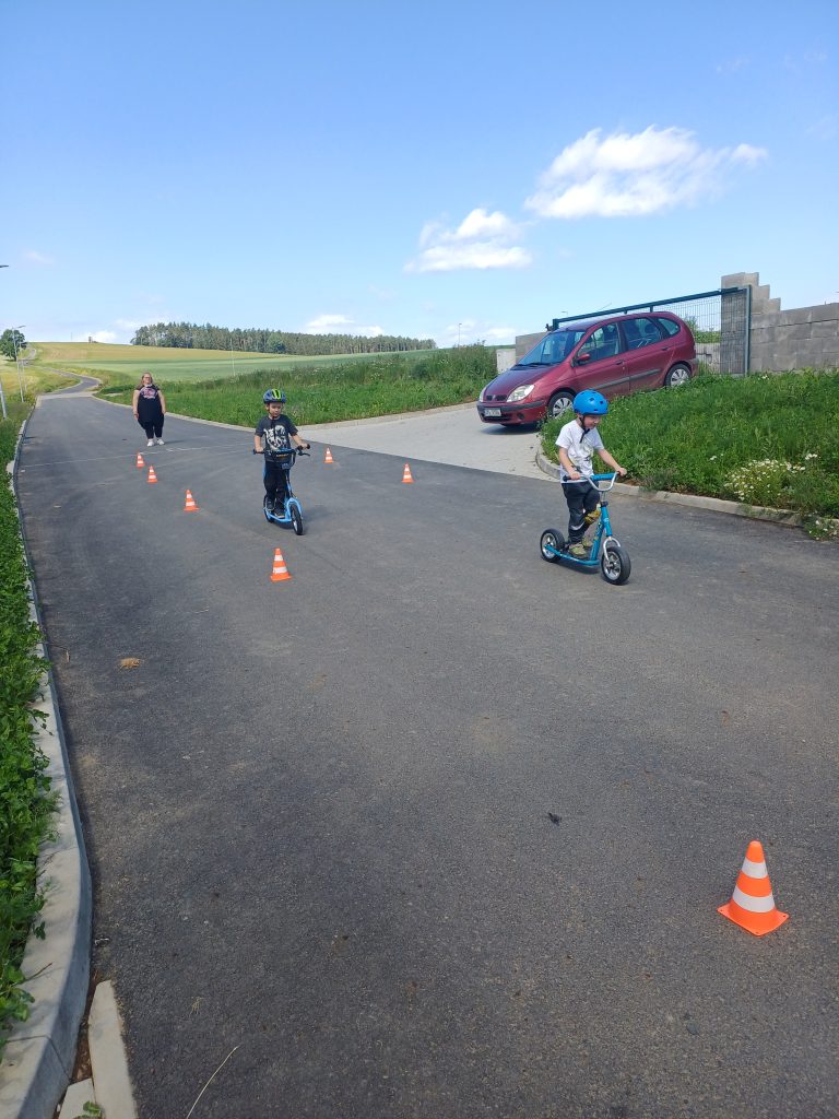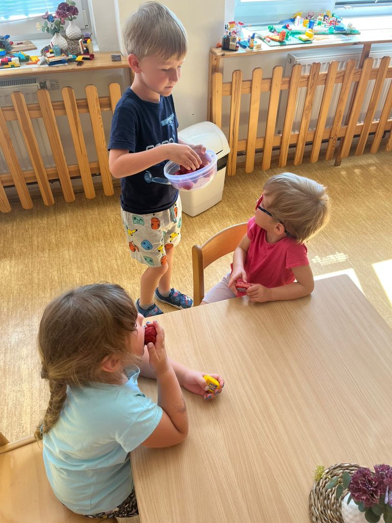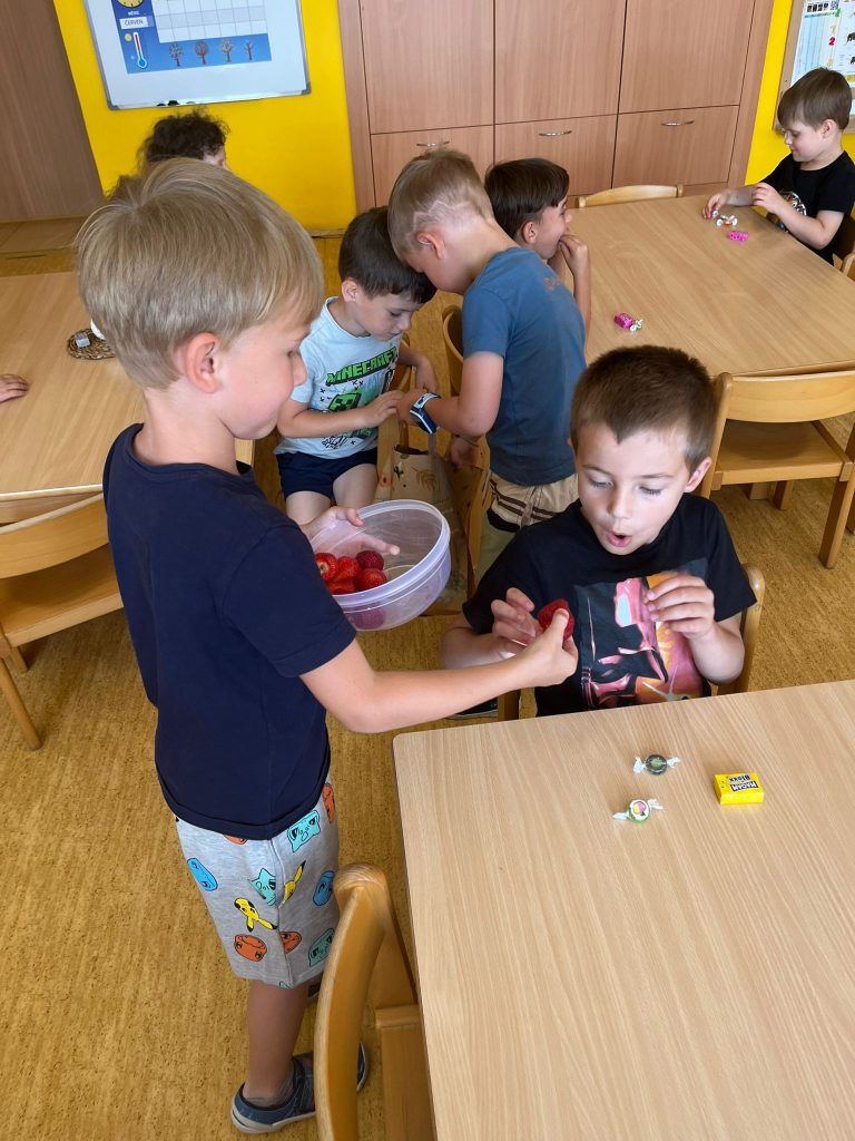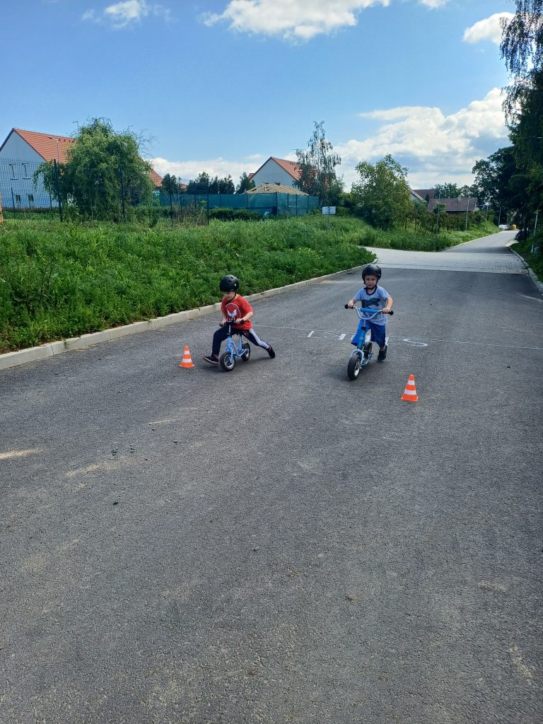 Ani poslední měsíc školního roku jsme nezaháleli. Povídali jsme si o dopravě a naučili se základní pravidla dopravní výchovy. Za odměnu jsme uspořádali závody na koloběžkách a odrážedlech. Dozvěděli jsme se, čím by děti chtěly být až vyrostou. V rámci tématu “ Povolání a řemesla“ si děti zahrály na kuchaře a upekly si pizzu. Oslavili jsme narozeniny Šimona a Jáchyma. Honzíkové a Vítek oslavili svátek a byly i výborné jahody. Smenšími dětmi jsme si zatančily v rytmu africké hudby.