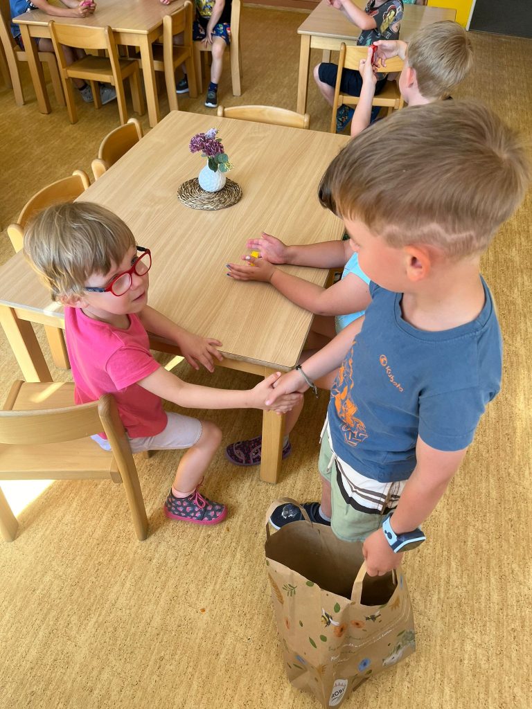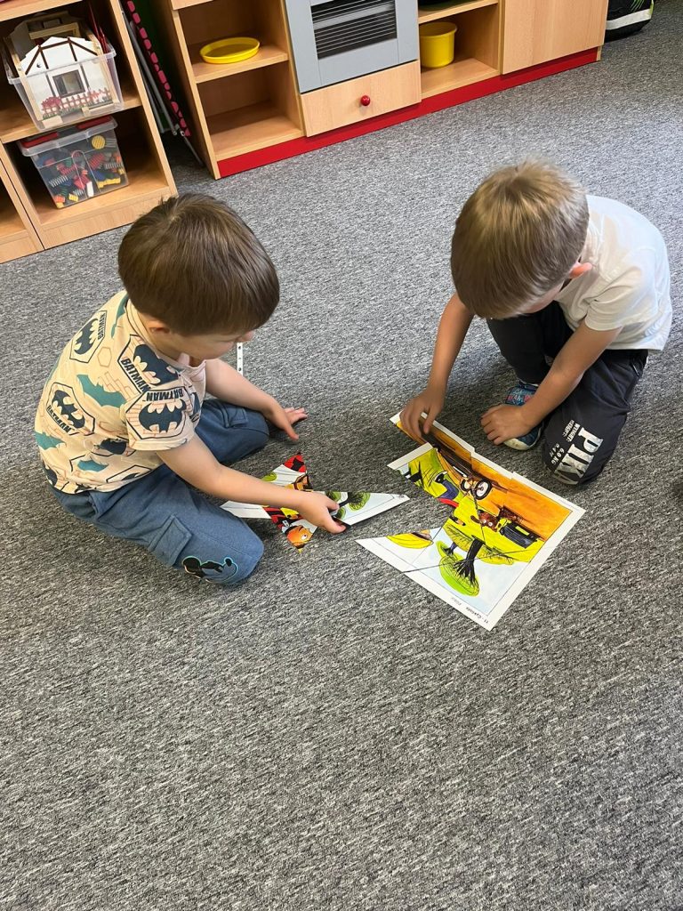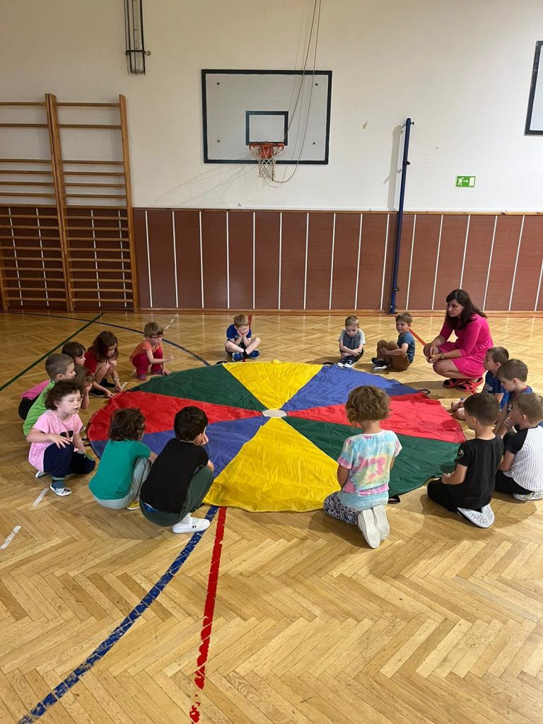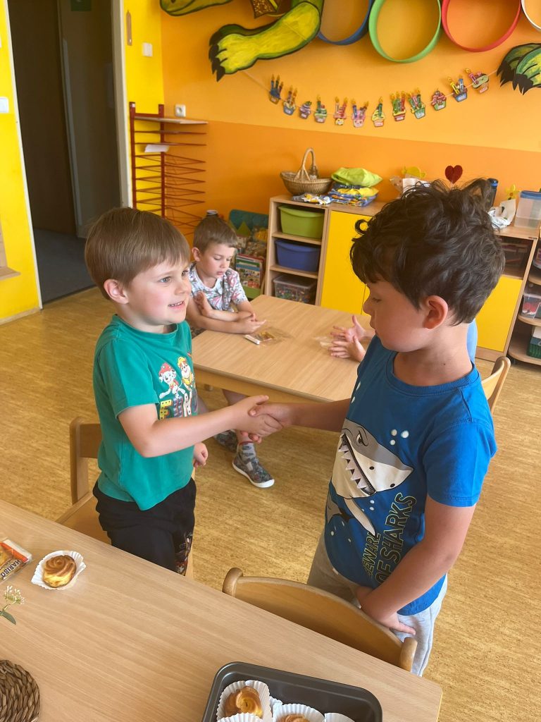Ani poslední měsíc školního roku jsme nezaháleli. Povídali jsme si o dopravě a naučili se základní pravidla dopravní výchovy. Za odměnu jsme uspořádali závody na koloběžkách a odrážedlech. Dozvěděli jsme se, čím by děti chtěly být až vyrostou. V rámci tématu “ Povolání a řemesla“ si děti zahrály na kuchaře a upekly si pizzu. Oslavili jsme narozeniny Šimona a Jáchyma. Honzíkové a Vítek oslavili svátek a byly i výborné jahody. Smenšími dětmi jsme si zatančily v rytmu africké hudby.
