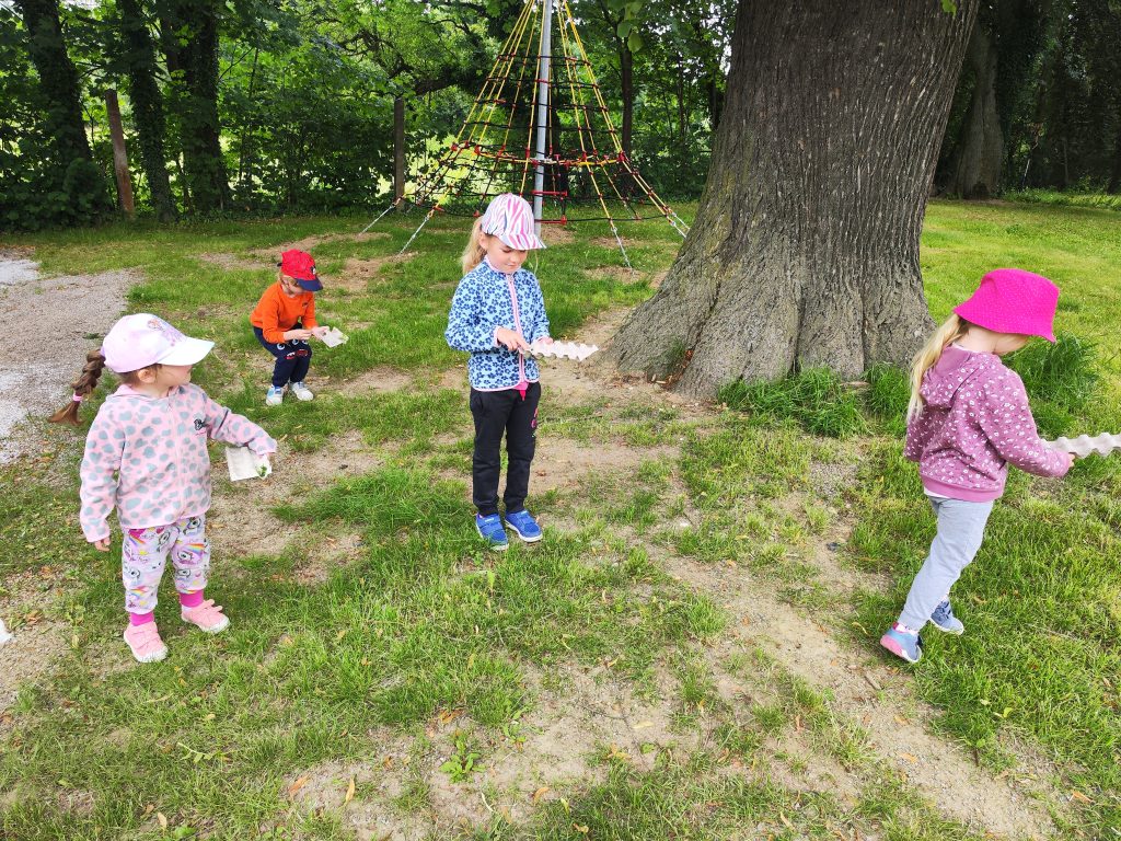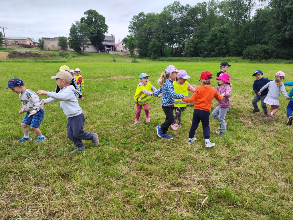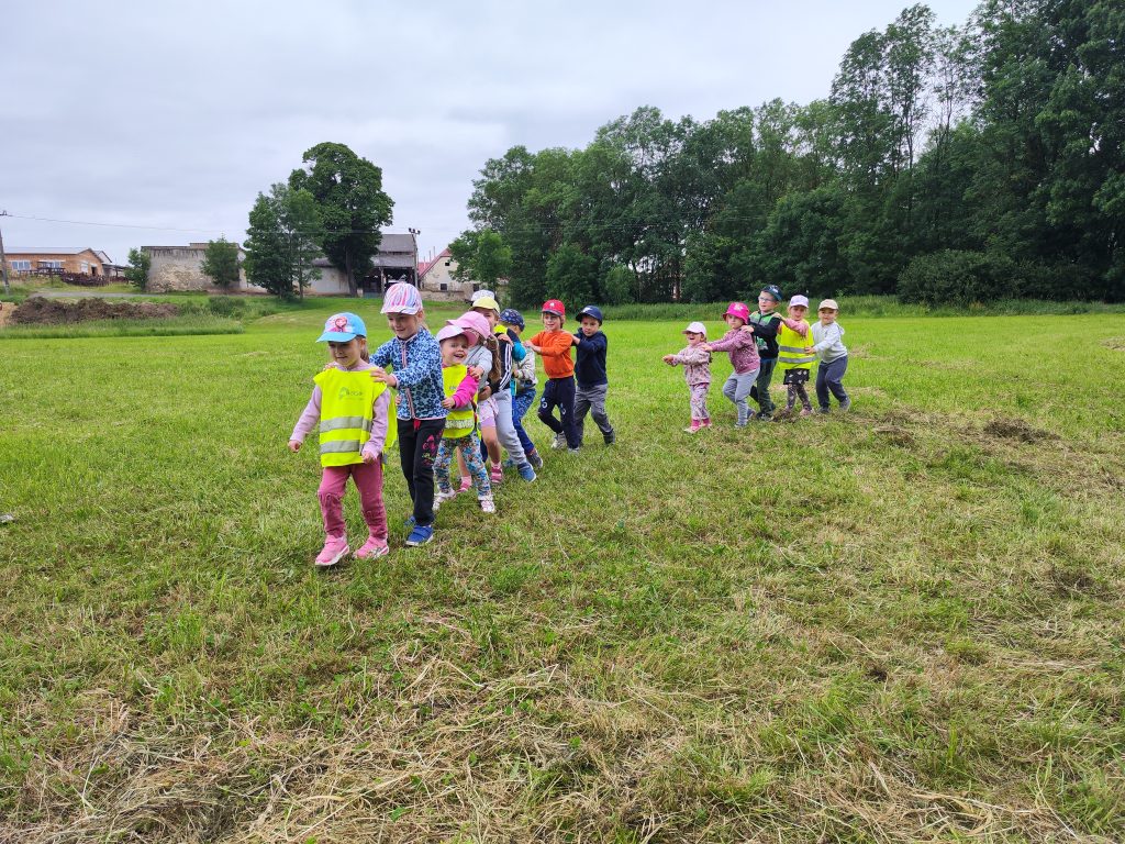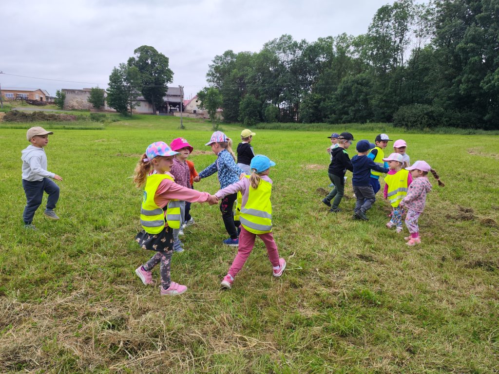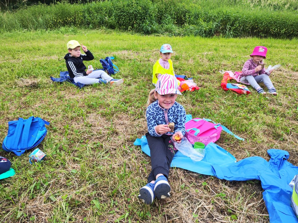 Přiblížil se nám konec školního roku a s ním související dlouho očekávaný piknik. Jelikož počasí bylo nevyzpytatelné, vybavili jsme se pláštěnkami a za letošním piknikem se vypravili na nedalekou louku. Abychom byli připraveni na prázdninové toulky přírodou, naučili jsme se cestou značit si trasu, abychom cestou zpět nezabloudili. Když jsme dorazili na místo, které se nám líbilo, rozbalili jsme si pláštěnky, svačiny a vydatně se po cestě občerstvili. Potom jsme si zahráli několik soutěží, zatancovali a jako třešnička na dortu bylo hledání přírodnin dle barevného zadání na naší školní zahradě. Užili jsme si báječné dopoledne a odnesli si nalezené poklady domů.