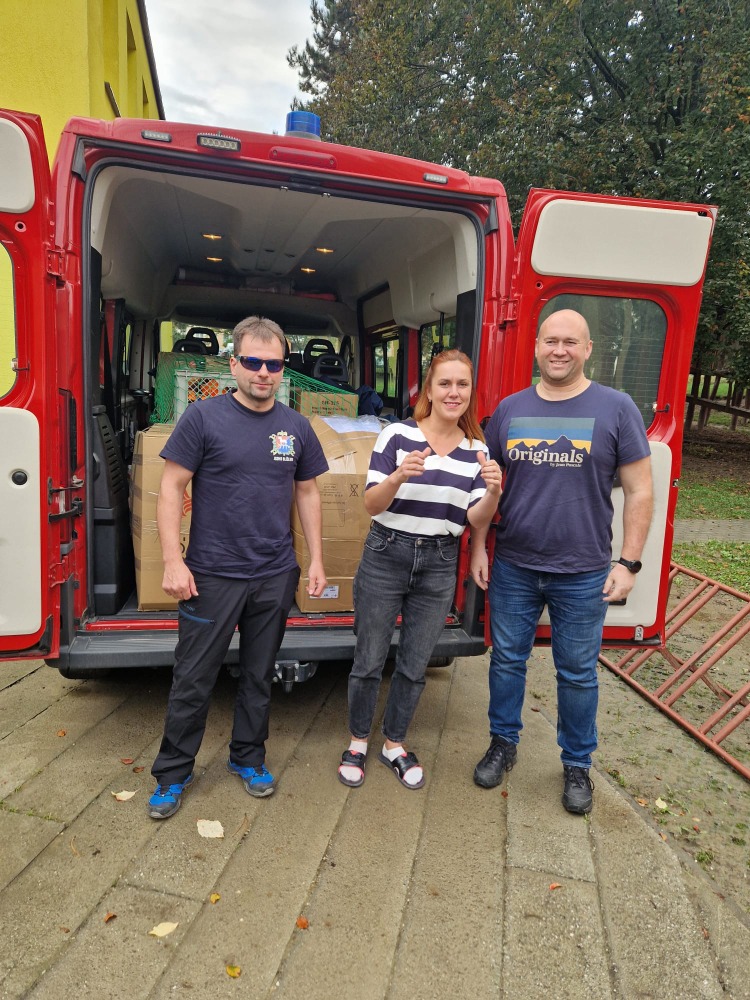 V pátek 11. 10. 2024 posádka s drahocenným nákladem vyrazila ve 3 h ráno na cestu dlouhou 550 km. Přivítání bylo vřelé a srdečné. Jejich situace je velice nelehká, zatopena byla celá přízemní část zdejší MŠ a voda napáchala velké škody. Ze dvou tříd bylo třeba odstranit veškeré vybavení. Areál školkové zahrady je doteď naprosto nepoužitelný. Proto si našeho daru nesmírně váží a posílají upřímné díky!