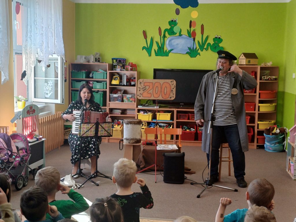 V březnu nás ve školce navštívilo Divadlo Dino se svojí pohádkou ZVÍŘÁTKA V ZOO. Děti se naučily několik nových písniček a moc se jim to líbilo. Na pohádku se přišly podívat i děti z 1.třídy.