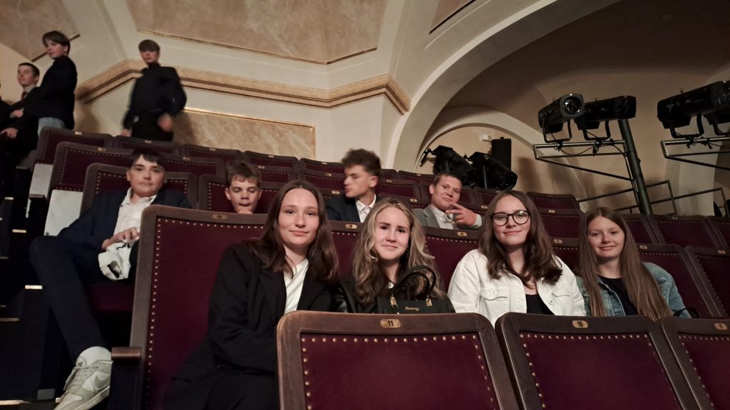 Návštěva žáků 2. stupně a dramatického kroužku divadla Karlín v Praze 16.5. 2025.
